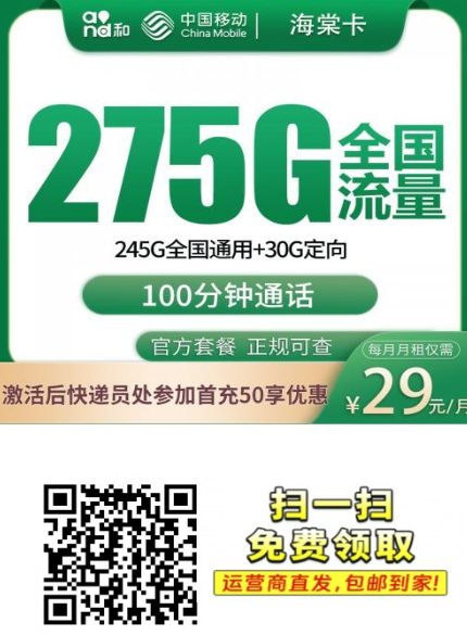 好消息来了。那张去年下架的移动海棠卡,现在又回到架上了。29元就能拿下275G全国流量+100分钟通话,只发上海,支持上门激活,一整年优惠照旧。重新上架,规则没