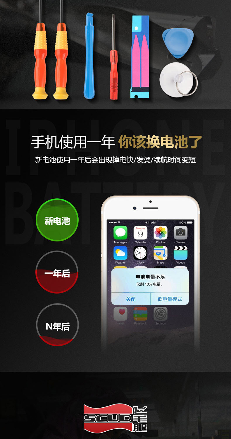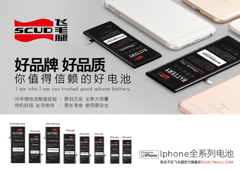 点此享受送工具+教程/解决降频门,飞毛腿苹果iPhone 4/5/6系列高聚能电池48元起:领券并购买
