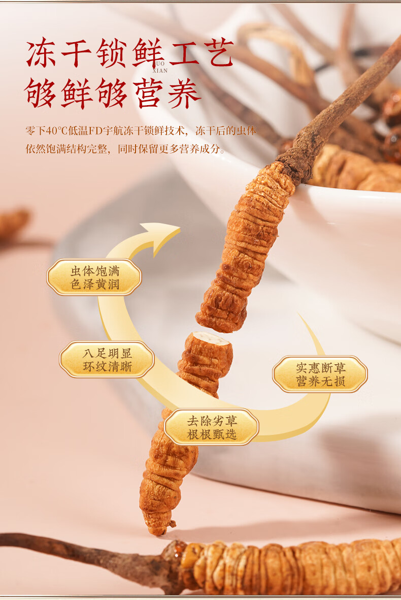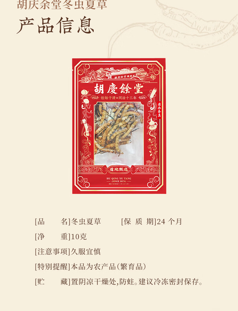 胡庆余堂【断草】冬虫夏草 地号高品质冻干断虫草10g自用装泡酒煲汤