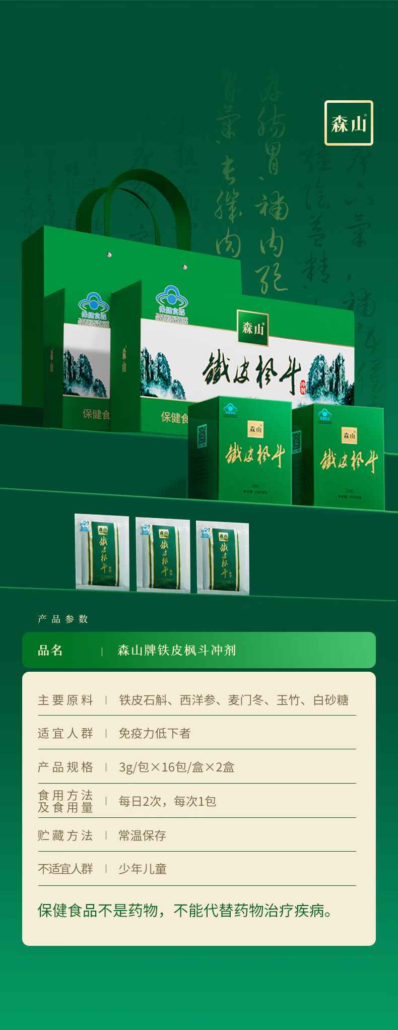 森山牌铁皮枫斗冲剂 石斛粉 3g/包*16包【简装自服】补品营养品保健品 16包自服装