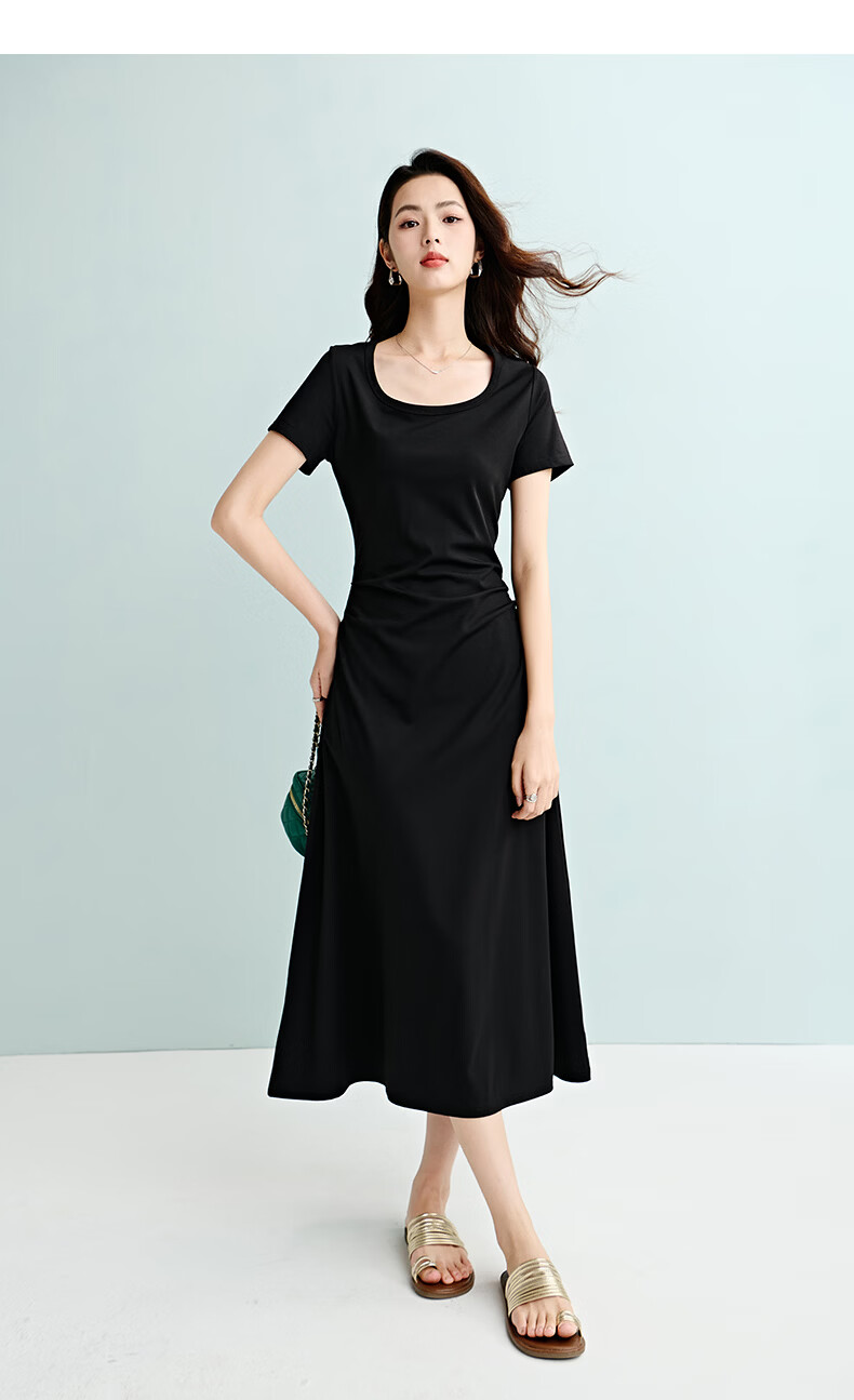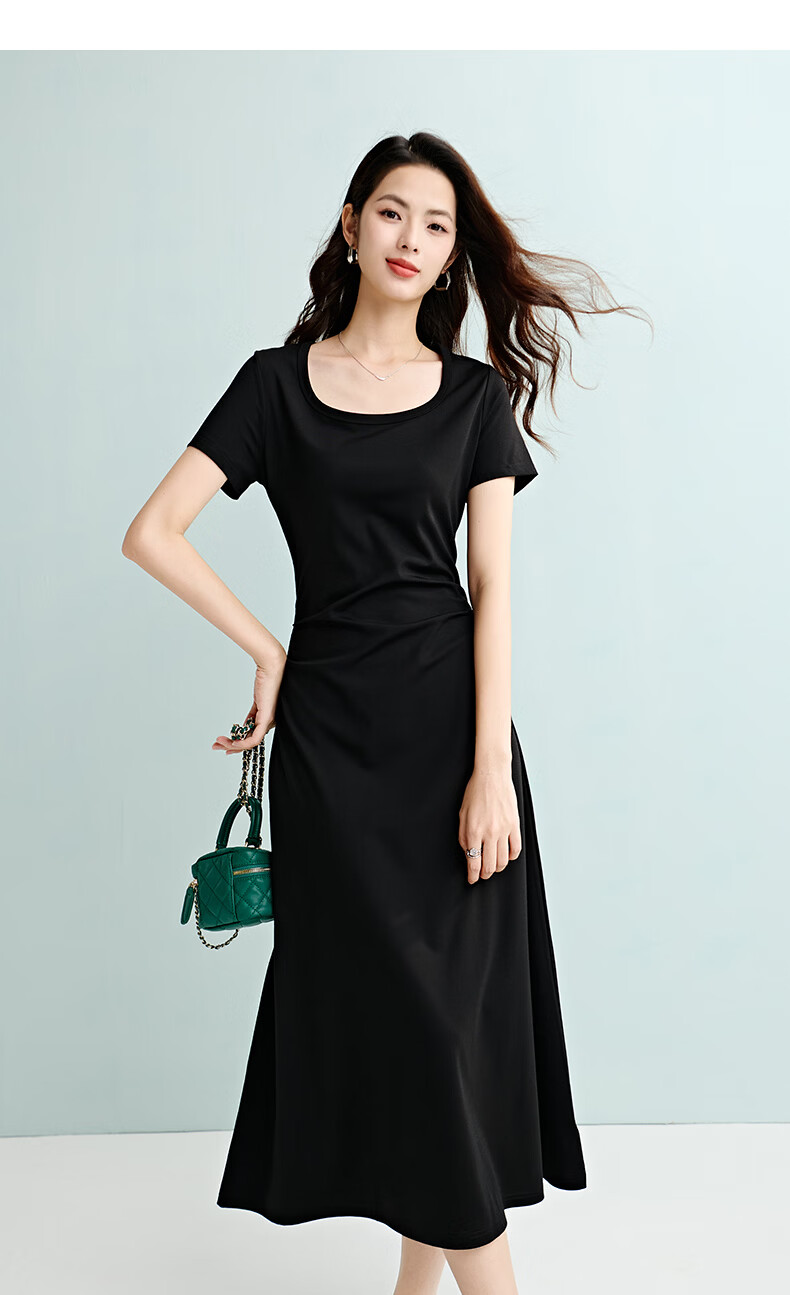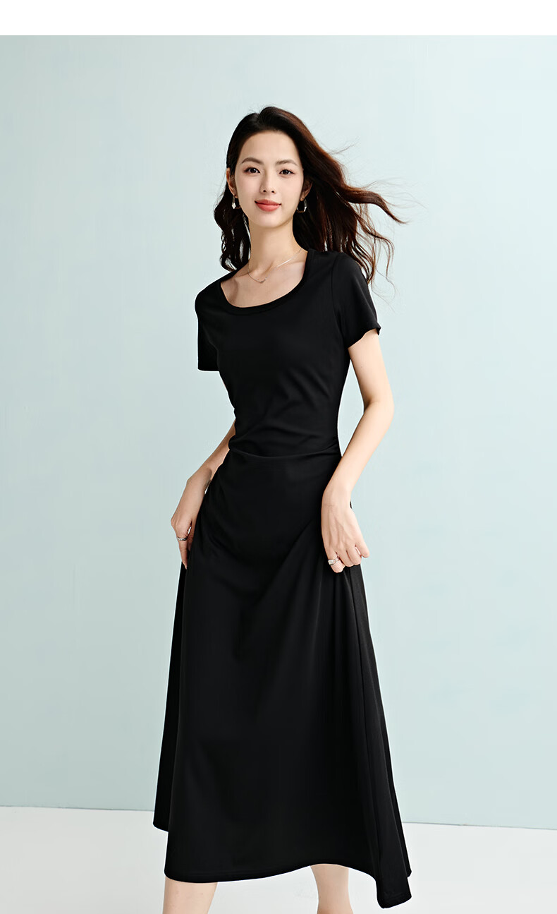 晚白【新品】2026年春款方领小黑裙弹力修身显瘦通勤百搭连衣裙 黑色 S