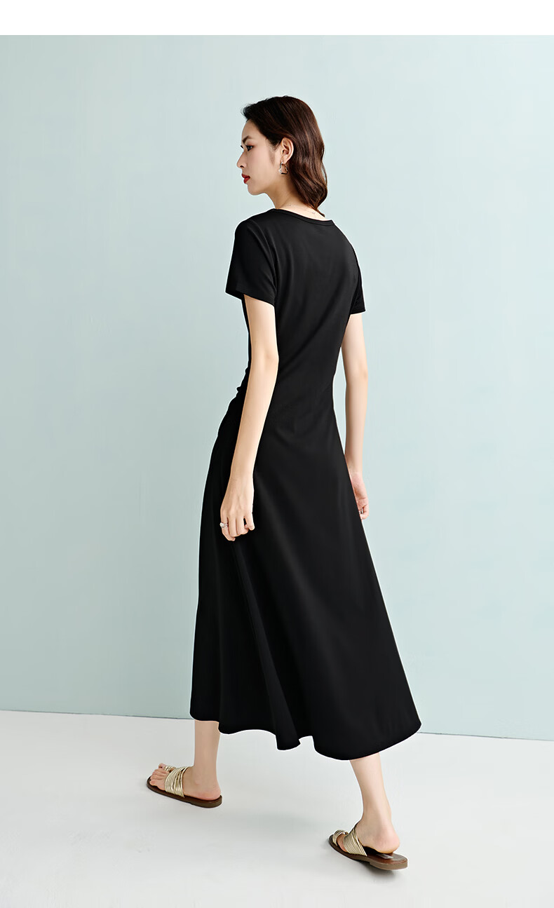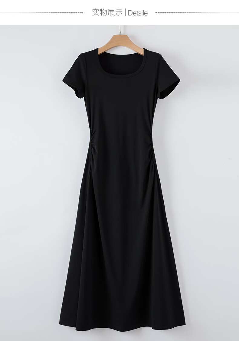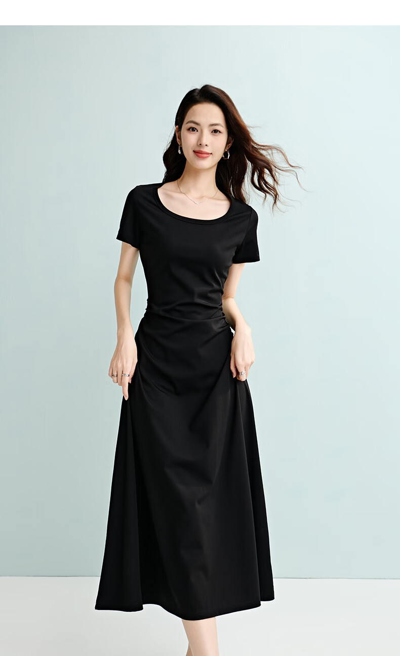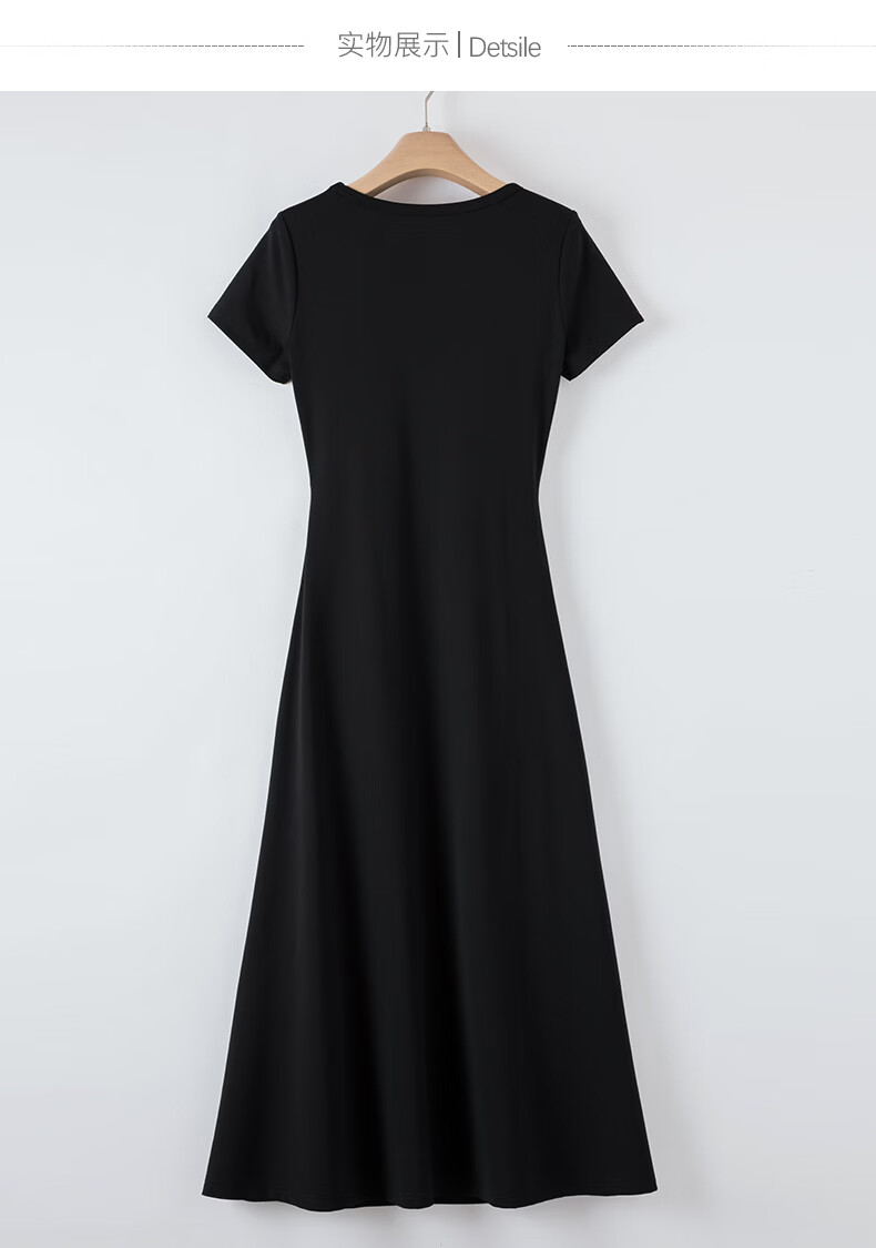 晚白【新品】2026年春款方领小黑裙弹力修身显瘦通勤百搭连衣裙 黑色 S