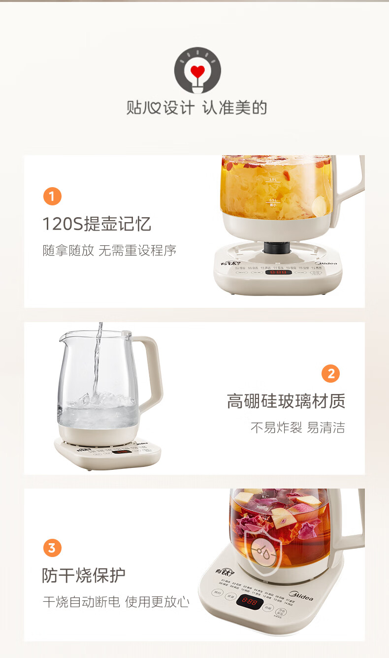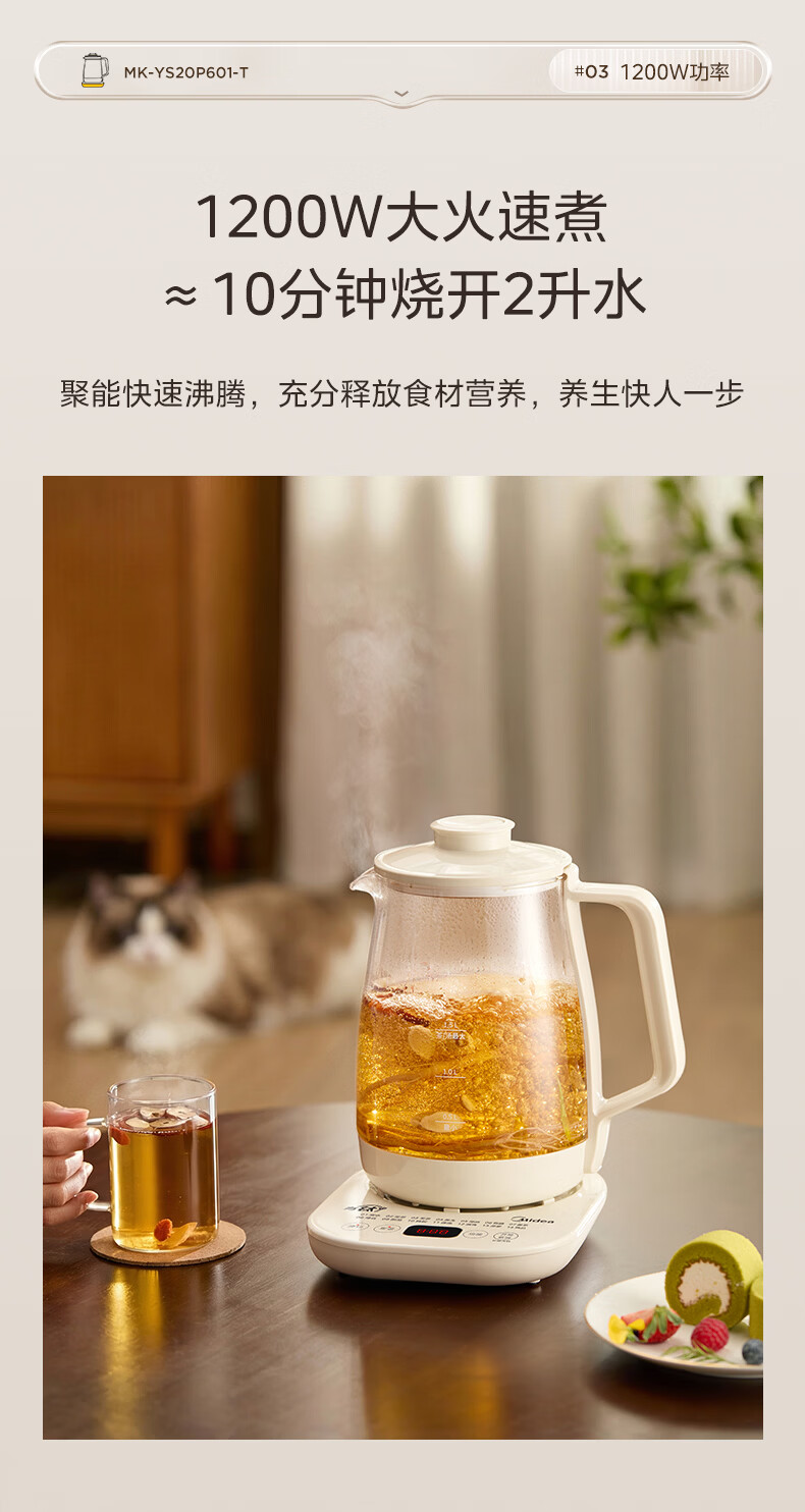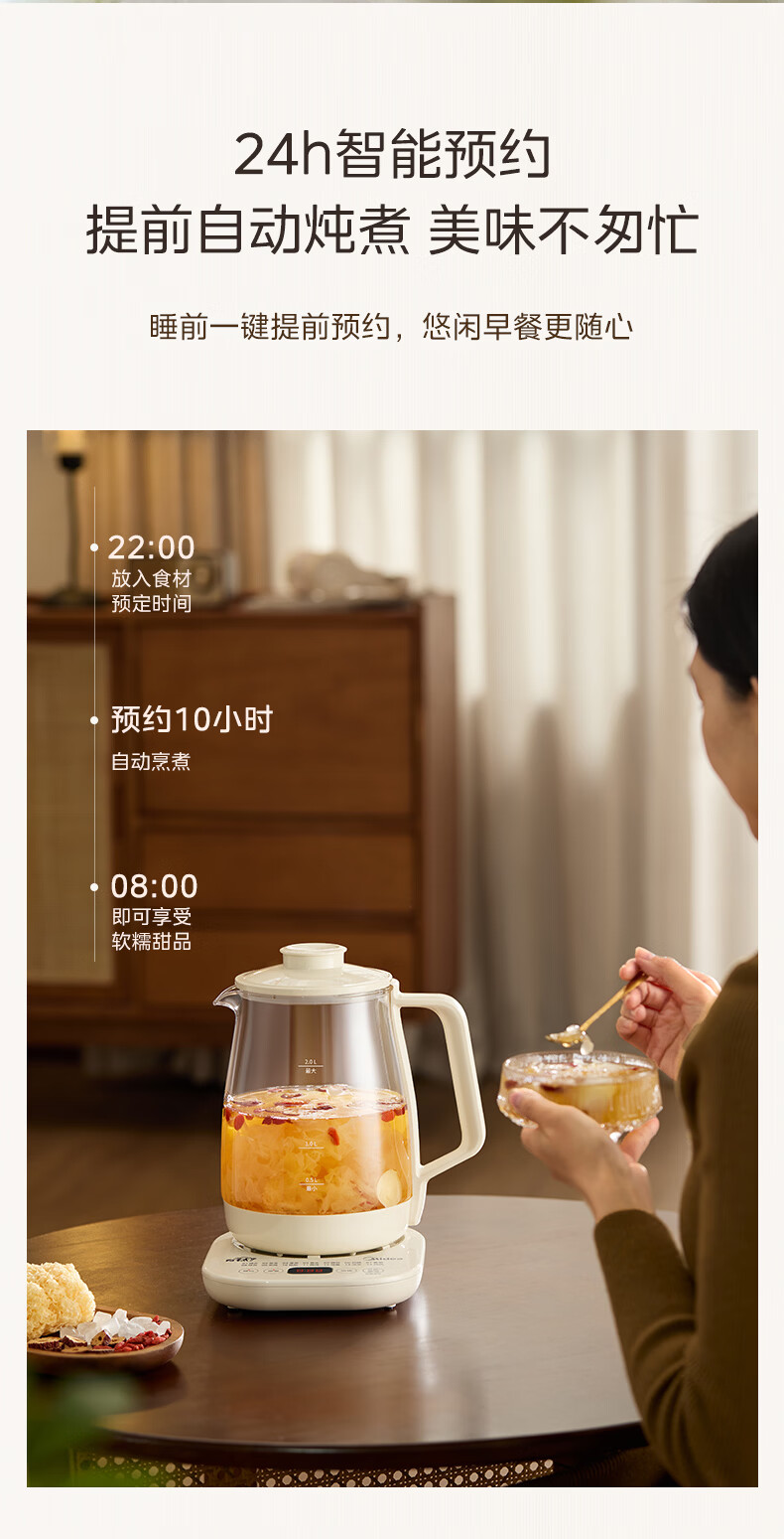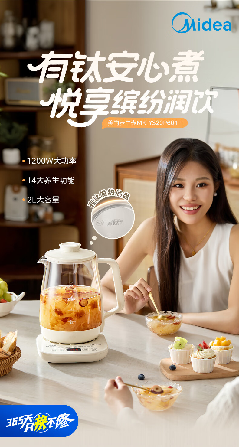 美的(Midea)有钛养生壶母婴级0胶水0涂层 大功率智能养生壶花茶壶 家用大容量恒温电热水壶烧水壶可煮小米 2L 【年度旗舰新品】有钛发热盘
