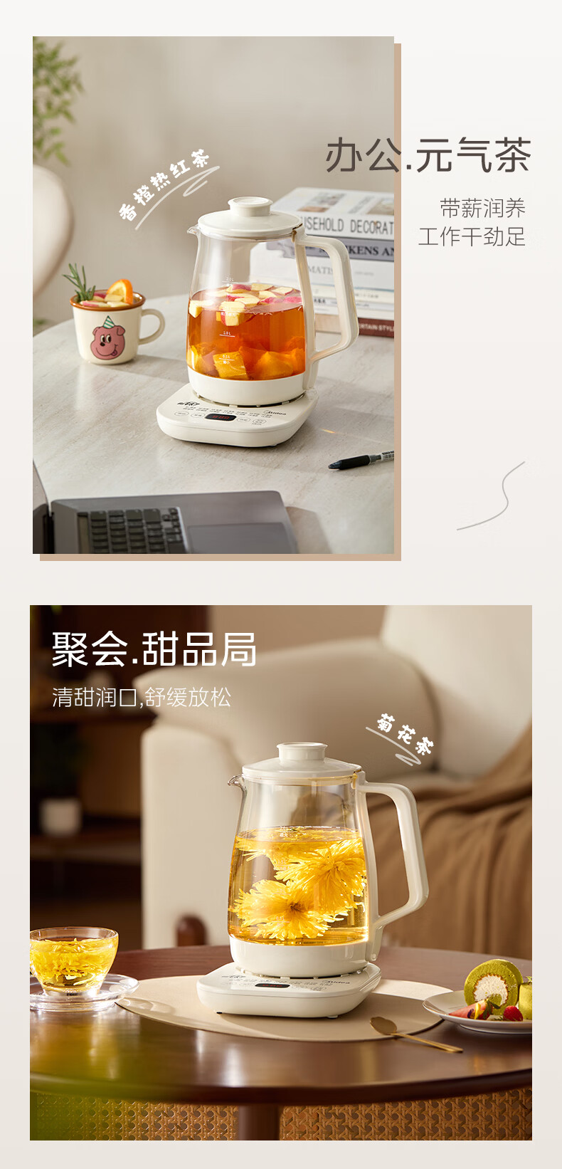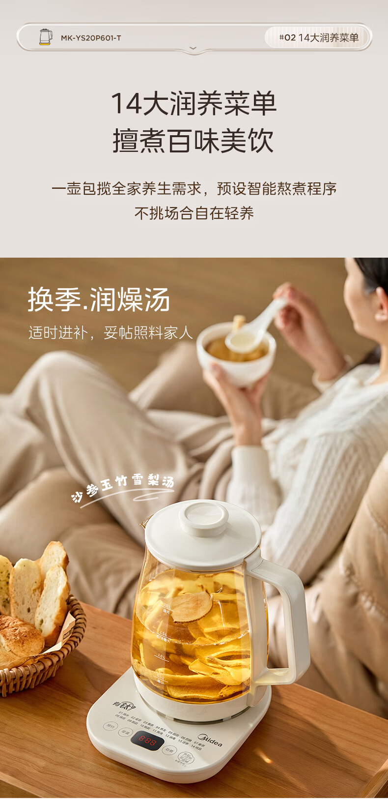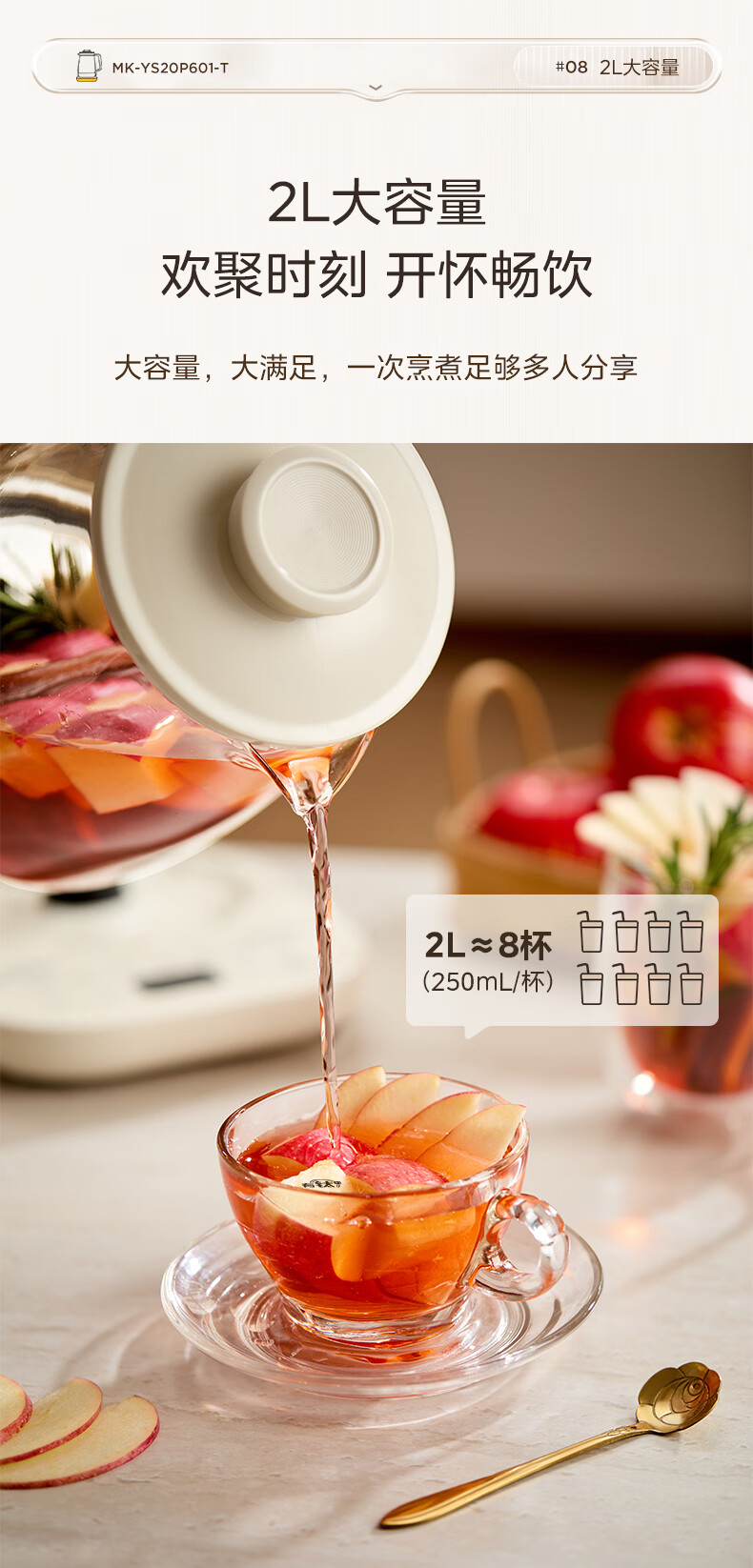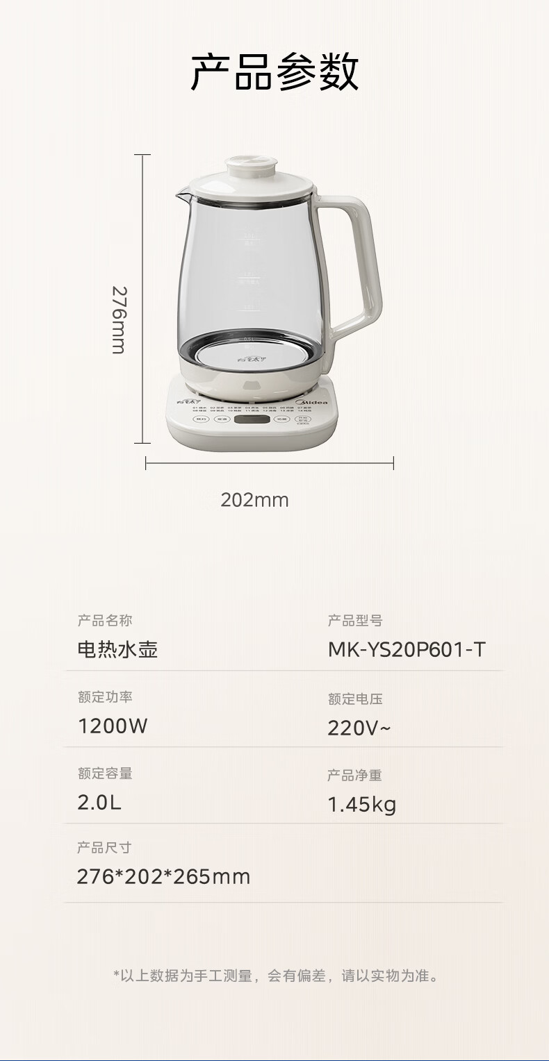 美的(Midea)有钛养生壶母婴级0胶水0涂层 大功率智能养生壶花茶壶 家用大容量恒温电热水壶烧水壶可煮小米 2L 【年度旗舰新品】有钛发热盘