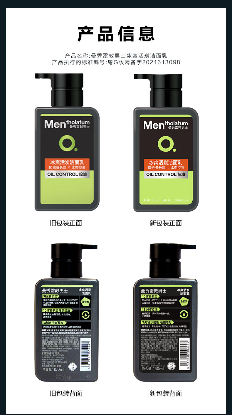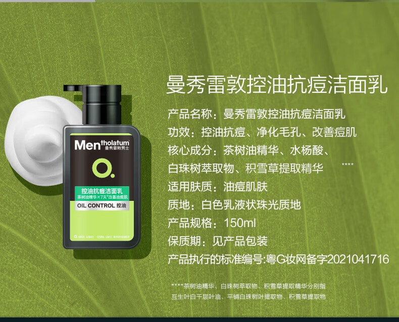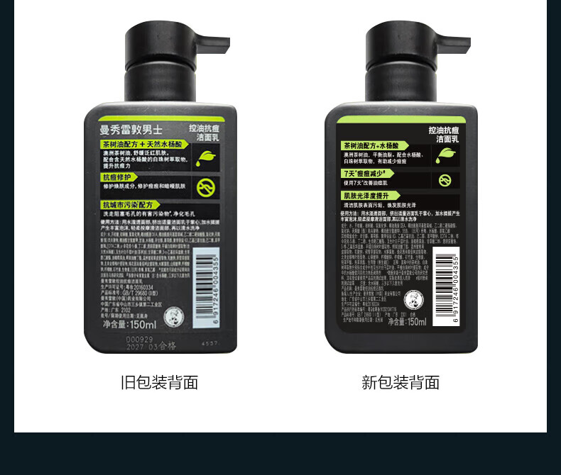 曼秀雷敦男士日夜洁面乳组合150ml*2控油去黑头洗面奶送男友