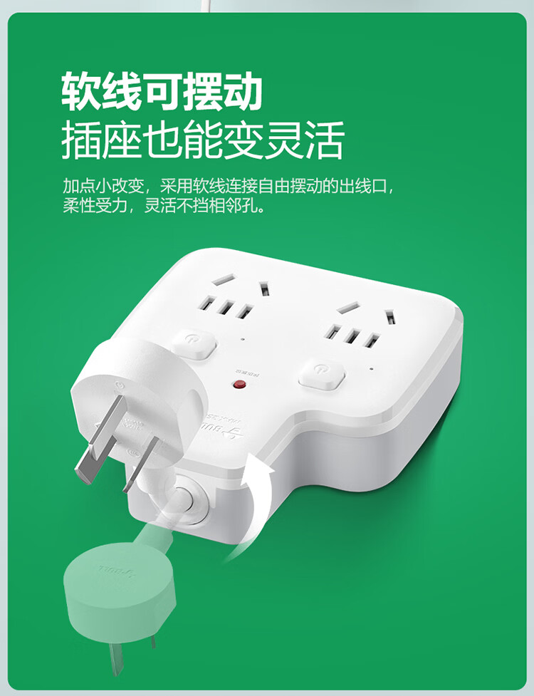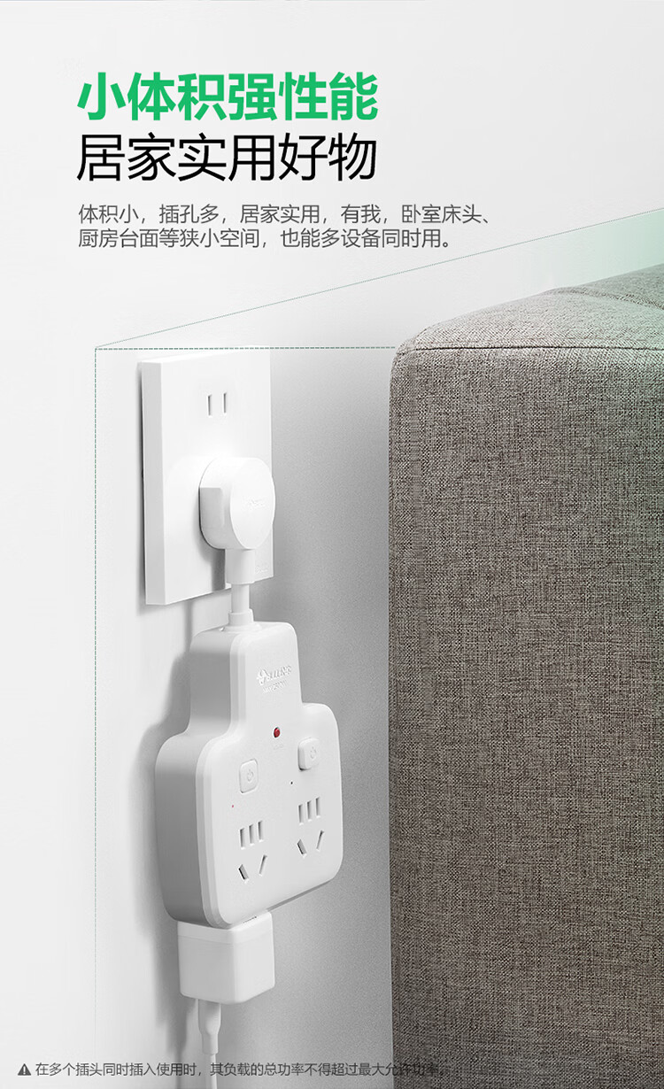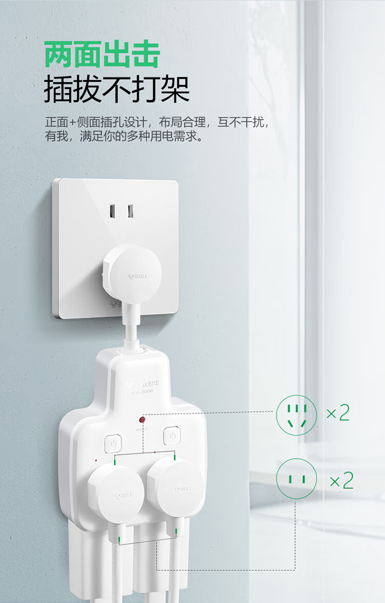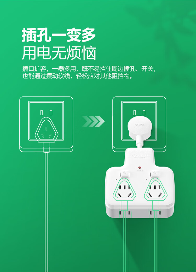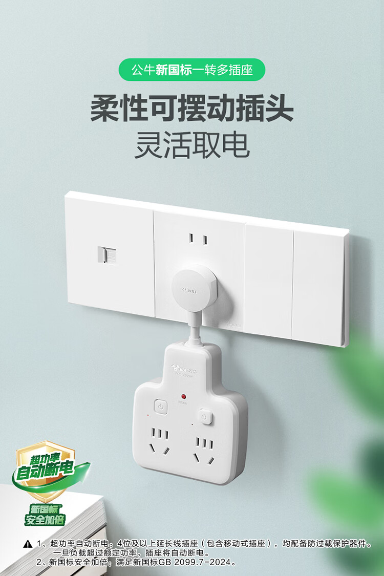 公牛(BULL)插座扩展器一转多/一转四插座/转换插头/转换器/插排/插线板 适用卧室、厨房 柔性4位分控GN-97223