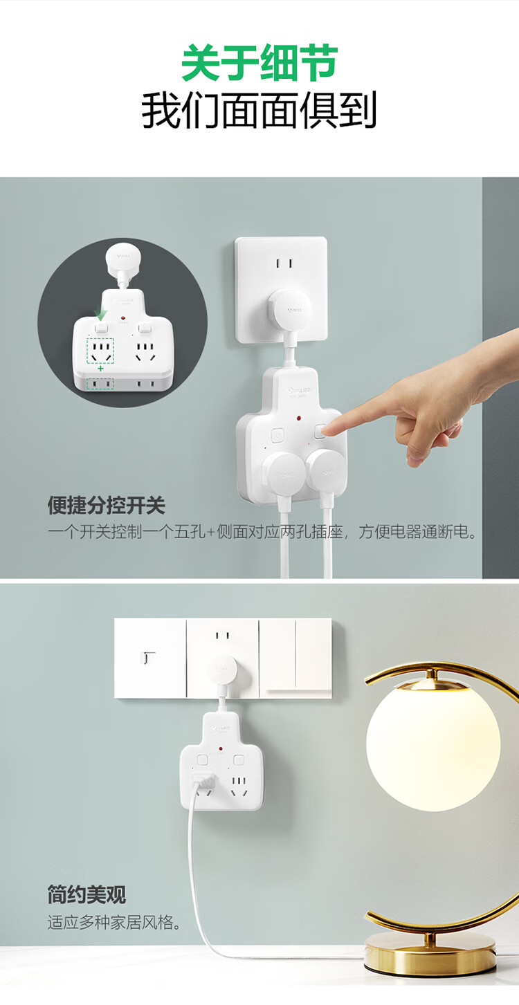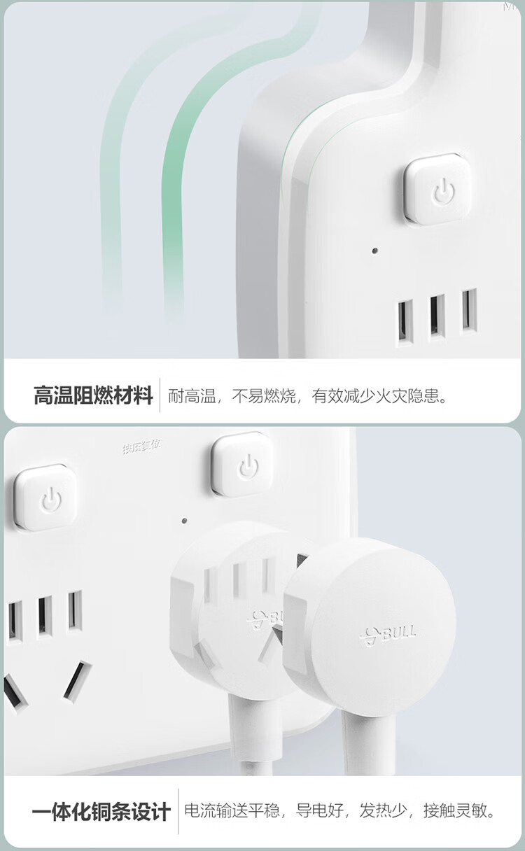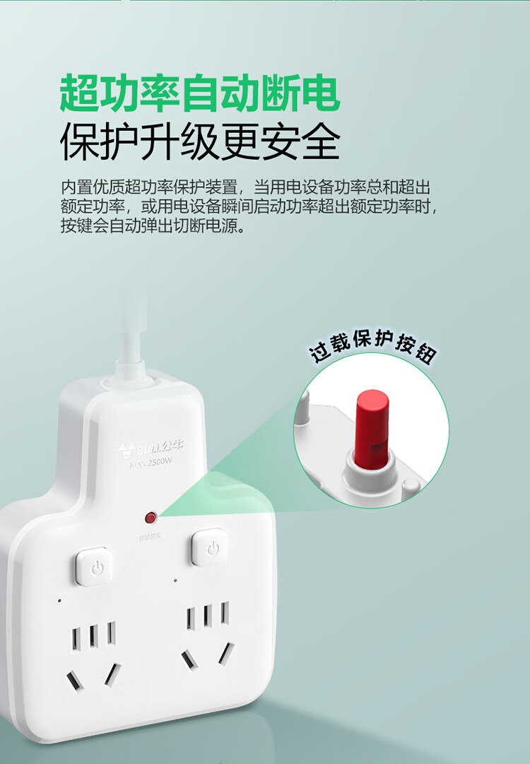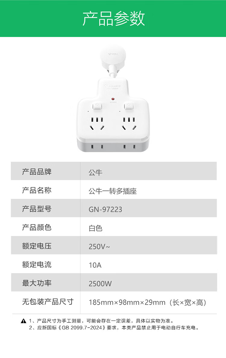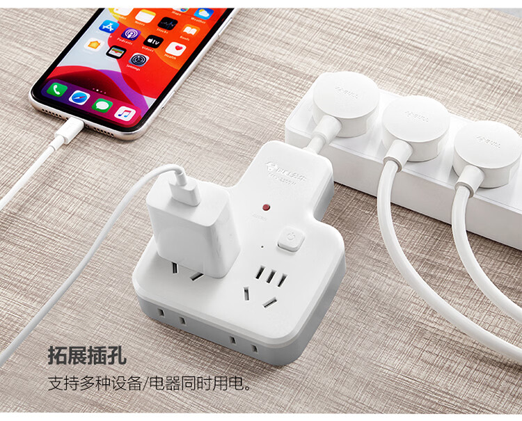 公牛(BULL)插座扩展器一转多/一转四插座/转换插头/转换器/插排/插线板 适用卧室、厨房 柔性4位分控GN-97223