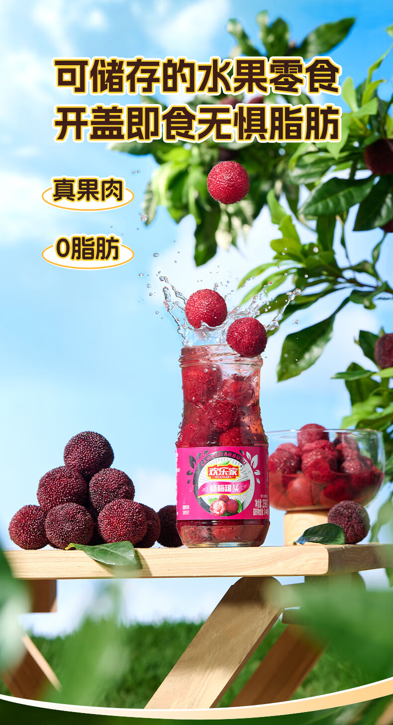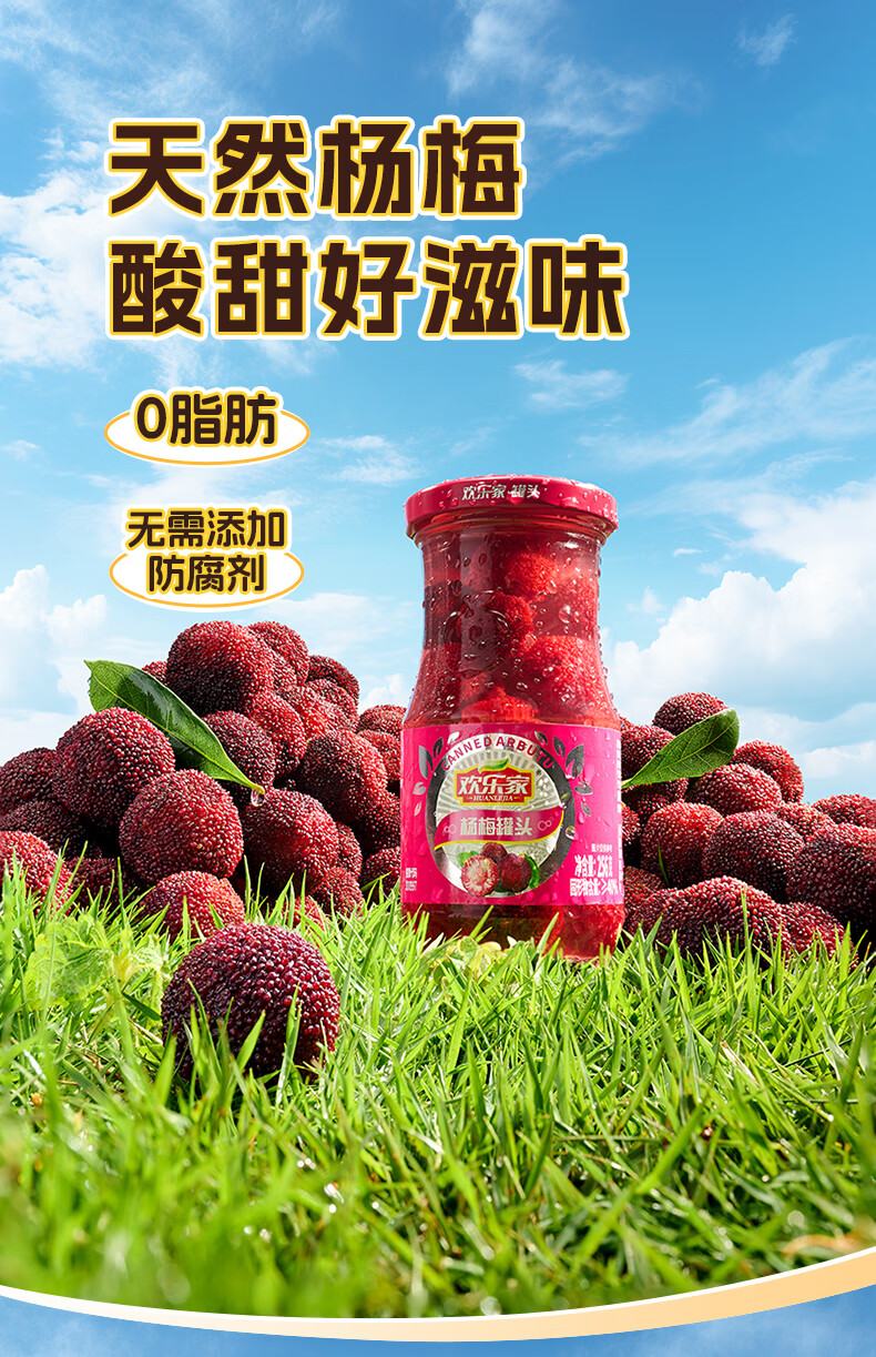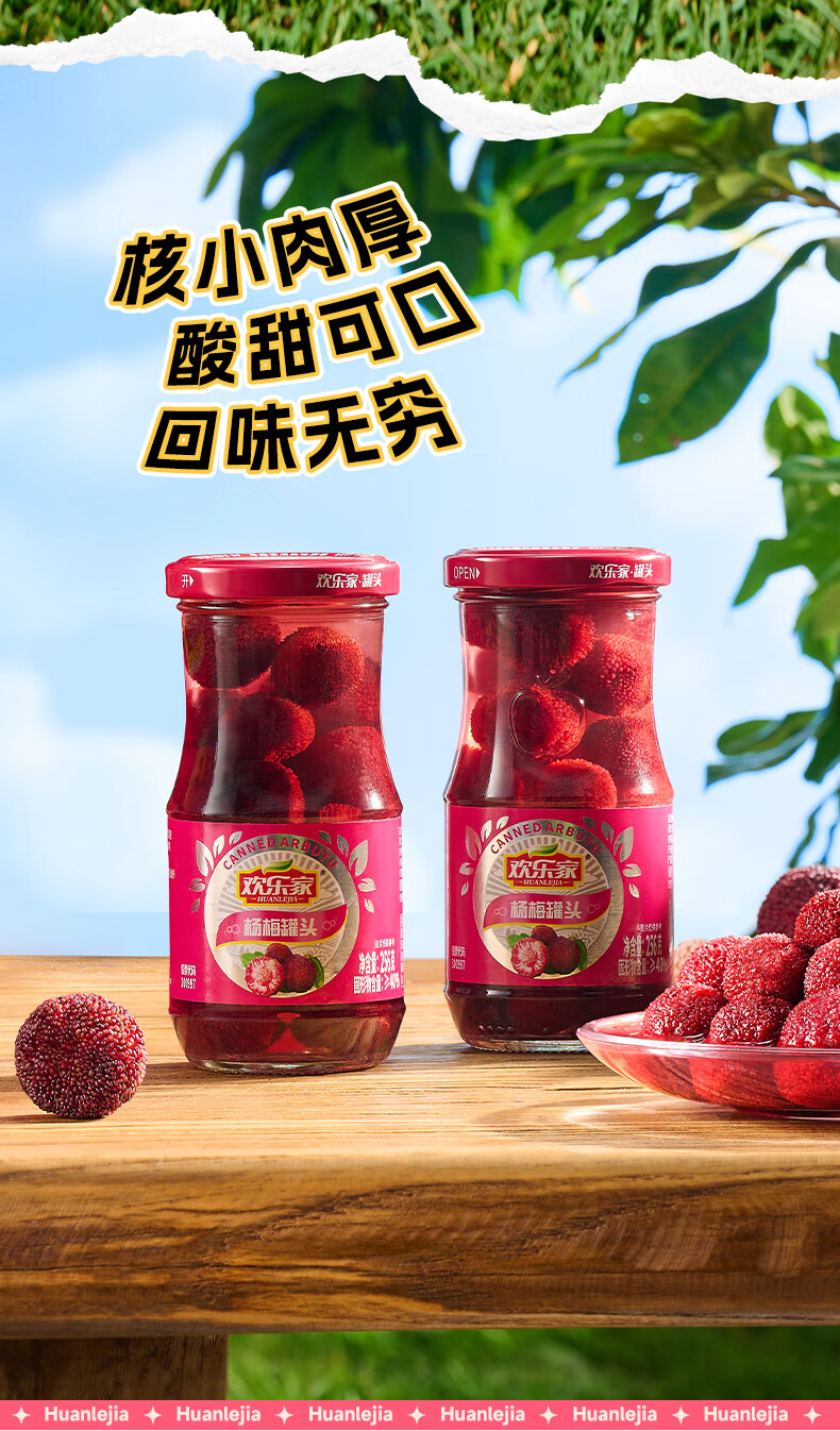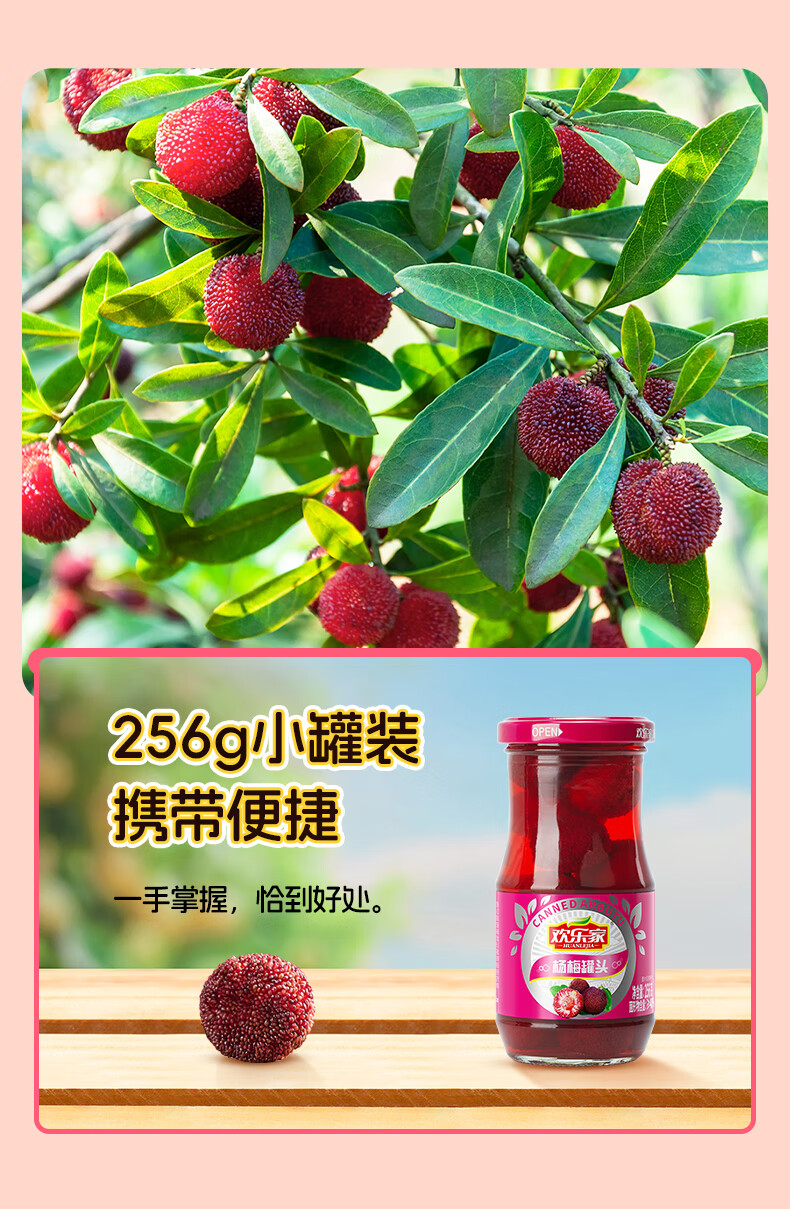 欢乐家 杨梅罐头256g*6瓶 糖水水果罐头玻璃瓶装 休闲零食方便食品