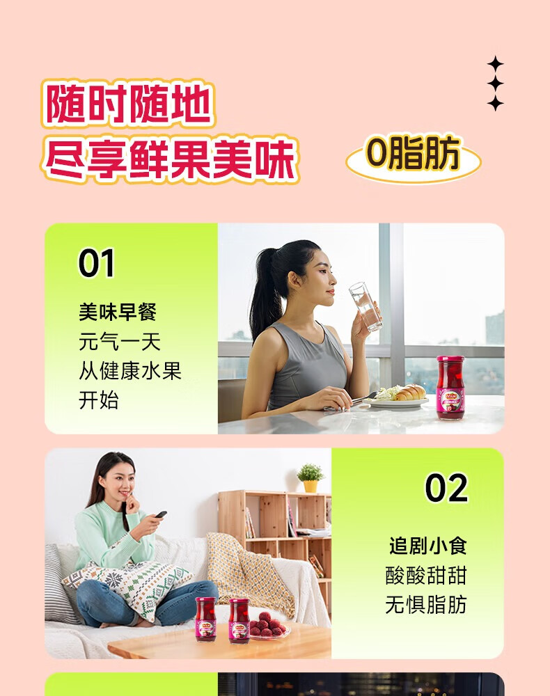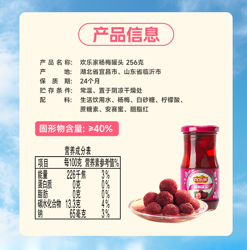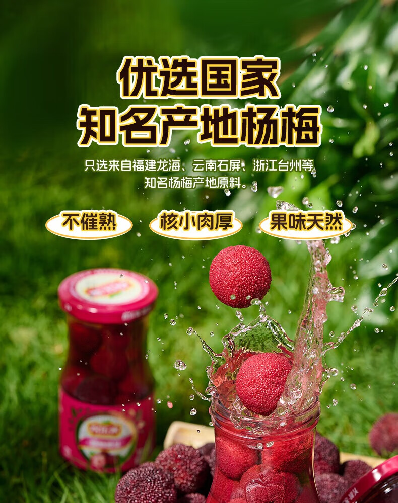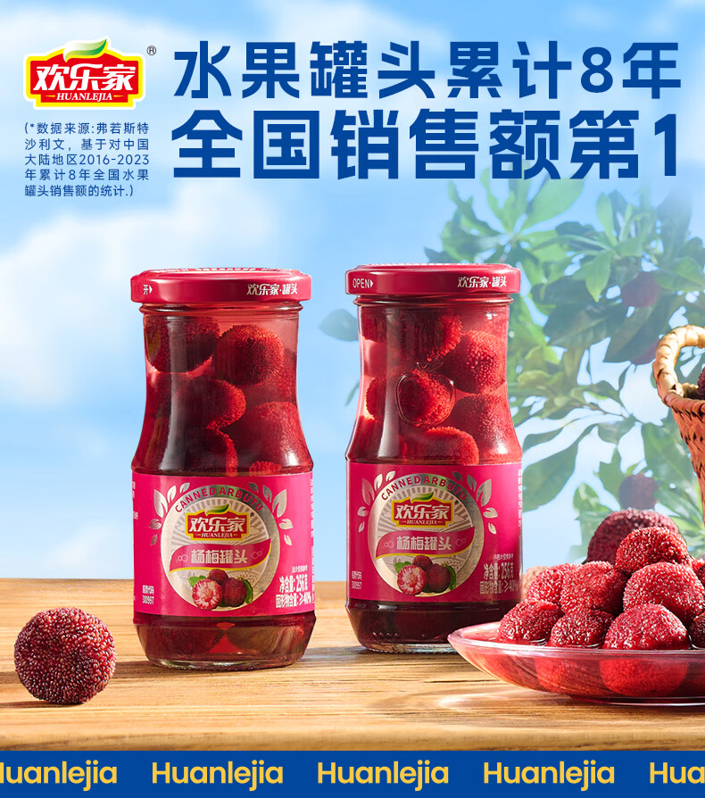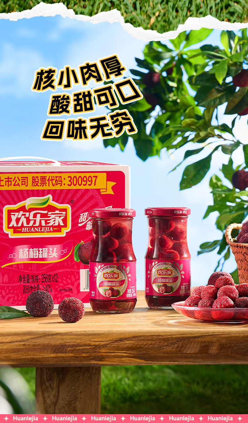 欢乐家 杨梅罐头256g*6瓶 糖水水果罐头玻璃瓶装 休闲零食方便食品