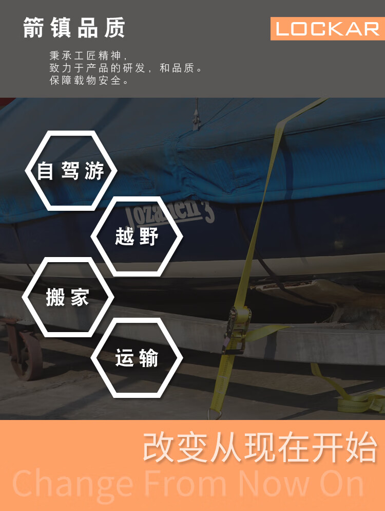 箭鎮经典款2吨SUV越野车顶皮卡小货车捆扎紧固带收紧器拉紧器捆绑带 橙色 10M