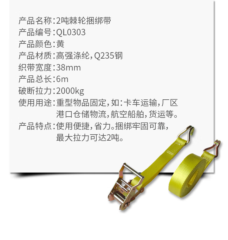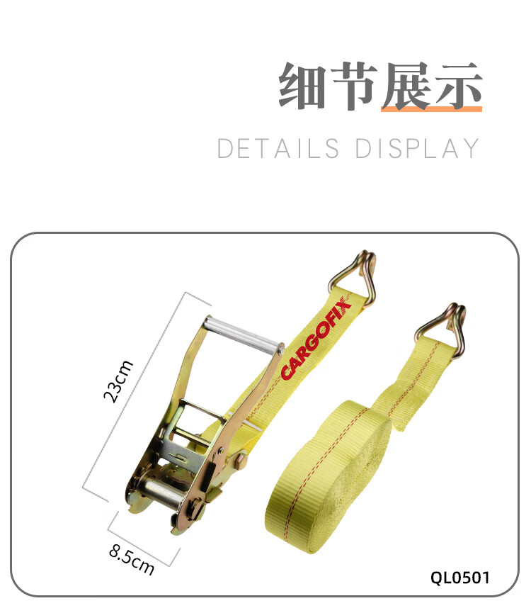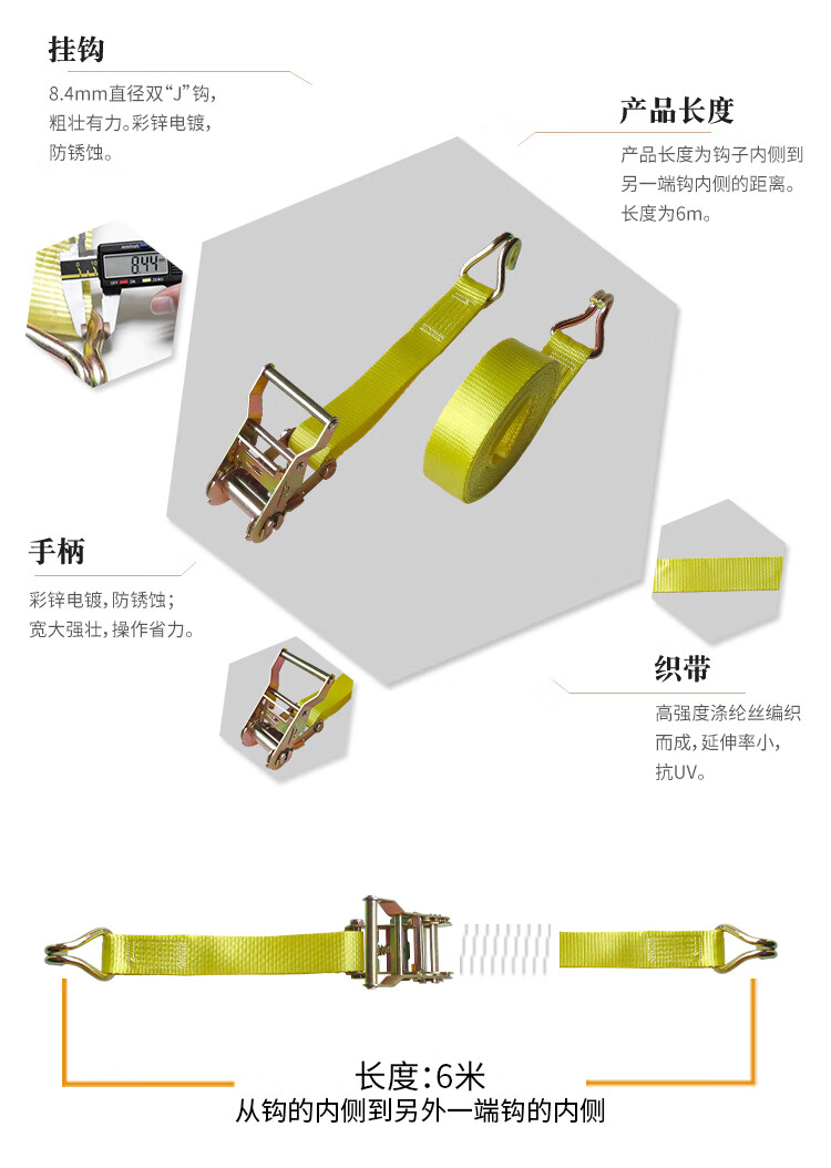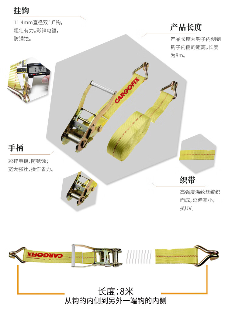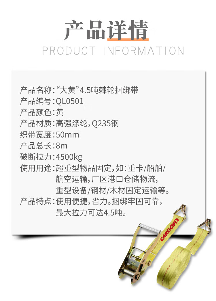 箭鎮集卡货车捆绑带4.5吨重型货物紧绳器黄色棘轮扎带拉紧器捆绑绳 明黄色8m-4.5吨