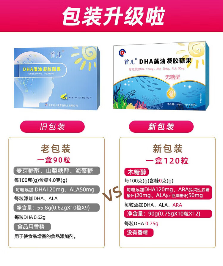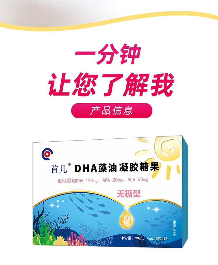 首儿顺丰-首儿无糖型DHA藻油宝宝儿童学生dha凝胶糖果(120粒) 首儿DHA一盒120粒