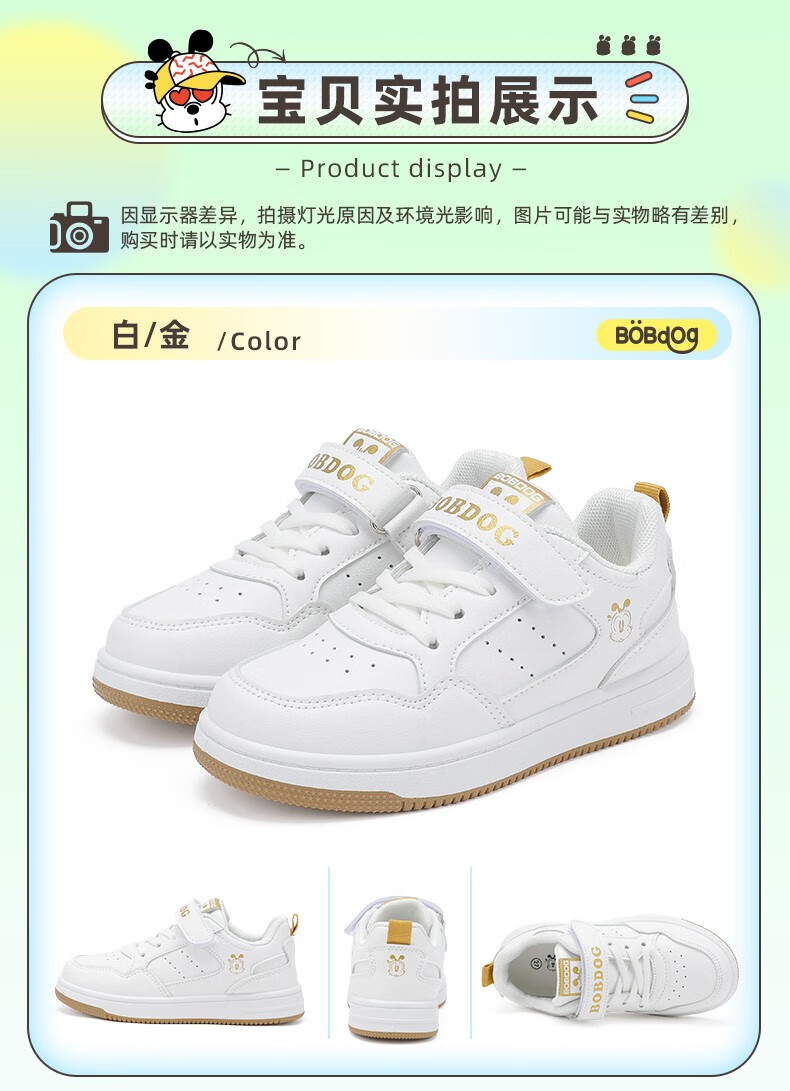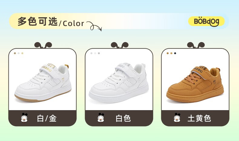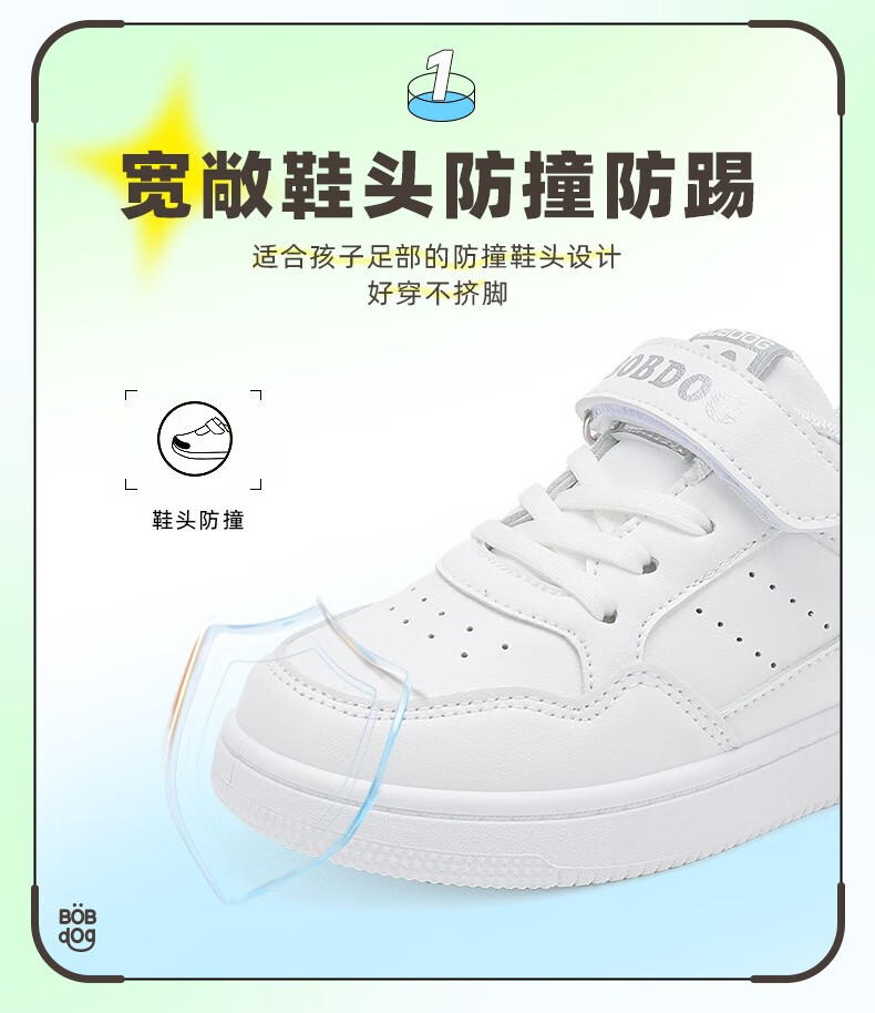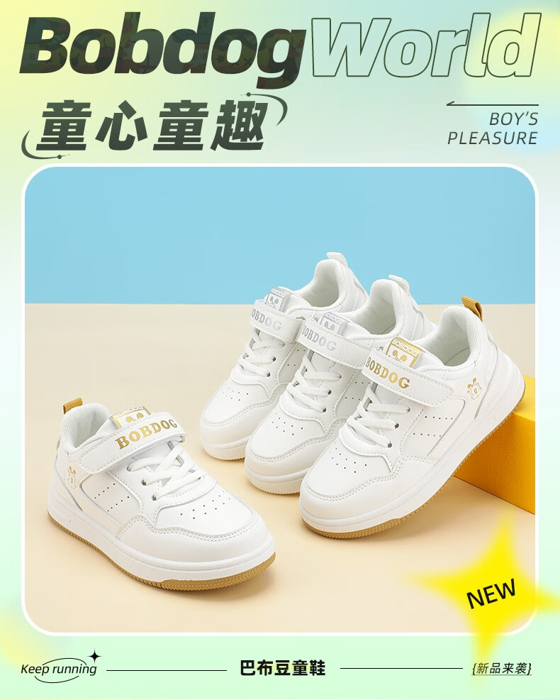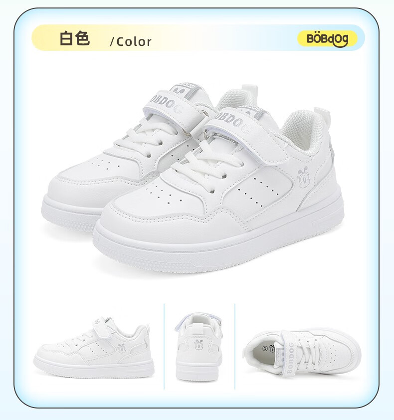 巴布豆(BOBDOG)童鞋男童百搭小白鞋春季新款软底透气低帮板鞋儿童运动鞋女 白色 30 适合脚长18.7cm