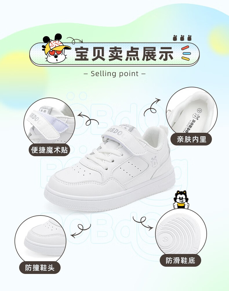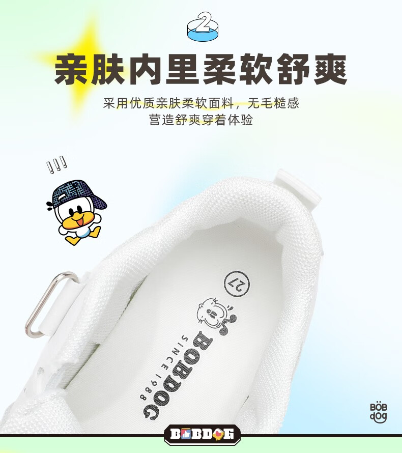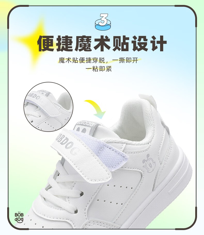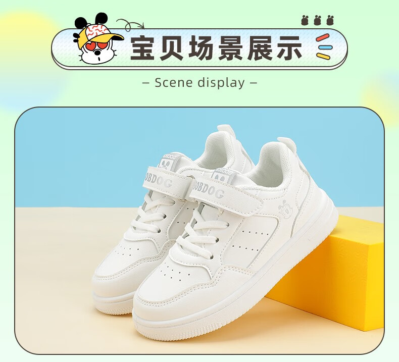 巴布豆(BOBDOG)童鞋男童百搭小白鞋春季新款软底透气低帮板鞋儿童运动鞋女 白色 30 适合脚长18.7cm