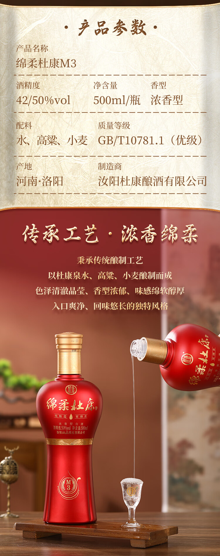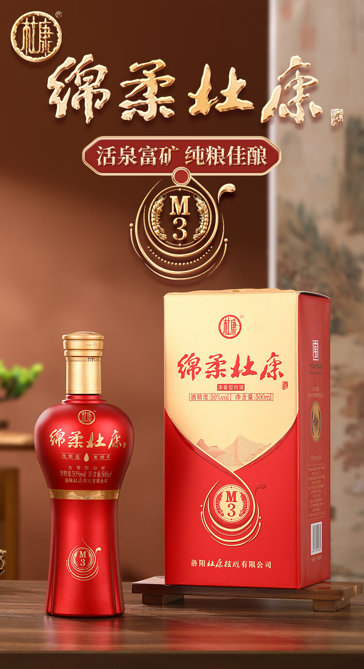 杜康【绵柔杜康】绵柔 M3升级版42度 500ml 浓香型白酒喜酒婚宴口粮酒 42度 500mL 6瓶 整箱【原箱发货】