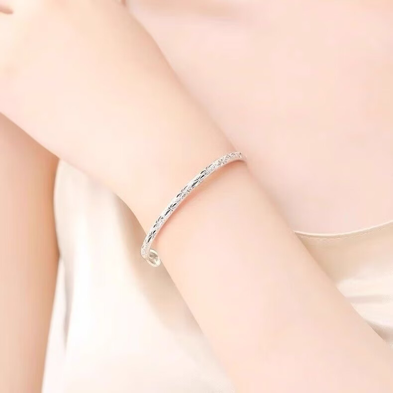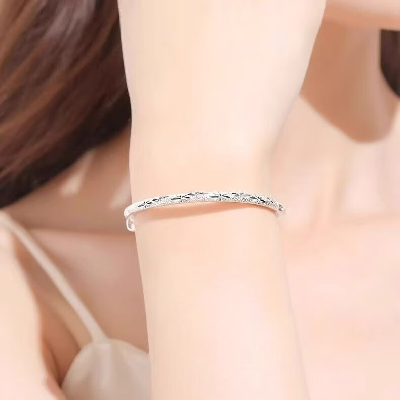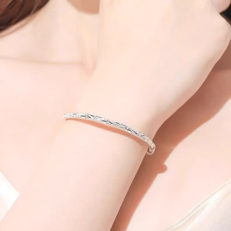 宅女之城满天星手镯女推拉款实心925 银色镯小众七夕情人节礼物送女友老婆 满天星手镯S-1【1个装】