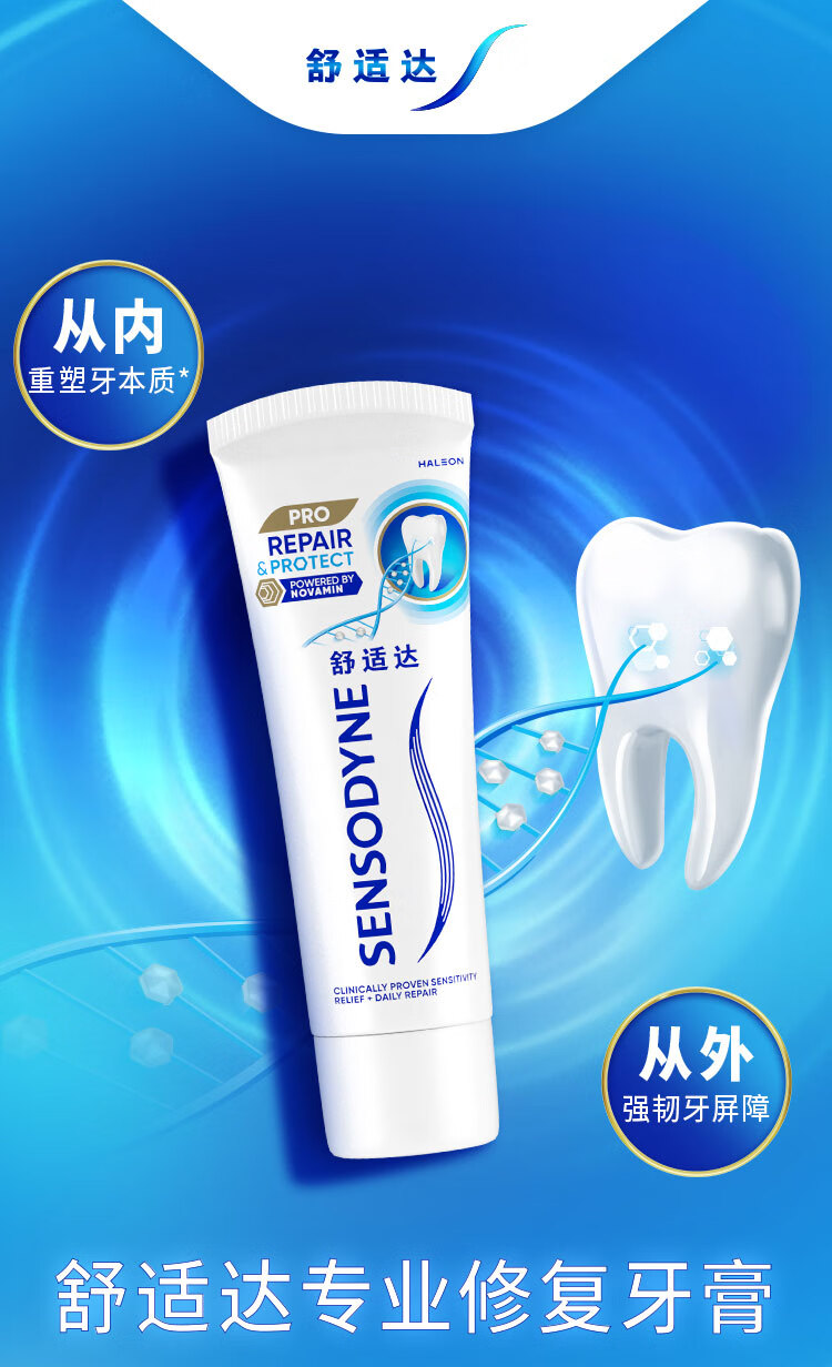舒适达专业修复抗敏感牙膏套装NovaMin修复牙釉质技术固齿防蛀 专业修复90g