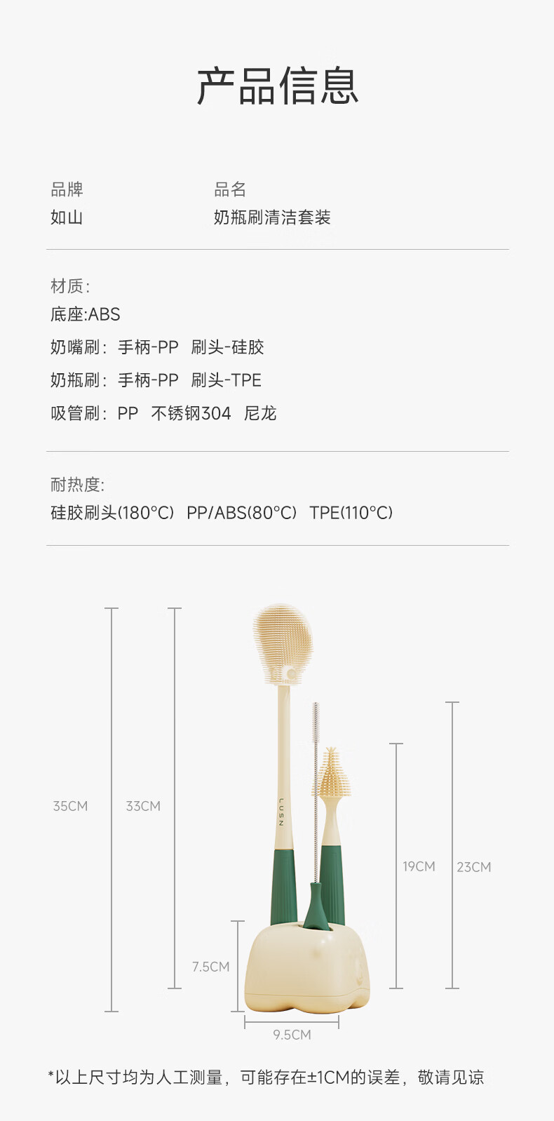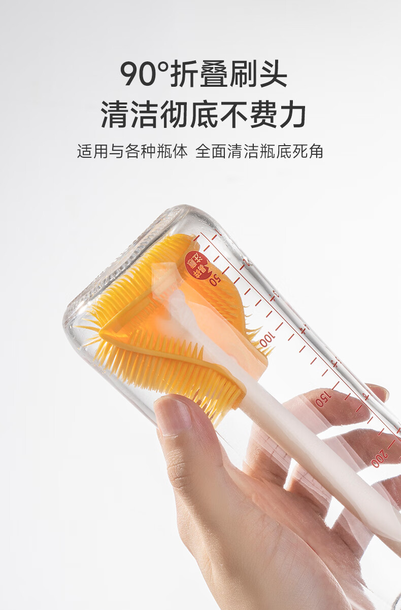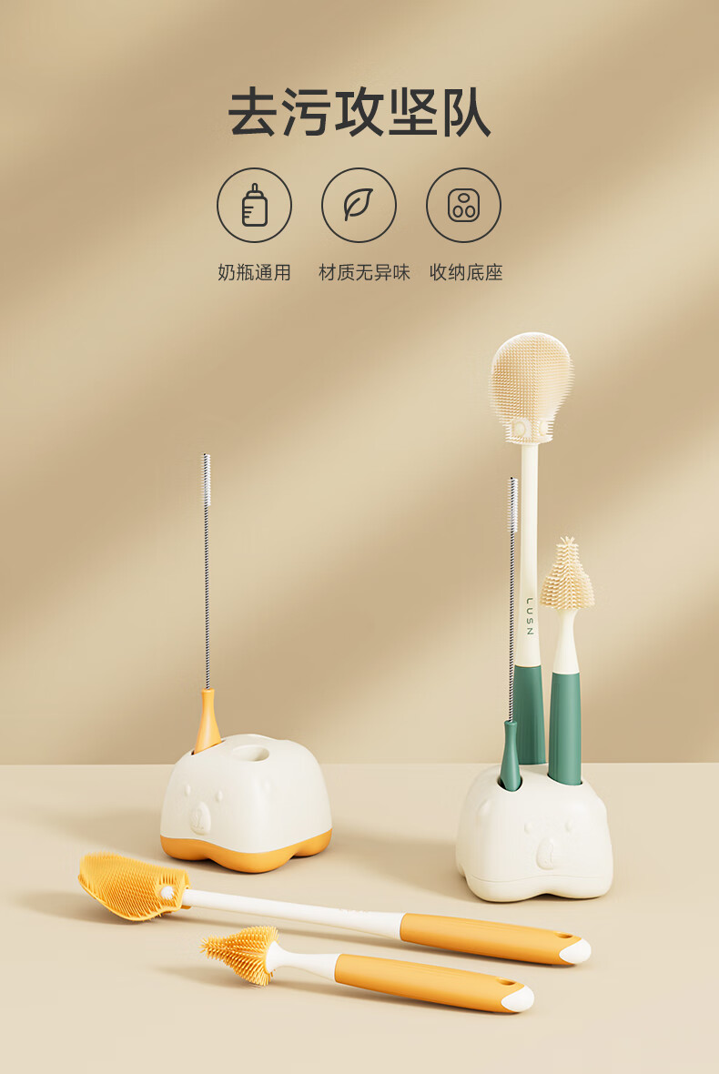 如山硅胶奶瓶刷清洗清洁婴儿专用洗奶瓶涮子奶嘴三合一刷子套装 清洁3件套[活力橙] +沥水底座