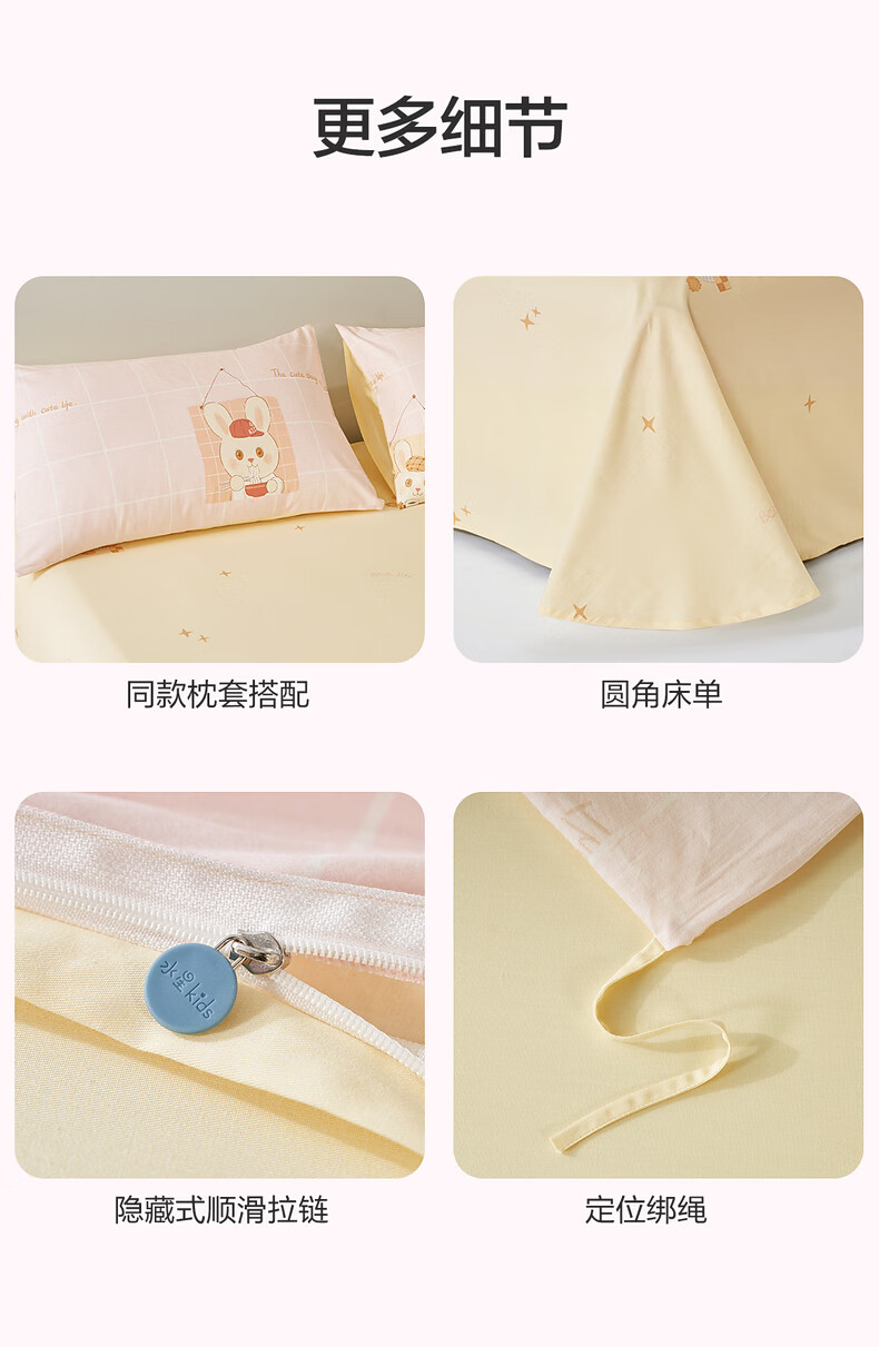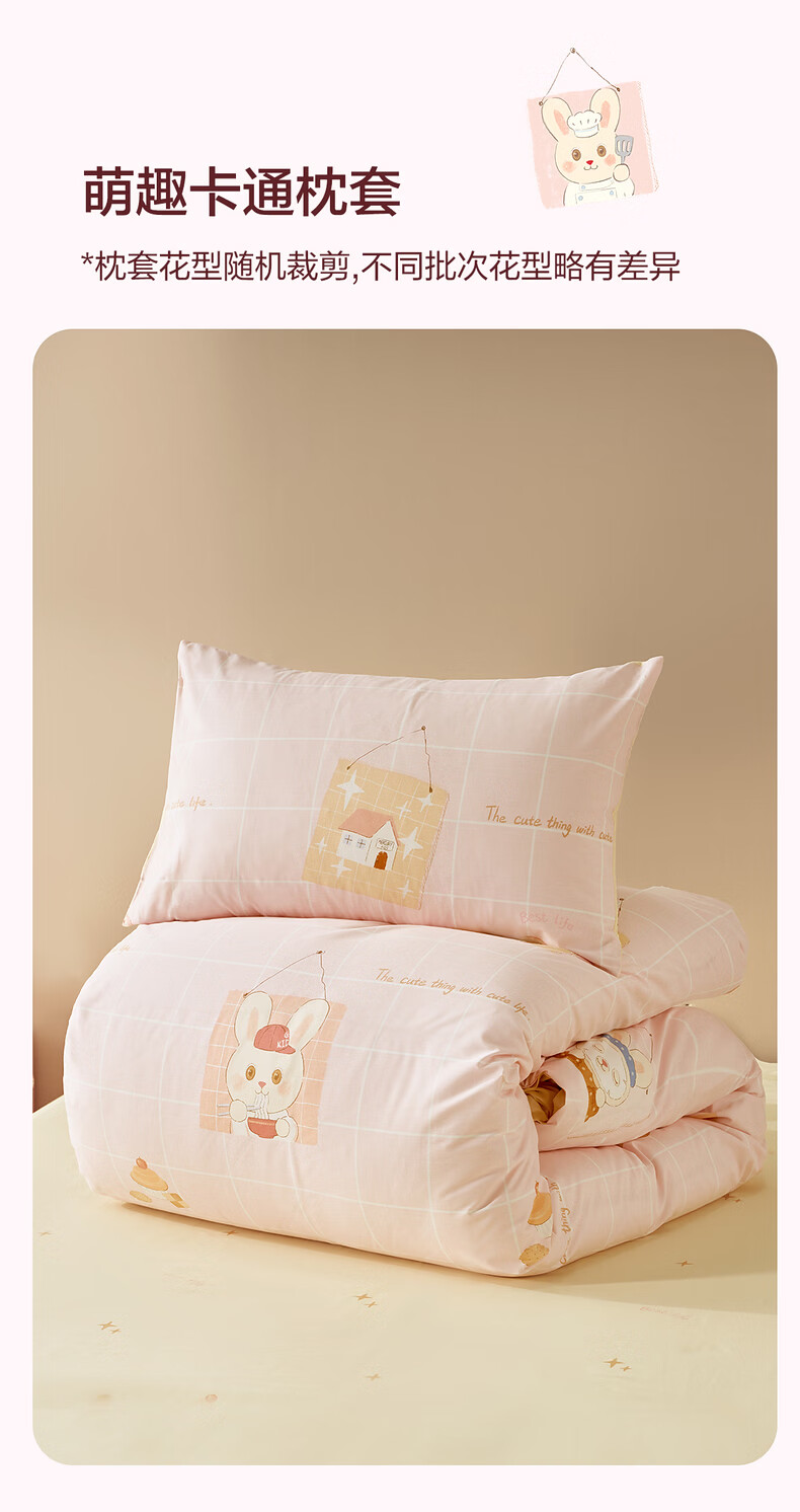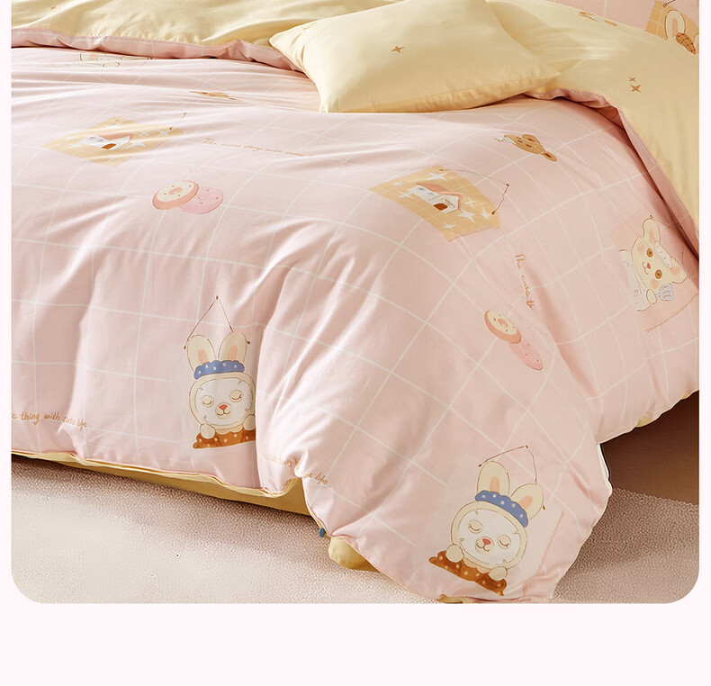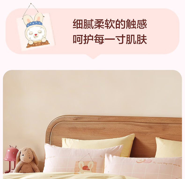 水星家纺四件套床上用品纯棉100%全棉婴幼儿A类儿童学生宿舍26年套件 兔兔的早餐 床单款 (被套150*210cm)