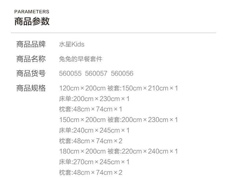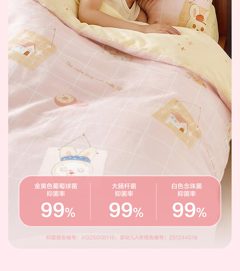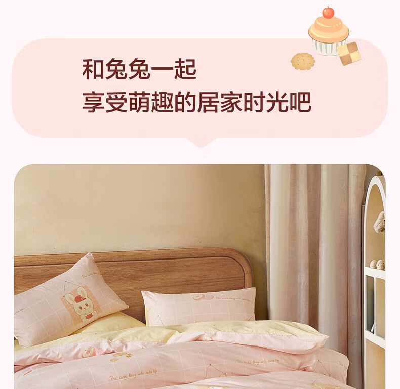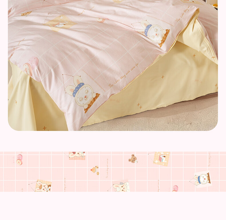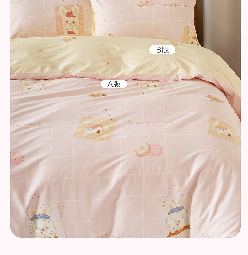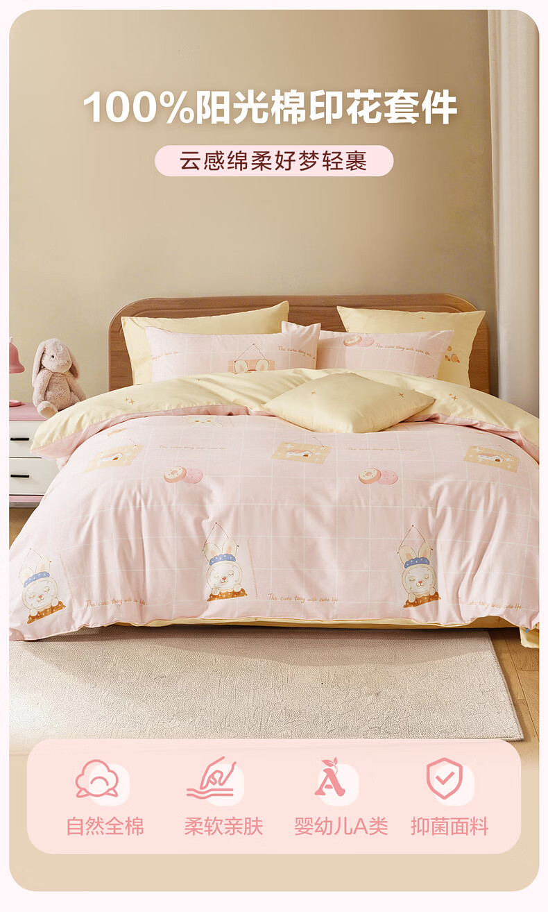 水星家纺四件套床上用品纯棉100%全棉婴幼儿A类儿童学生宿舍26年套件 兔兔的早餐 床单款 (被套150*210cm)