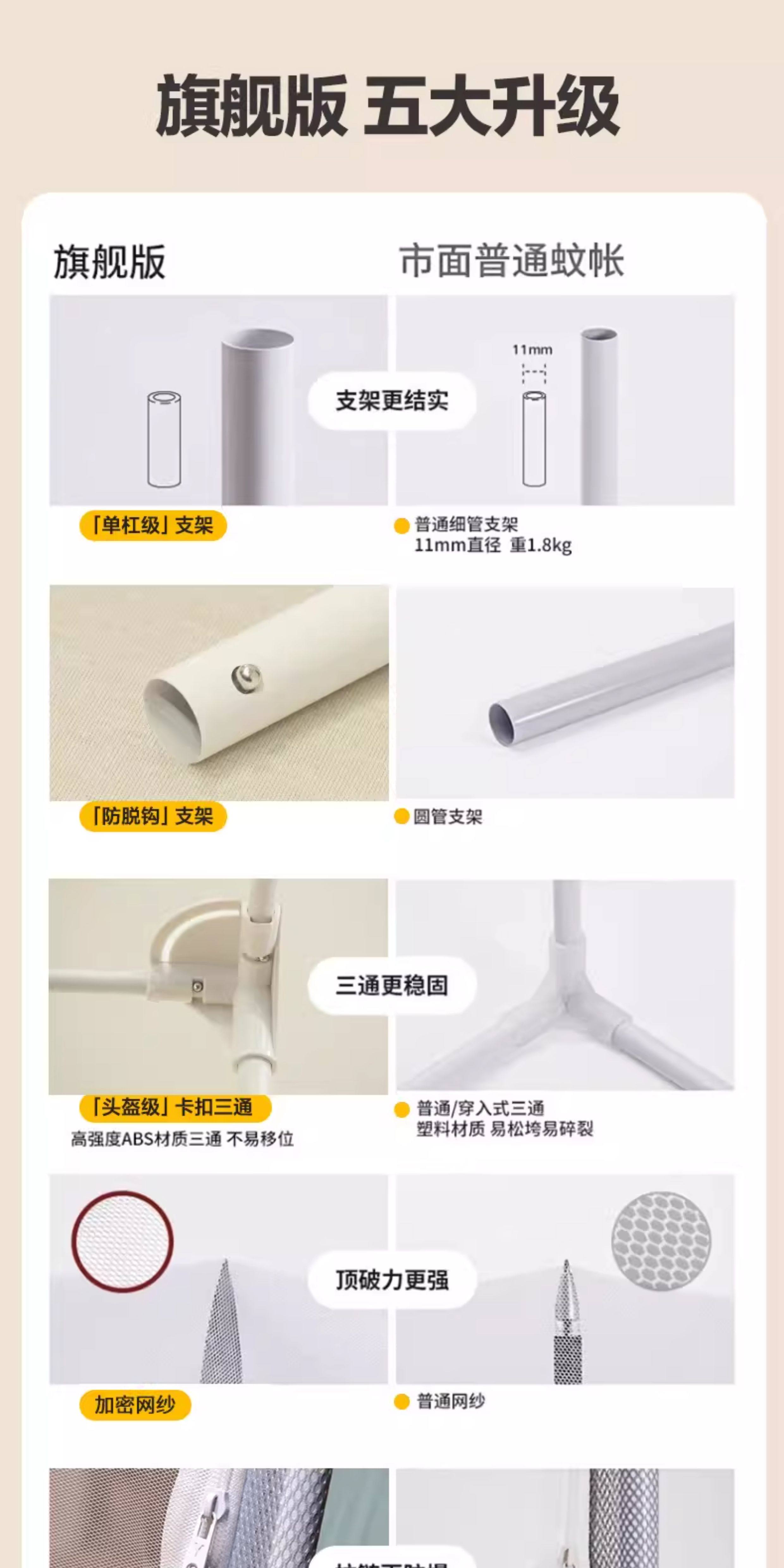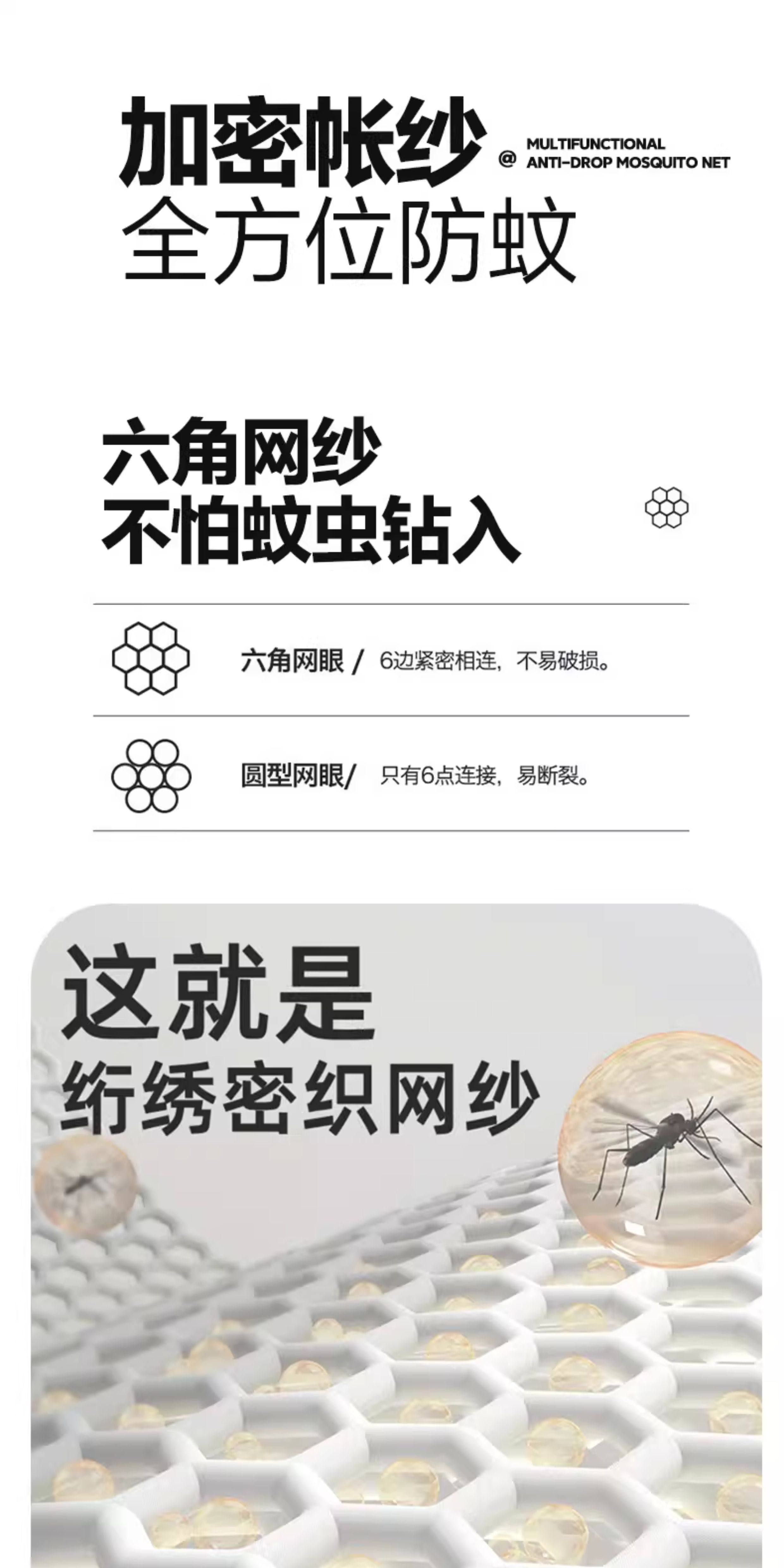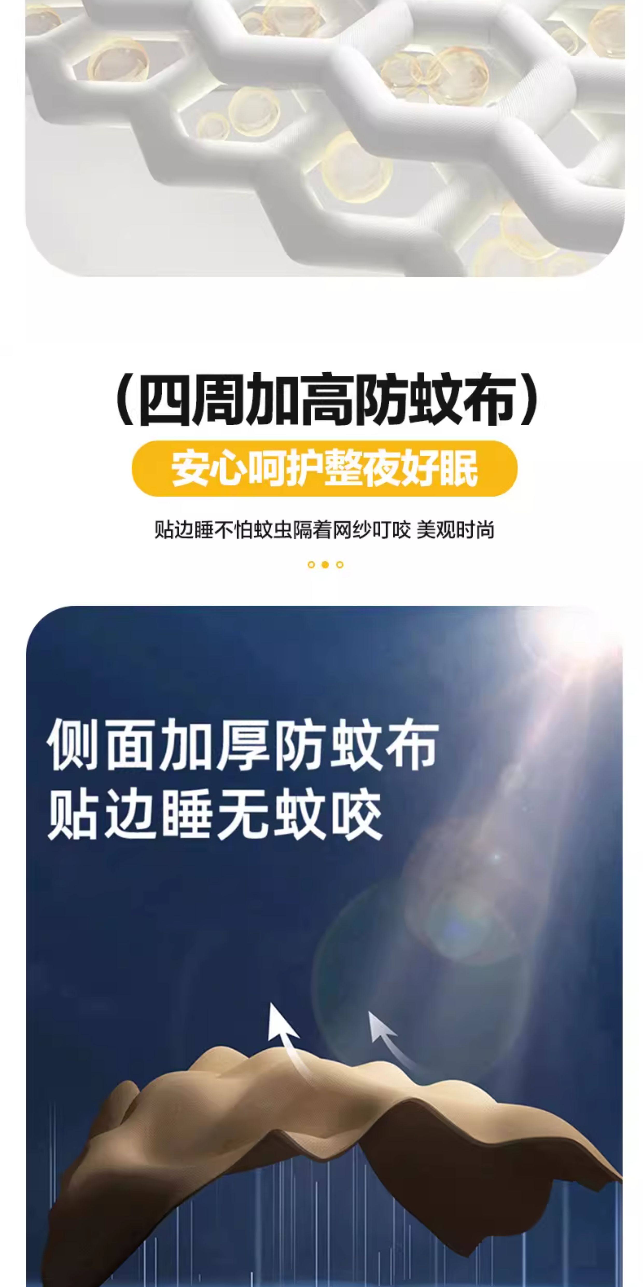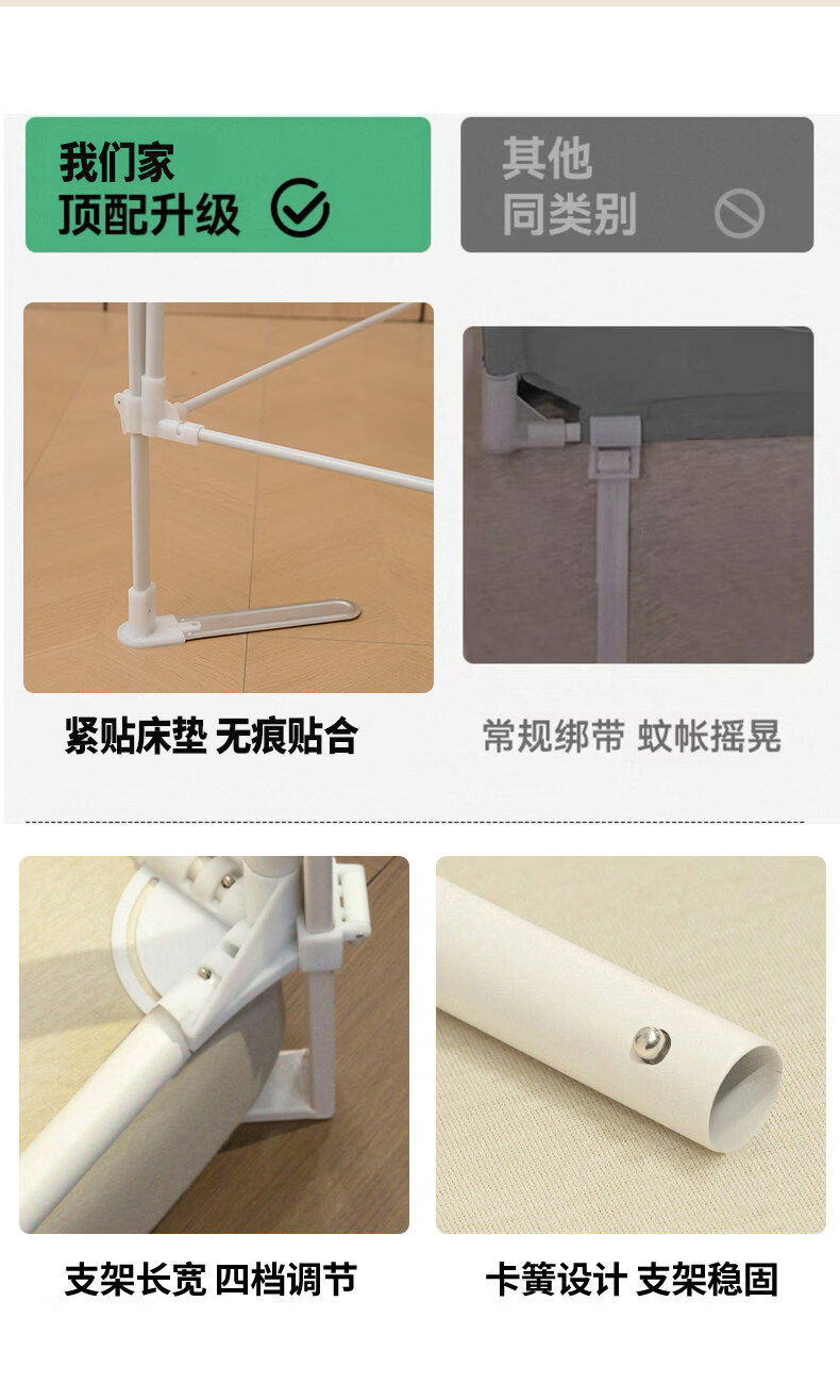 猫人(MiiOW)A类防摔蚊帐1.8x2米家用婴儿床围栏卧室一体式全包围带支架三开门 浅蓝浅米【A类全底帐纱+免拼底座支架】 适用1.8m床-180x200x170cm【专利加固压脚】