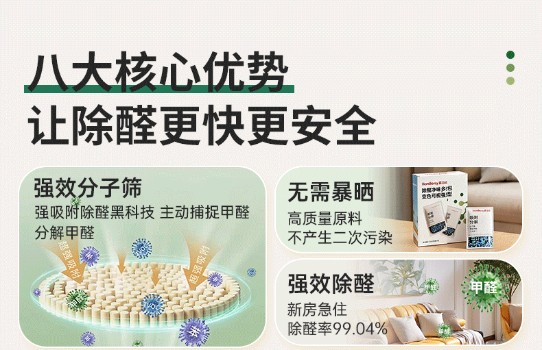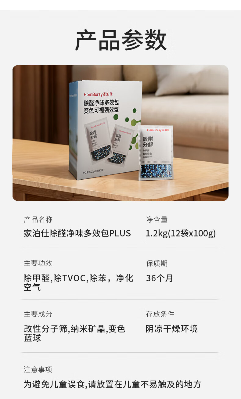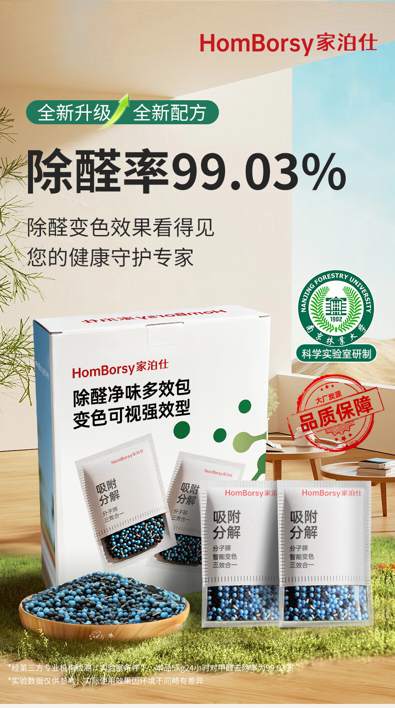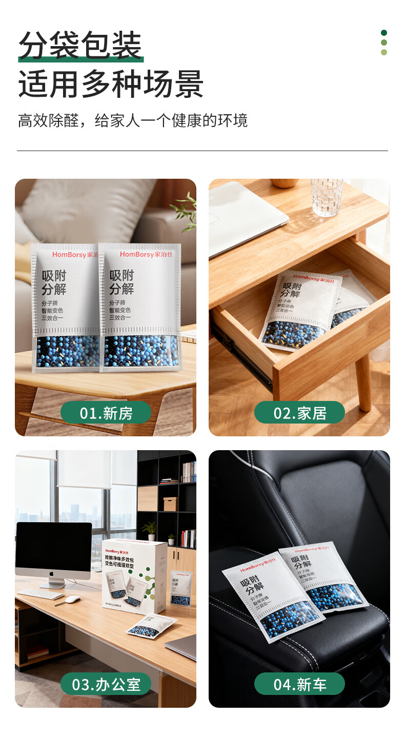 家泊仕活性炭变色炭包去甲醛新房除甲醛吸味甲醛清除剂除味高碘值炭包 1盒-1200g|分子筛安心除醛20㎡|变色可视