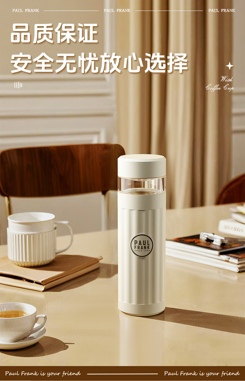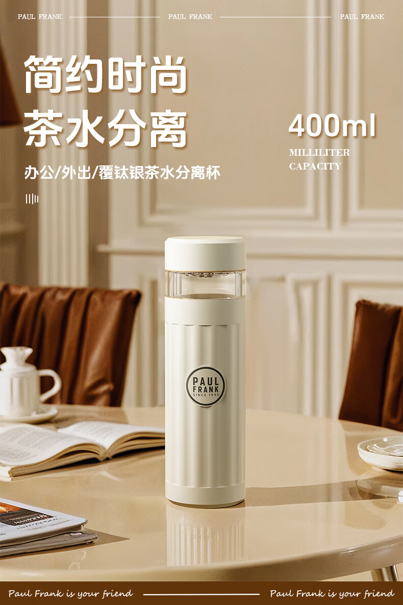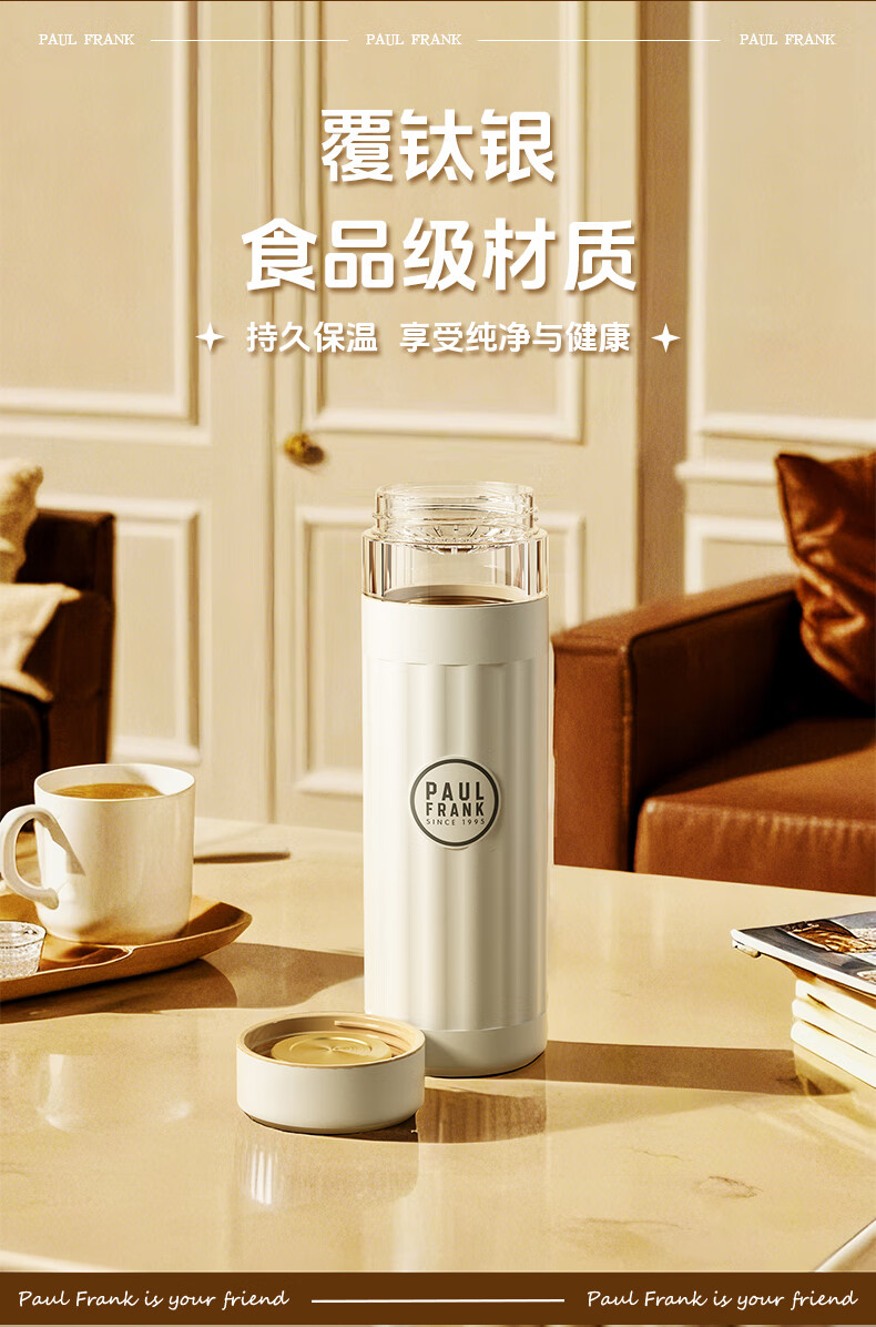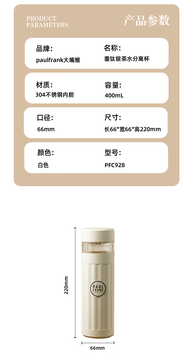 paul frank茶水分离保温杯覆钛银PFC928泡茶杯饮水杯子颜色随机发货