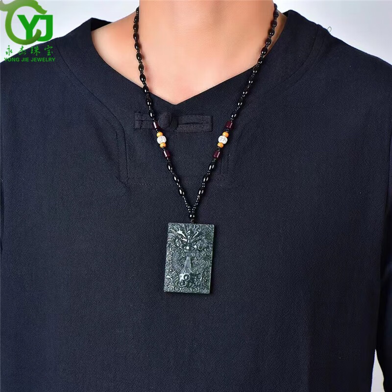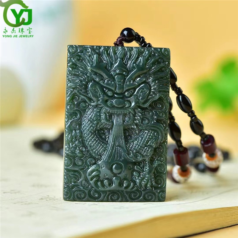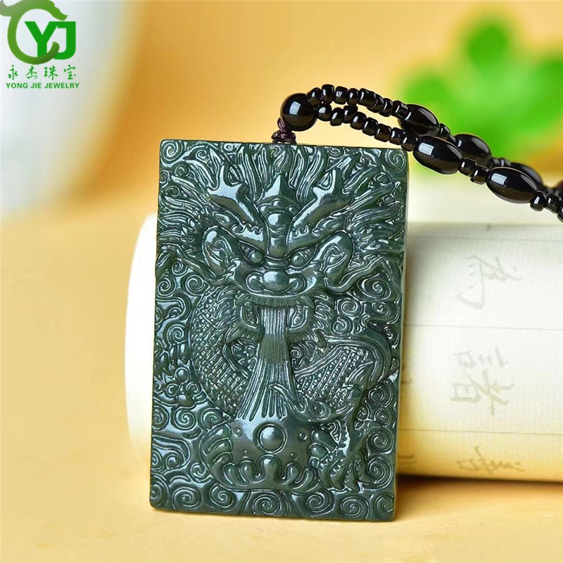 永杰珠宝 原创新款【成功】青玉吉祥龙牌生肖龙玉坠玉佩送长辈礼物