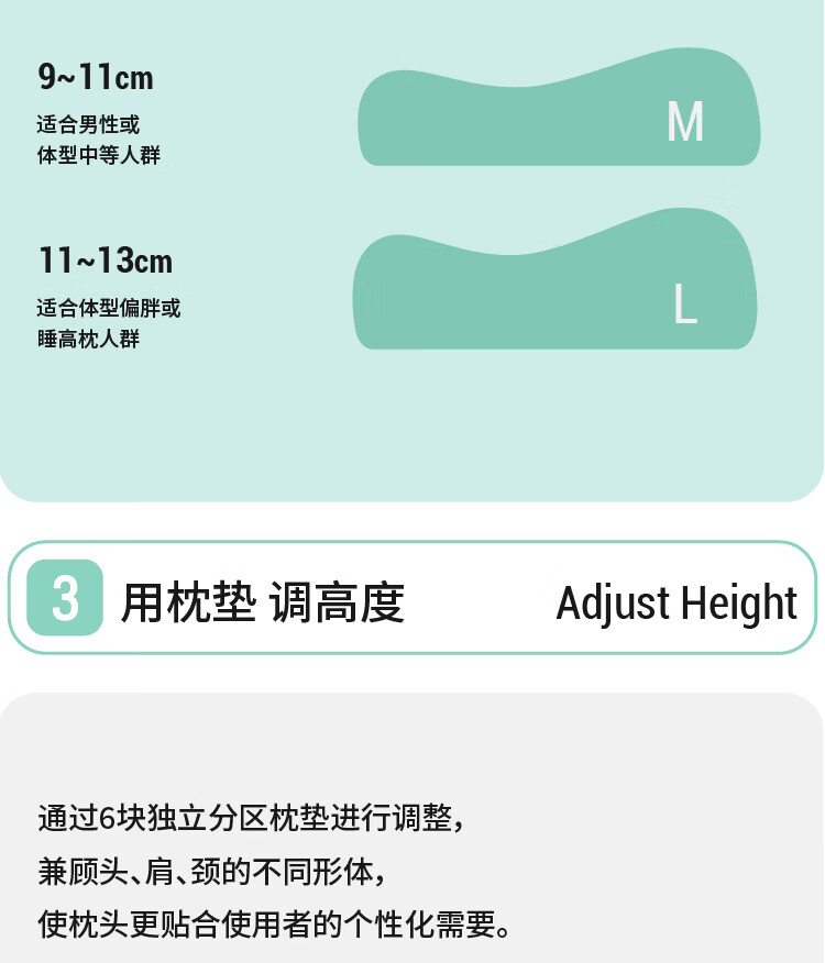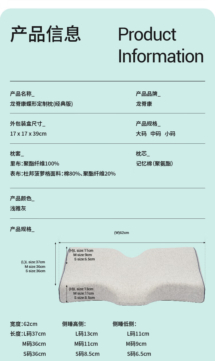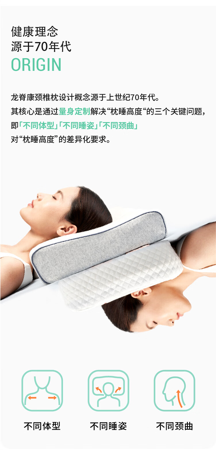龙脊康记忆枕 多尺码可选 打呼噜深度睡眠颈椎枕头 颈椎枕 配枕垫 送礼 中枕 9cm M码_体重60-90KG