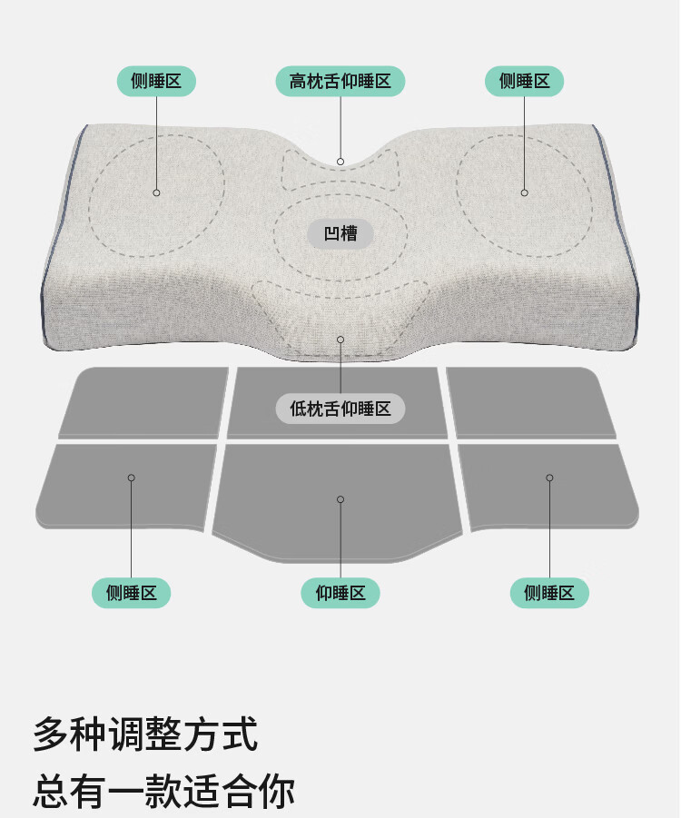 龙脊康 记忆枕七区枕垫调节 多种高度可调个性化睡眠枕内配枕垫颈椎枕头 高雅灰 单只