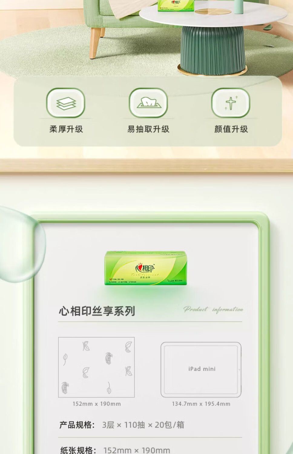 心相印抽纸3层茶语丝享纸巾110抽家用面巾纸餐巾纸软抽M码整箱 【M码】 3层 110抽*5包