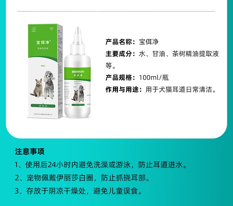 布尔(bullvet)宝佴净宠物洗耳液猫咪狗狗耳道清洁除臭洗耳水 宠物洗耳液日常*问题可用 100ml*1瓶
