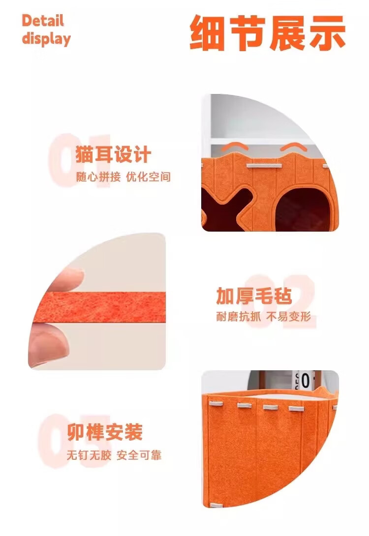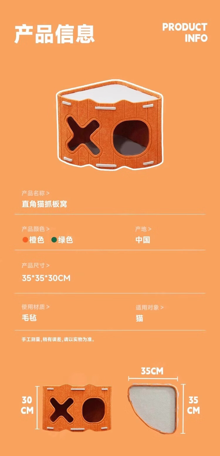 小猫日记多功能毛毡猫窝可叠放双层猫抓板一体猫咪窝室内宠物用品 橙色-三角形猫窝