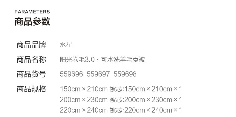 水星家纺阳光卷毛3.0·可水洗羊毛夏被 阳光卷毛3.0·可水洗羊毛夏被 150cm*210cm