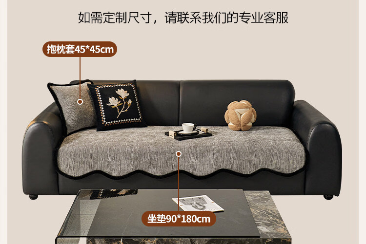 正圣劳伦斯皮沙发专用垫沙发垫四季通用防滑2026年新款高级感沙发坐垫 路易-黑白【雪尼尔四季通用】 70cm*70cm (可用作扶手和靠背)