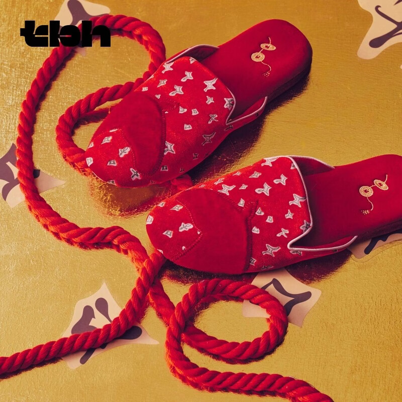 野兽派家居(tbh)马年限定丝绒乐福拖鞋室内情侣家居鞋新年礼物 40-41