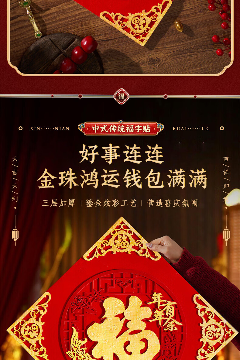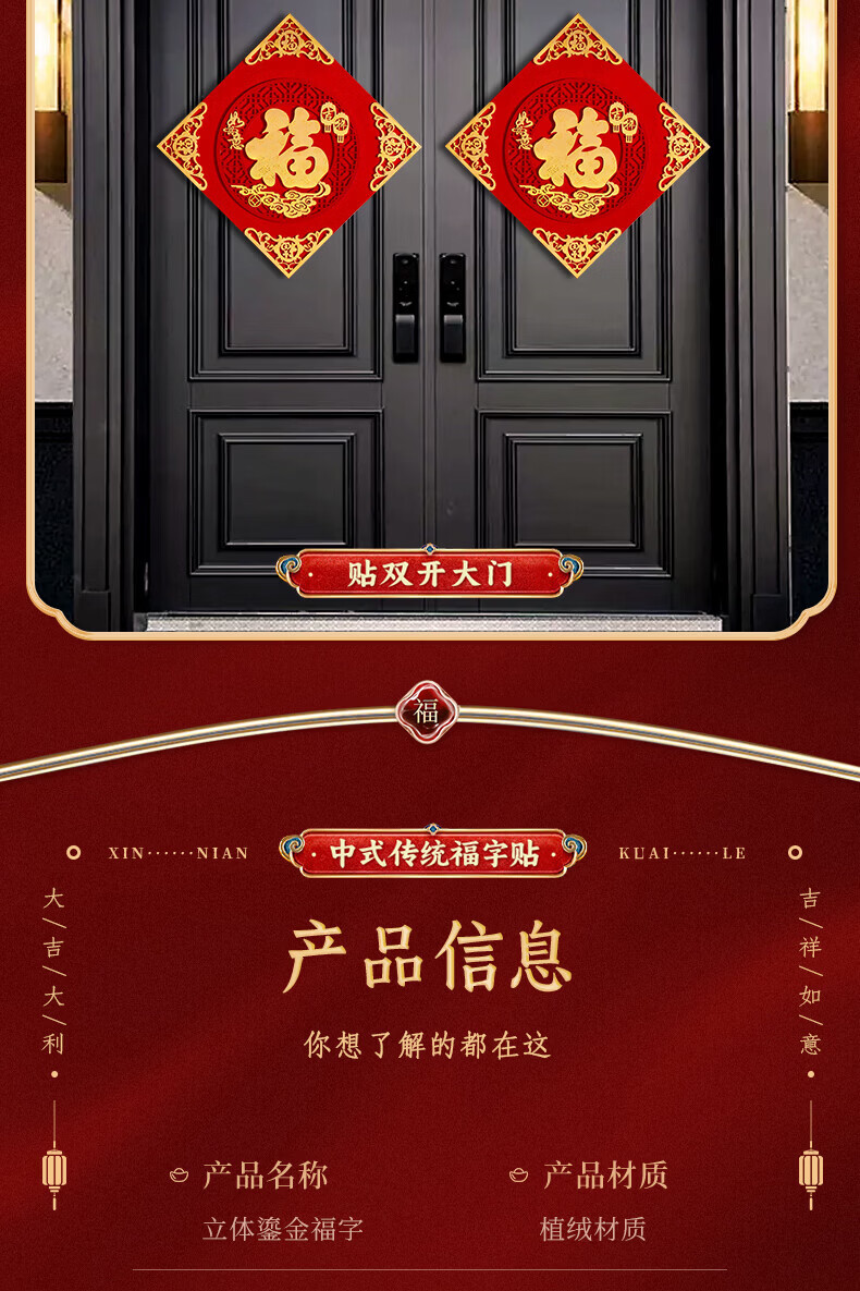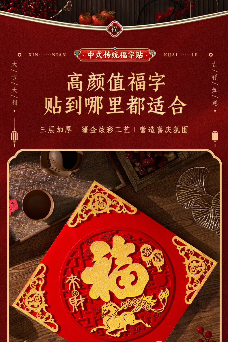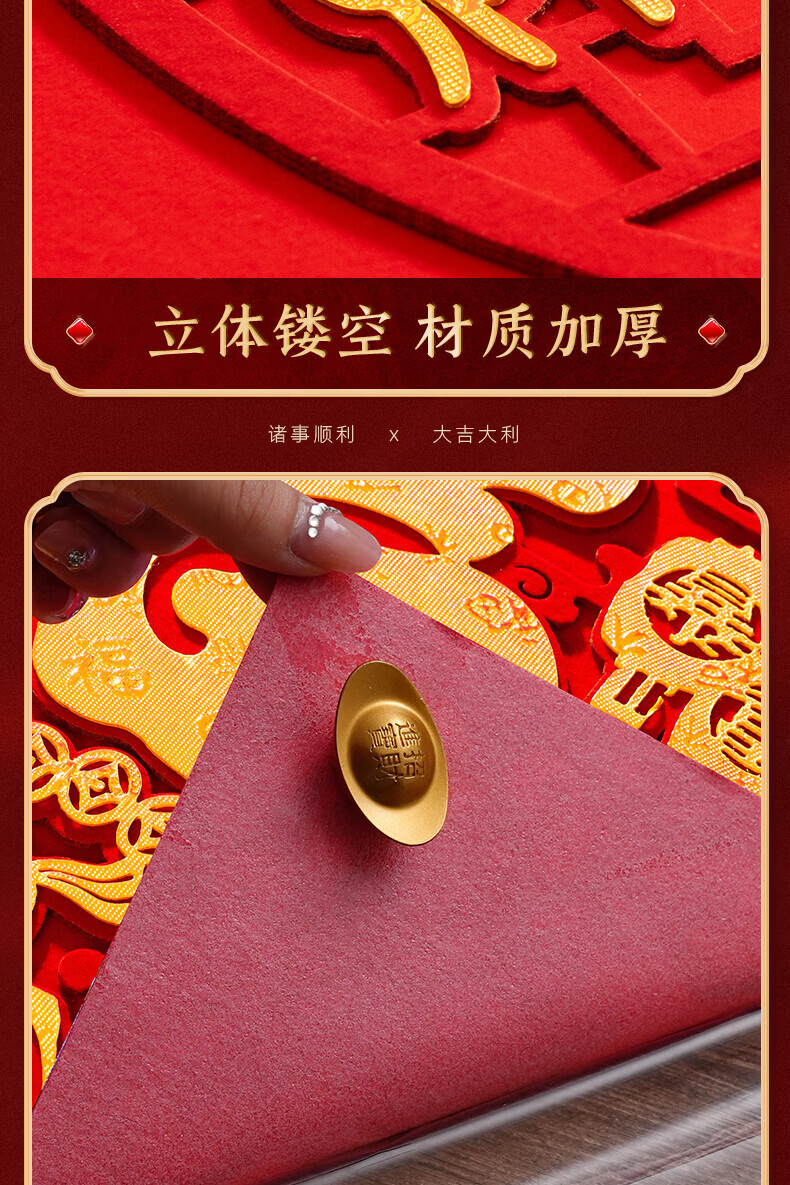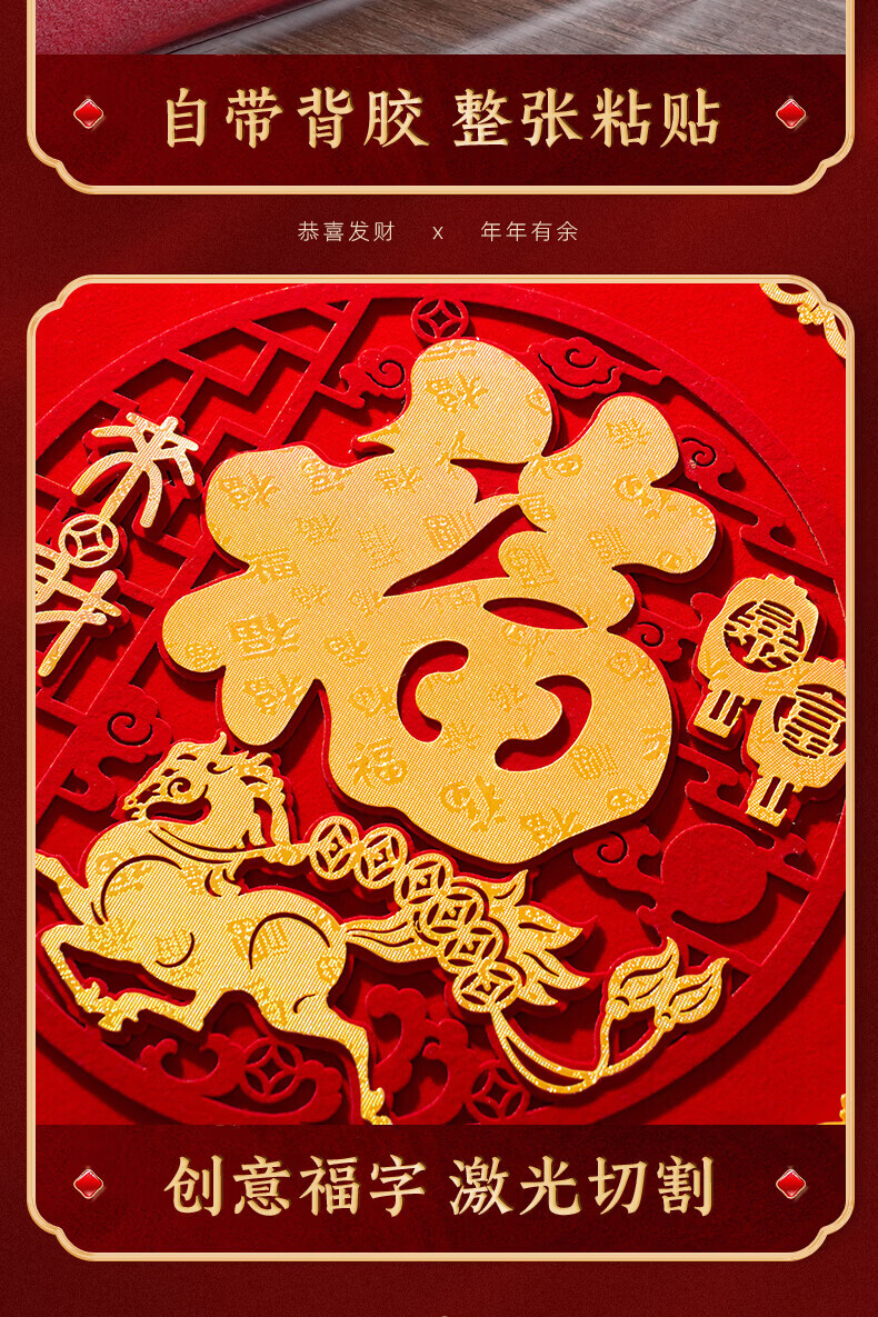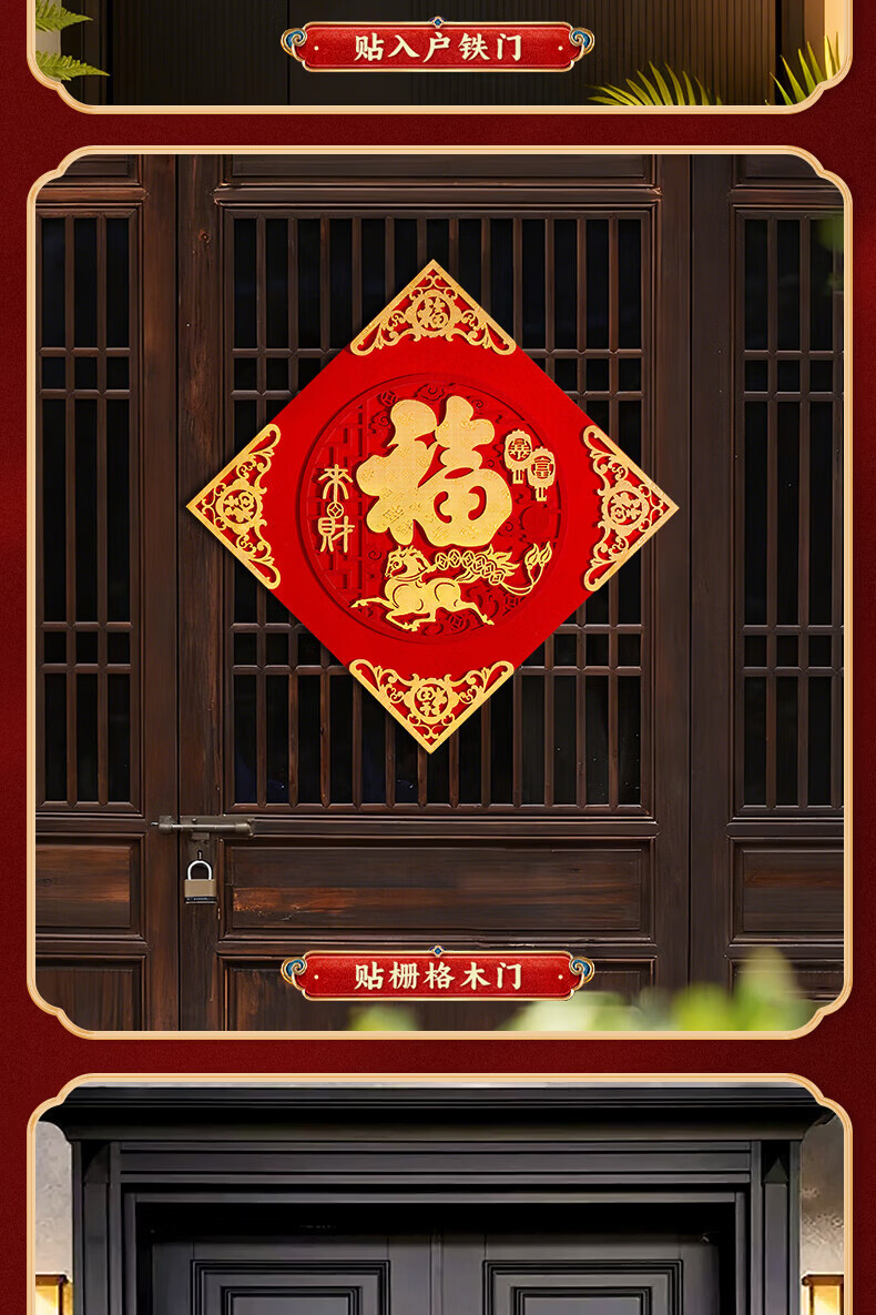 千棵树2026马年新款高档立体福字门贴新年春节大门装饰剪纸墙贴自粘贴纸 【来财暴富】40#双层福字 全背胶款