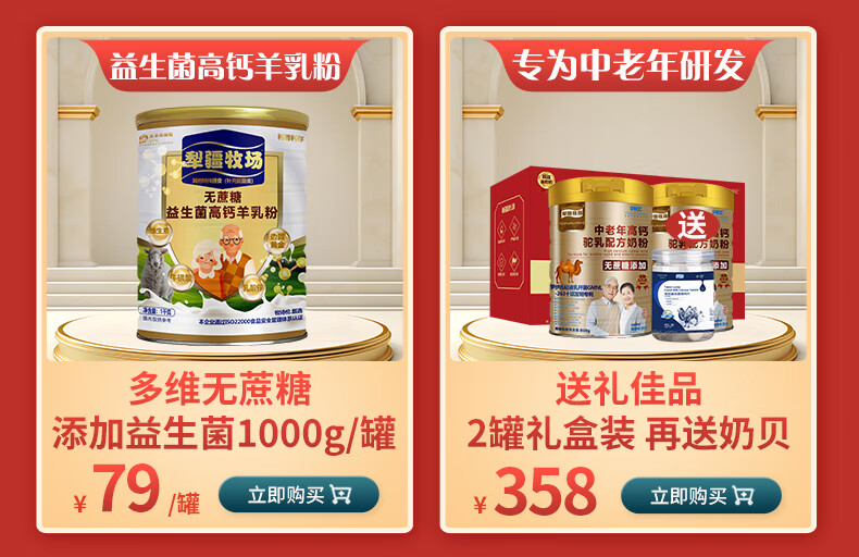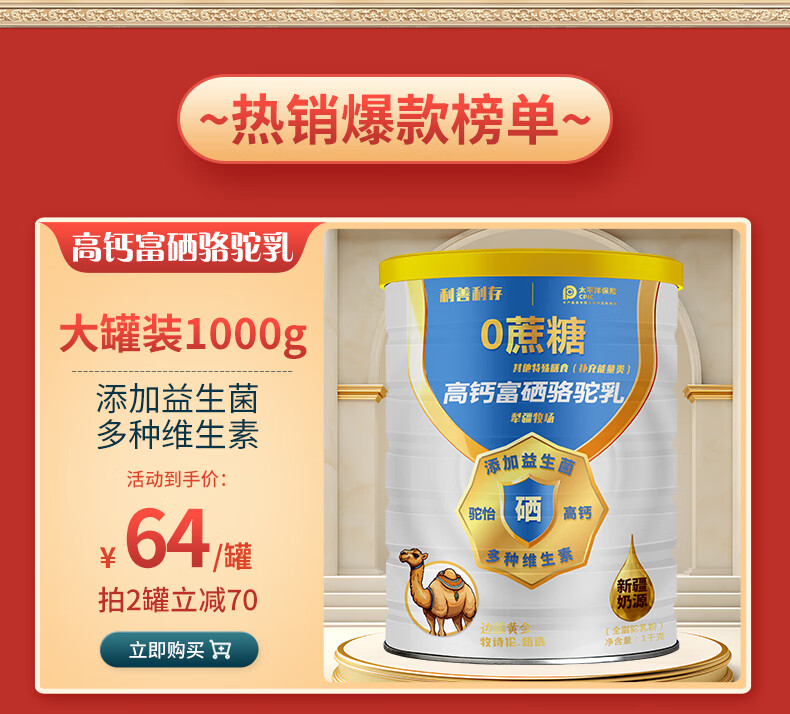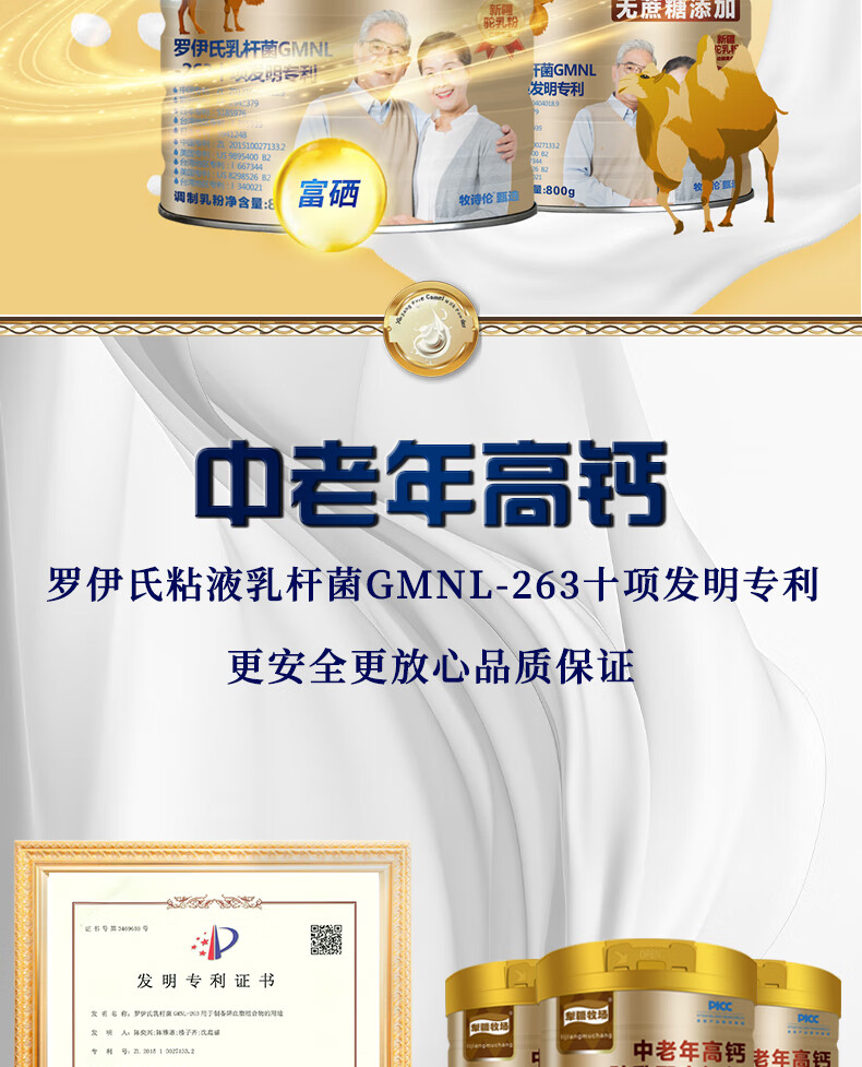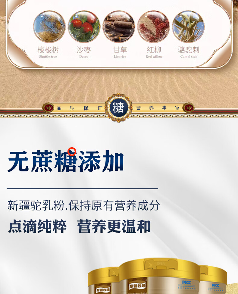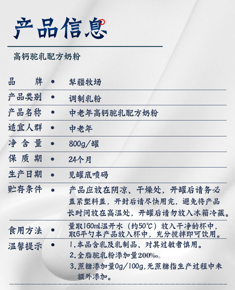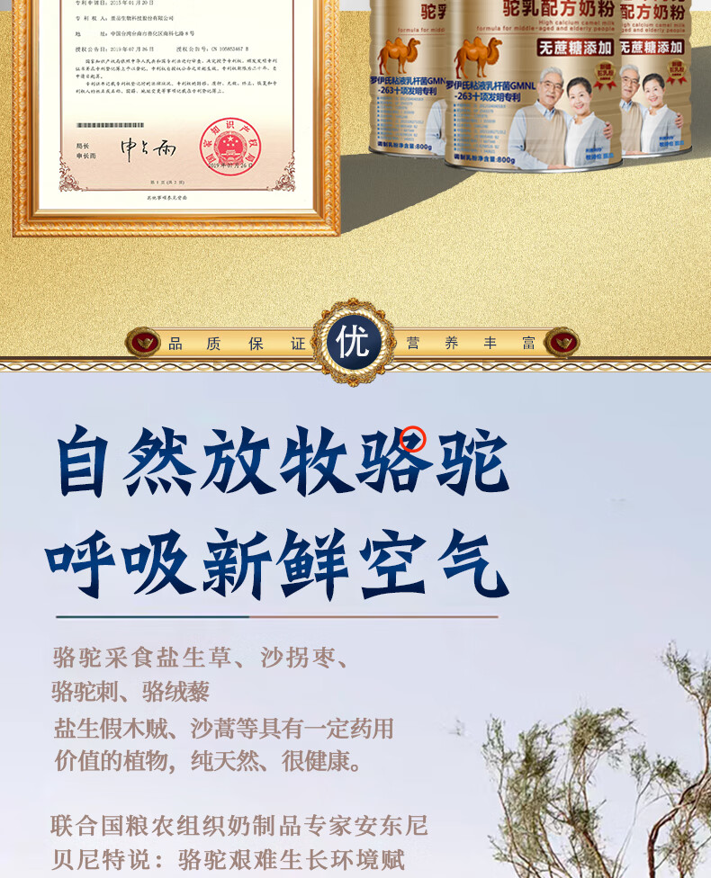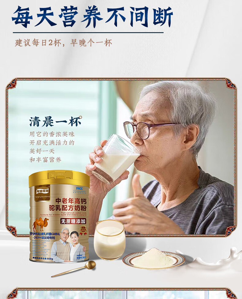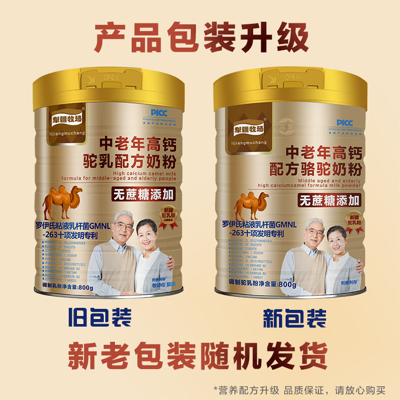 犁疆牧场 骆驼奶粉新疆正宗年货成人高钙益生菌无蔗糖中老年人驼乳粉800g