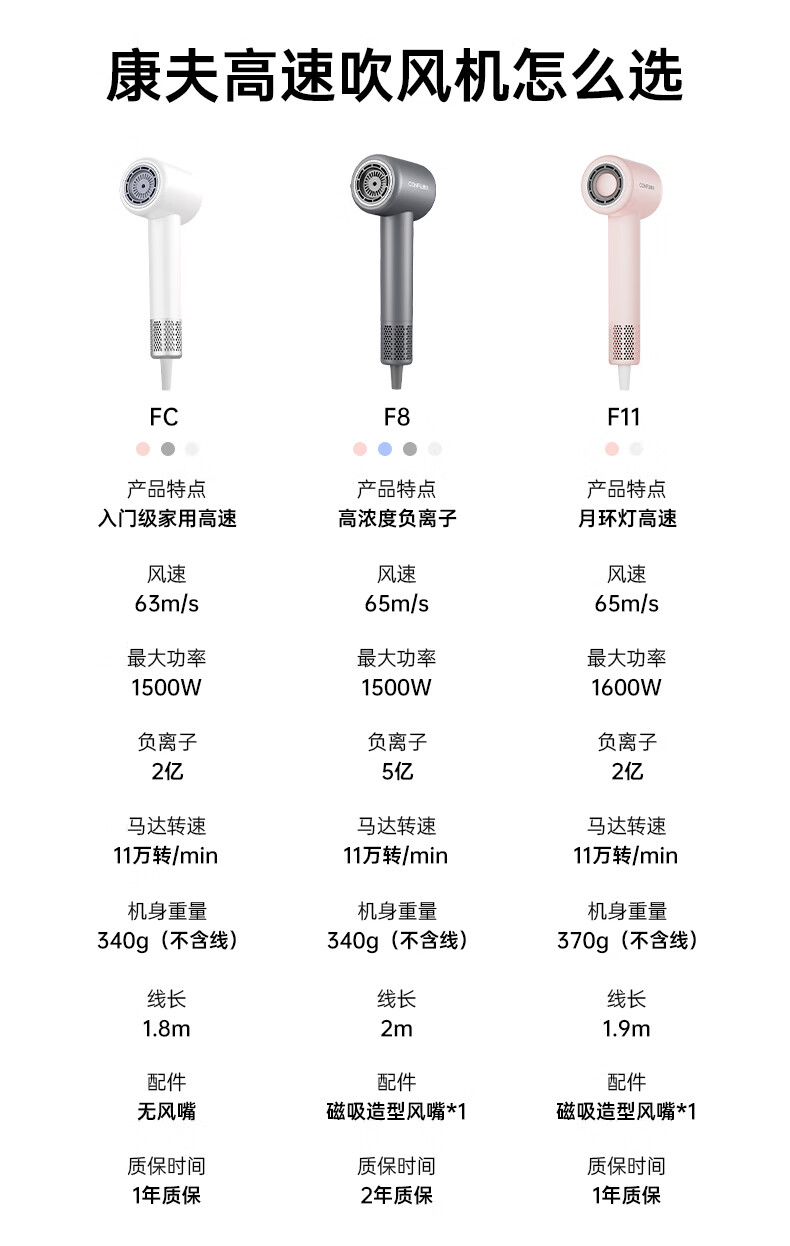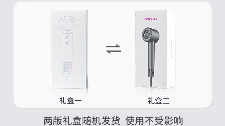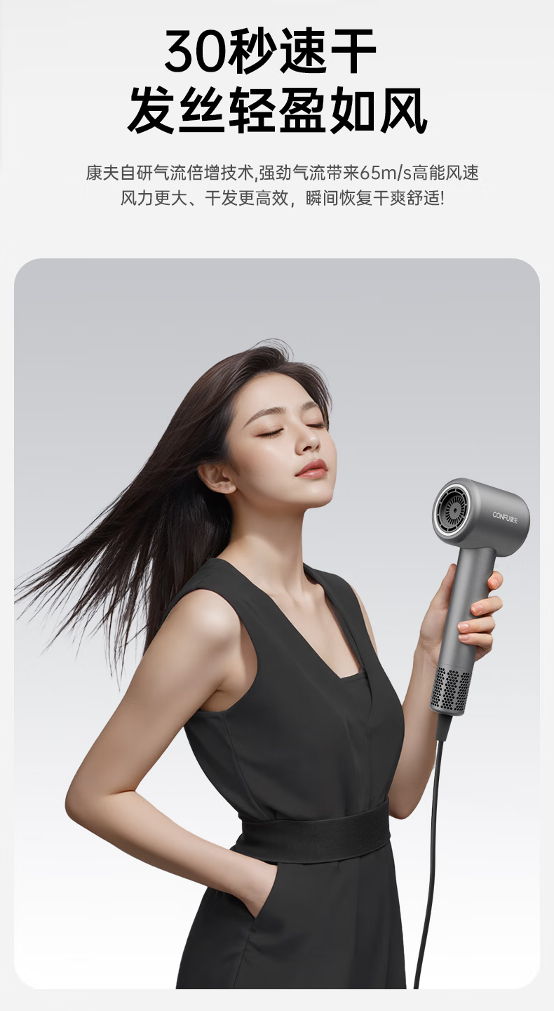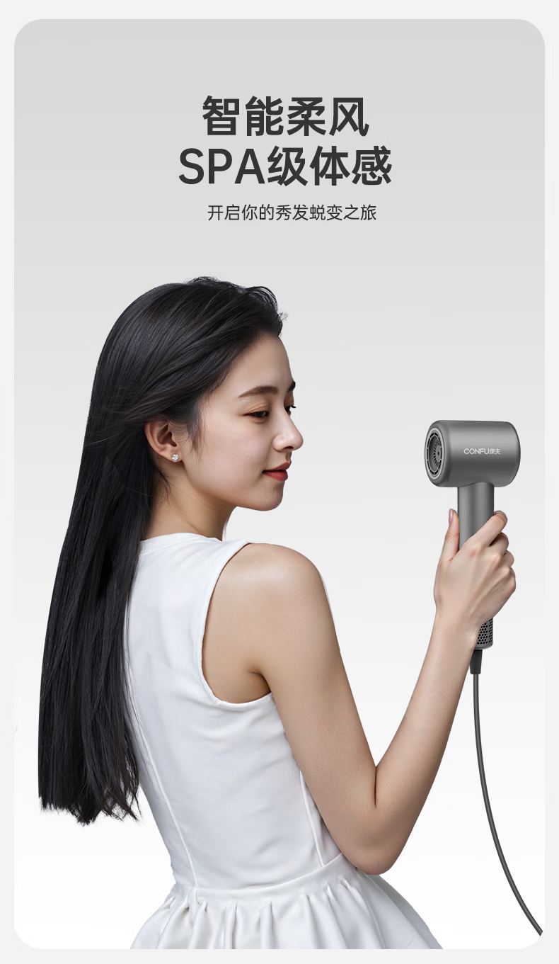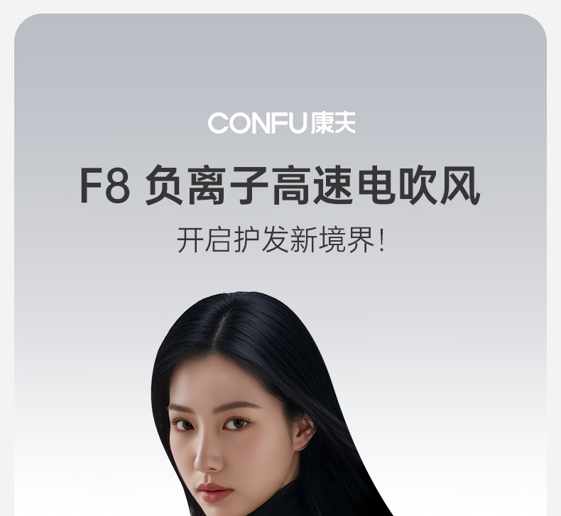 康夫(CONFU)高速电吹风机家用大风力负离子护发女士便携速干送女友礼物吹风筒F8灰