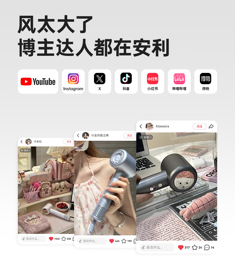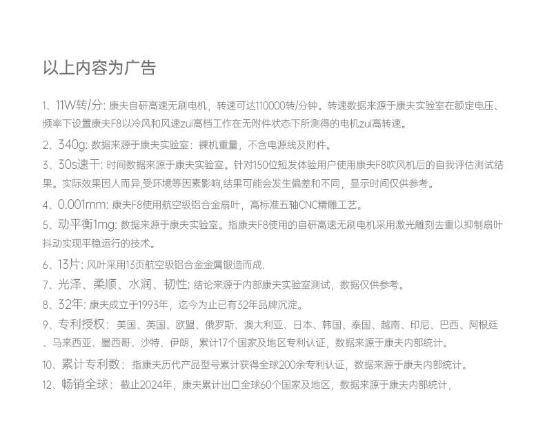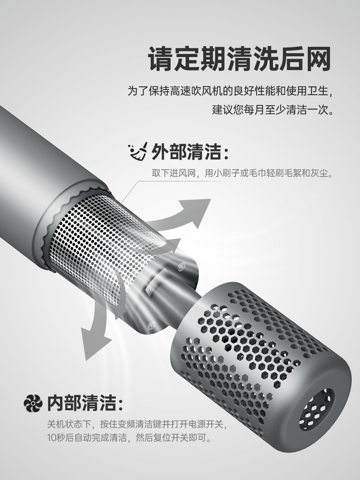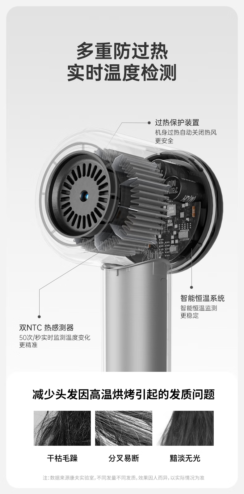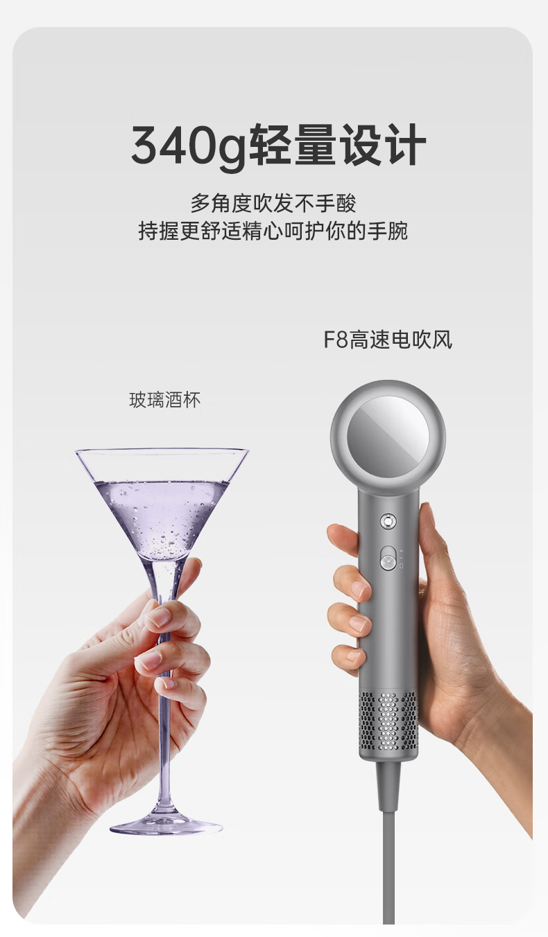 康夫(CONFU)高速电吹风机家用大风力负离子护发女士便携速干送女友礼物吹风筒F8灰
