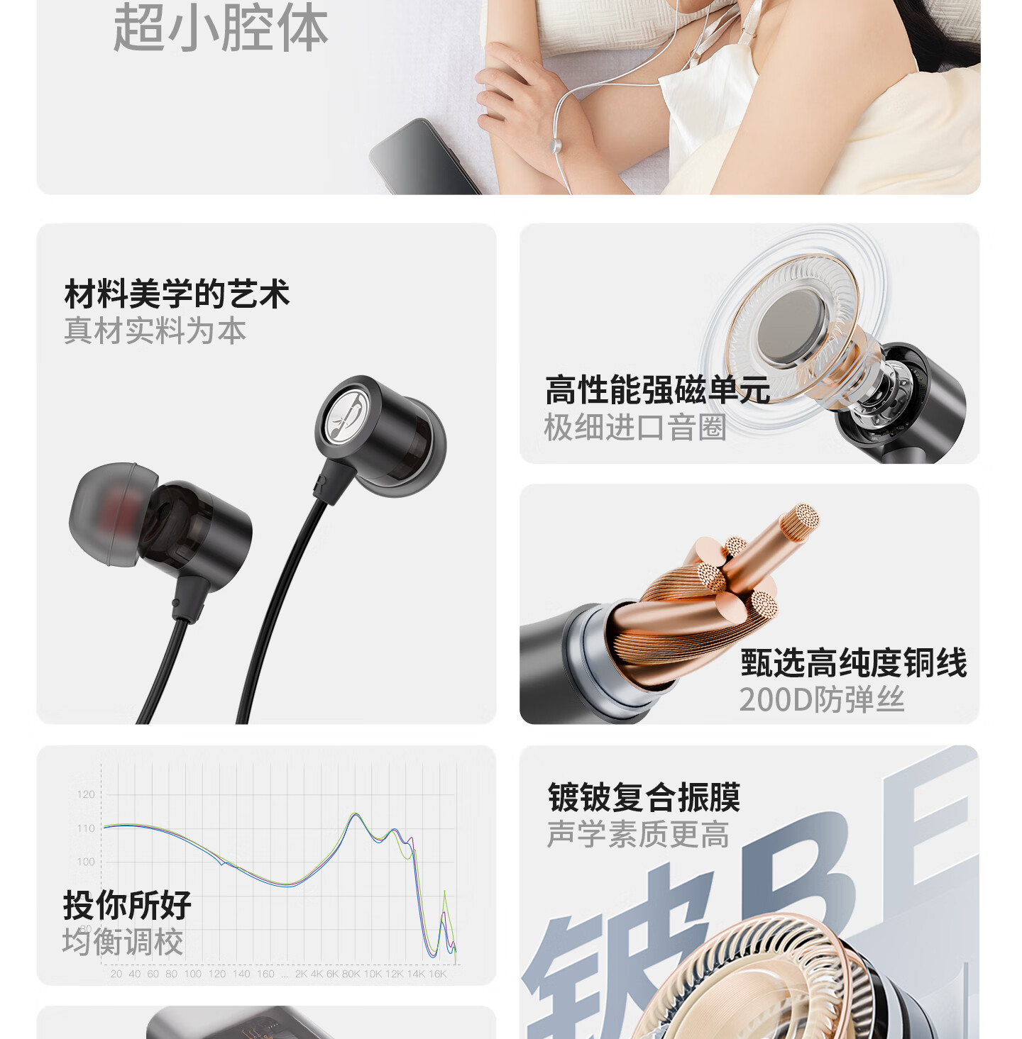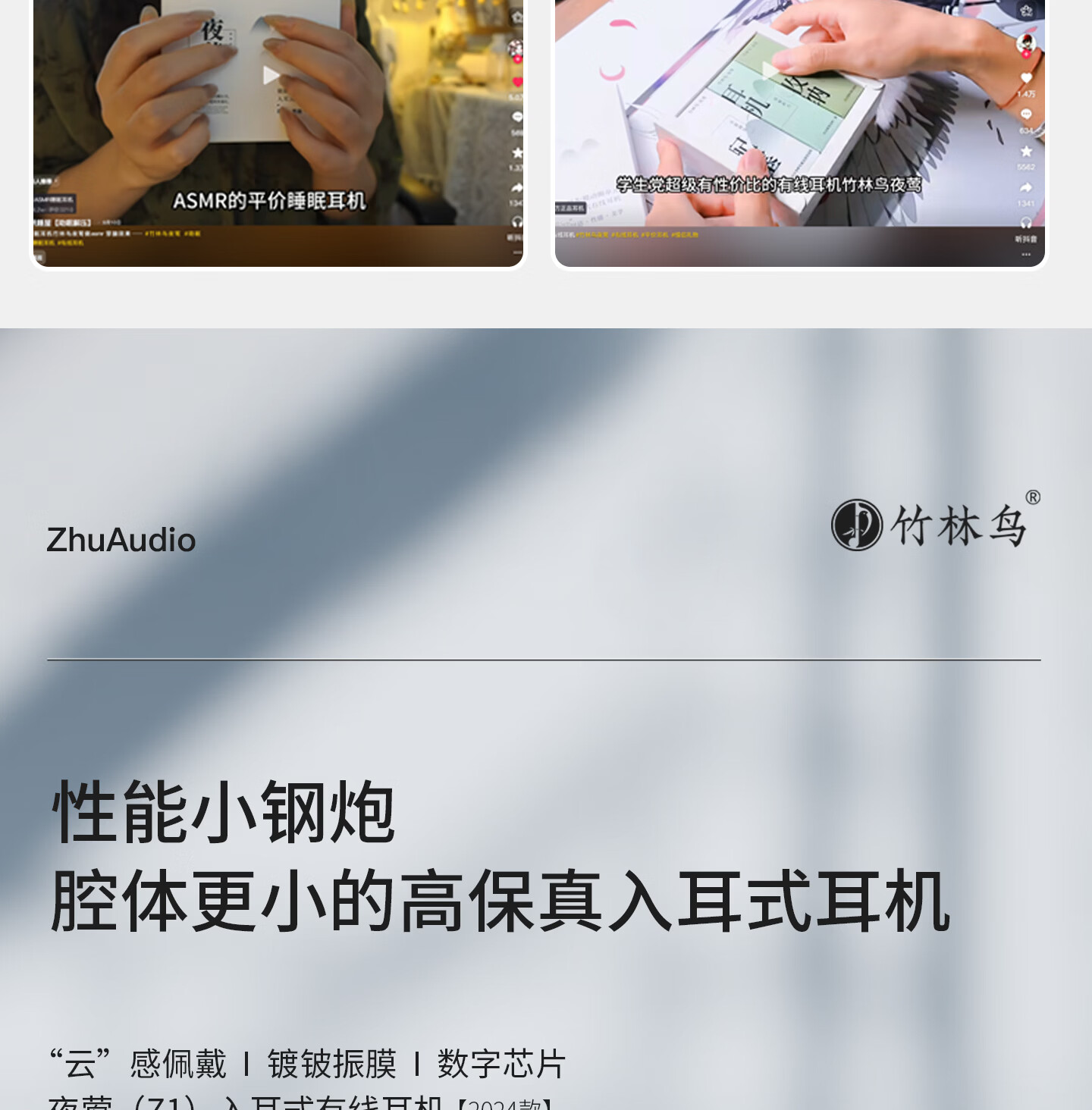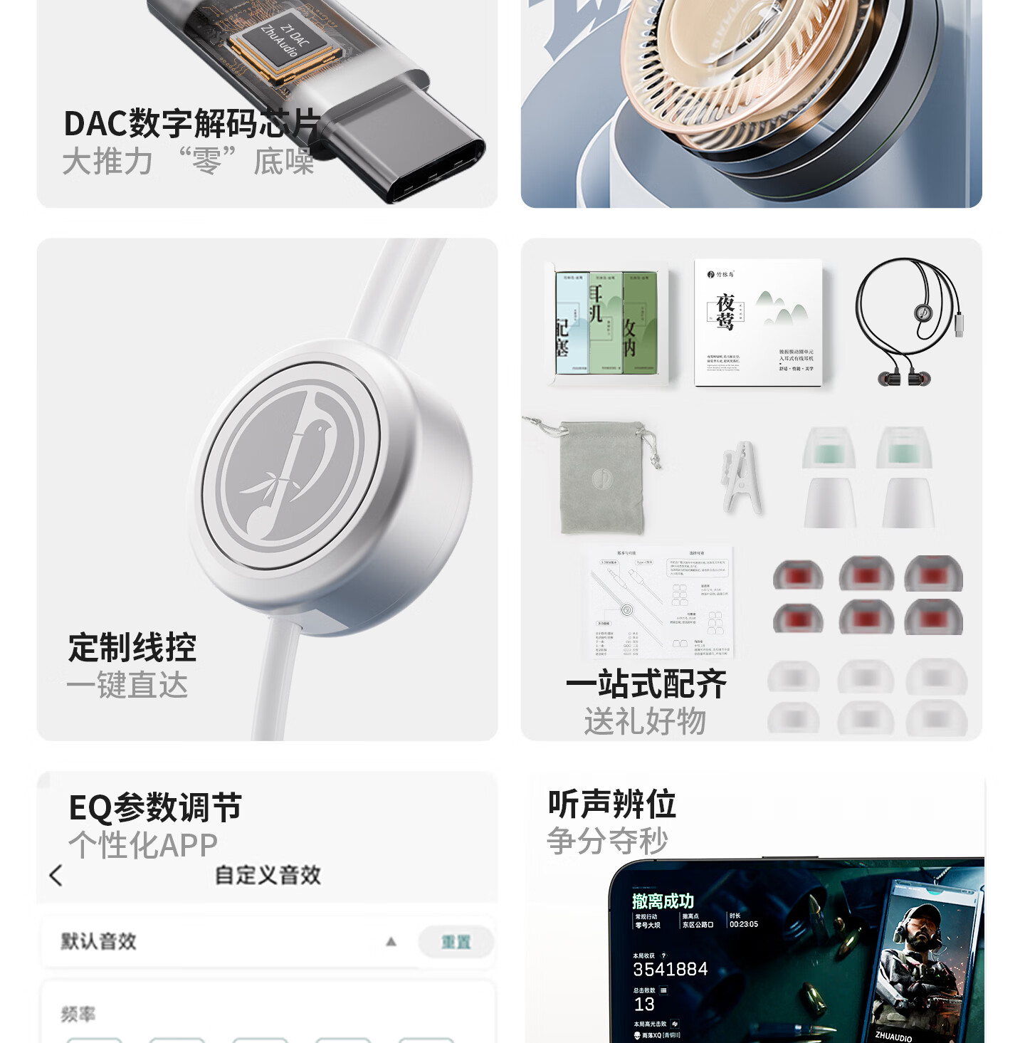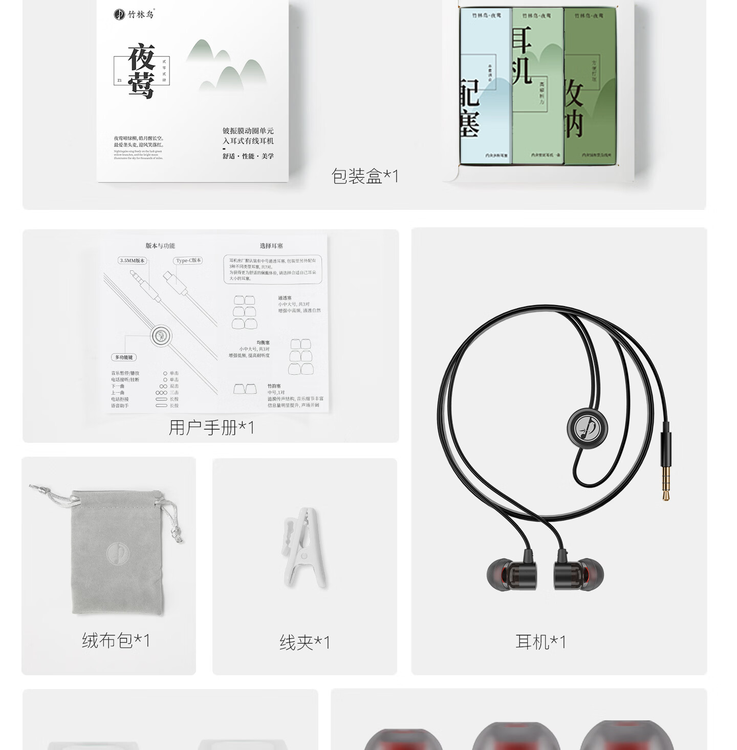 竹林鸟夜莺Z1入耳睡眠耳塞HiFi有线耳机直播K歌电脑游戏电竞无损音乐微型超小动圈高音质安卓适用手机 凝霜白Type-C版 有麦克风