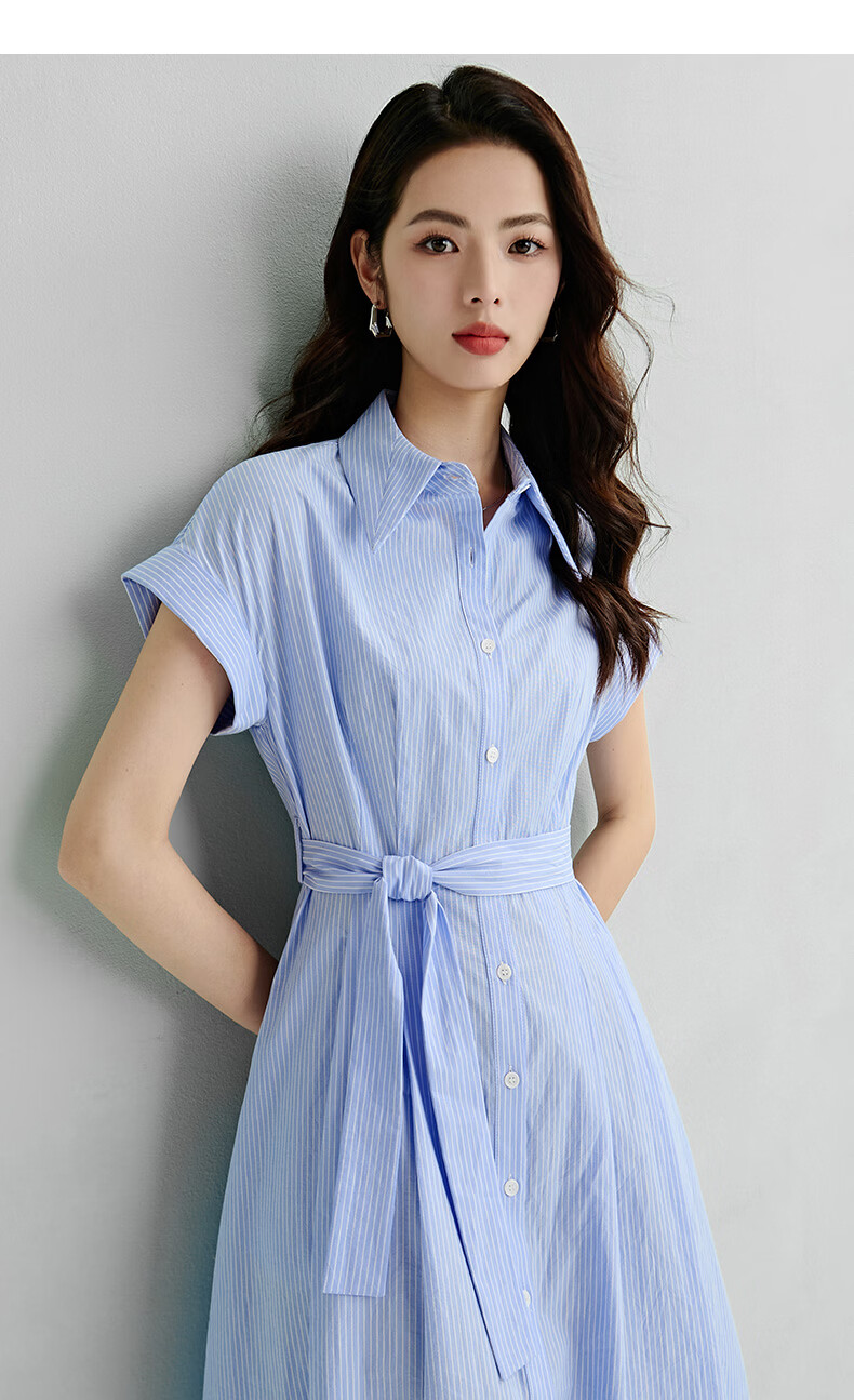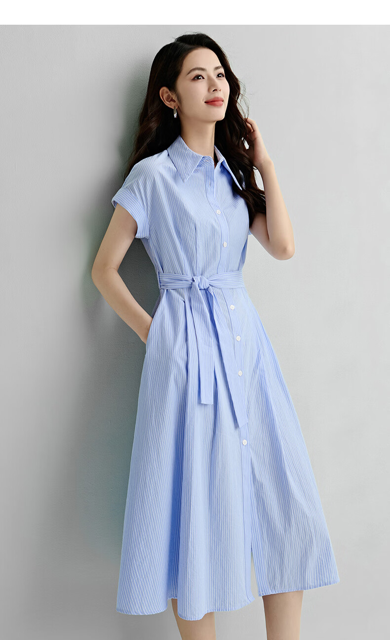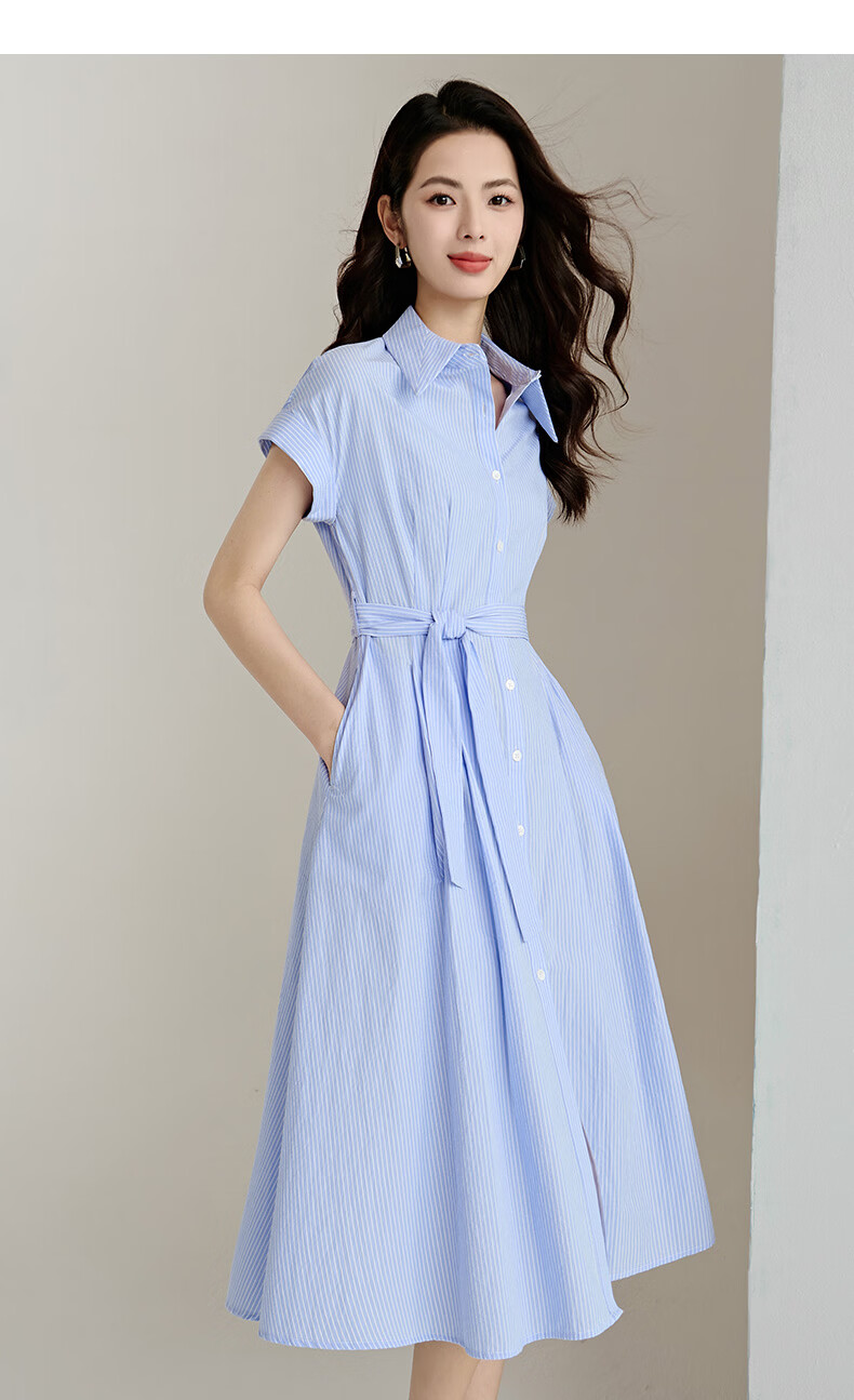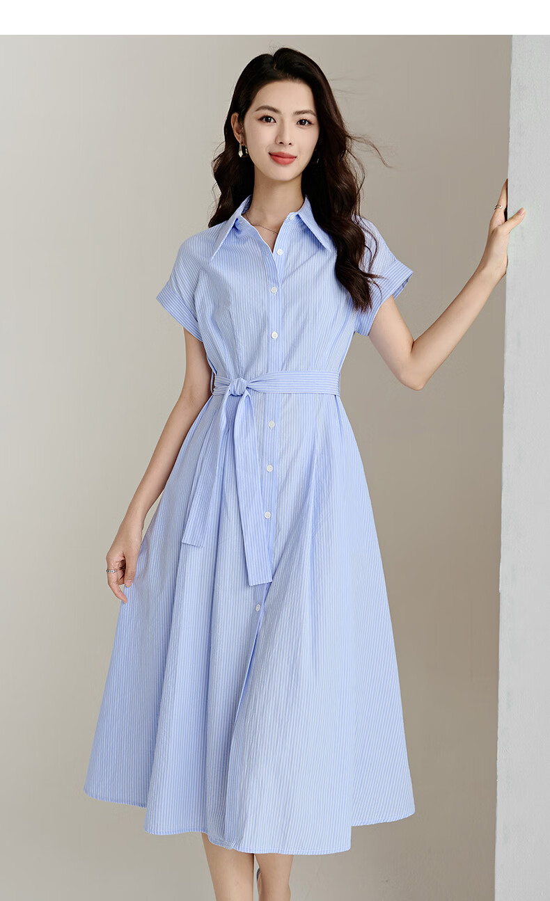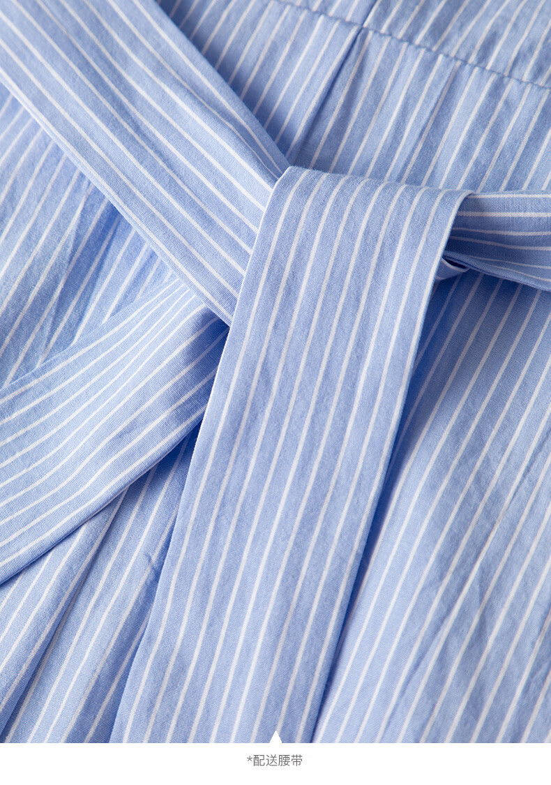 晚白【新品】2026年春款经典翻领全棉衬衫裙系带收腰休闲减龄连衣裙 条纹 XL