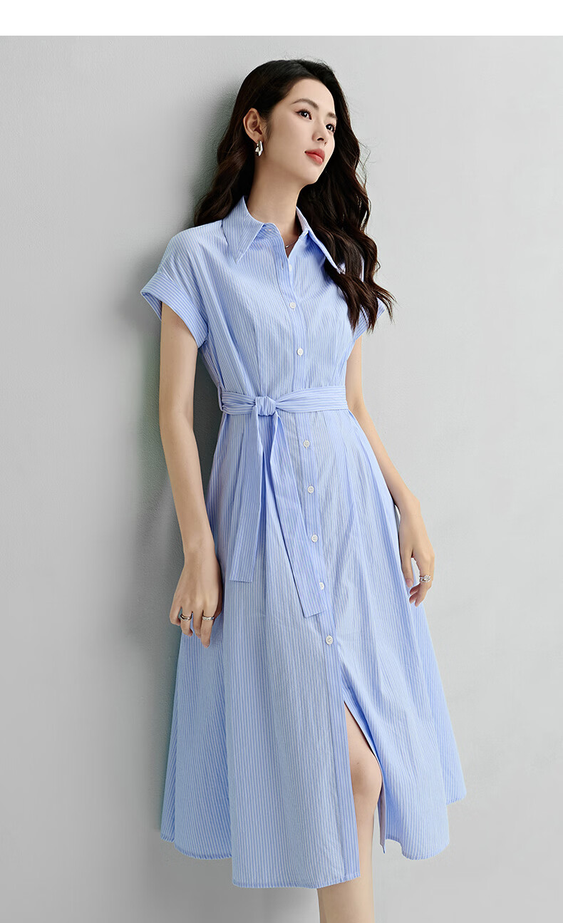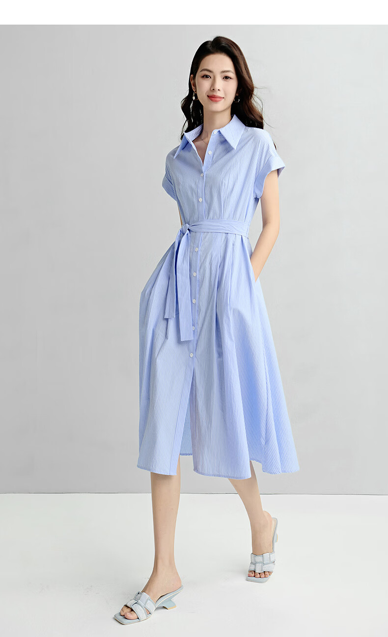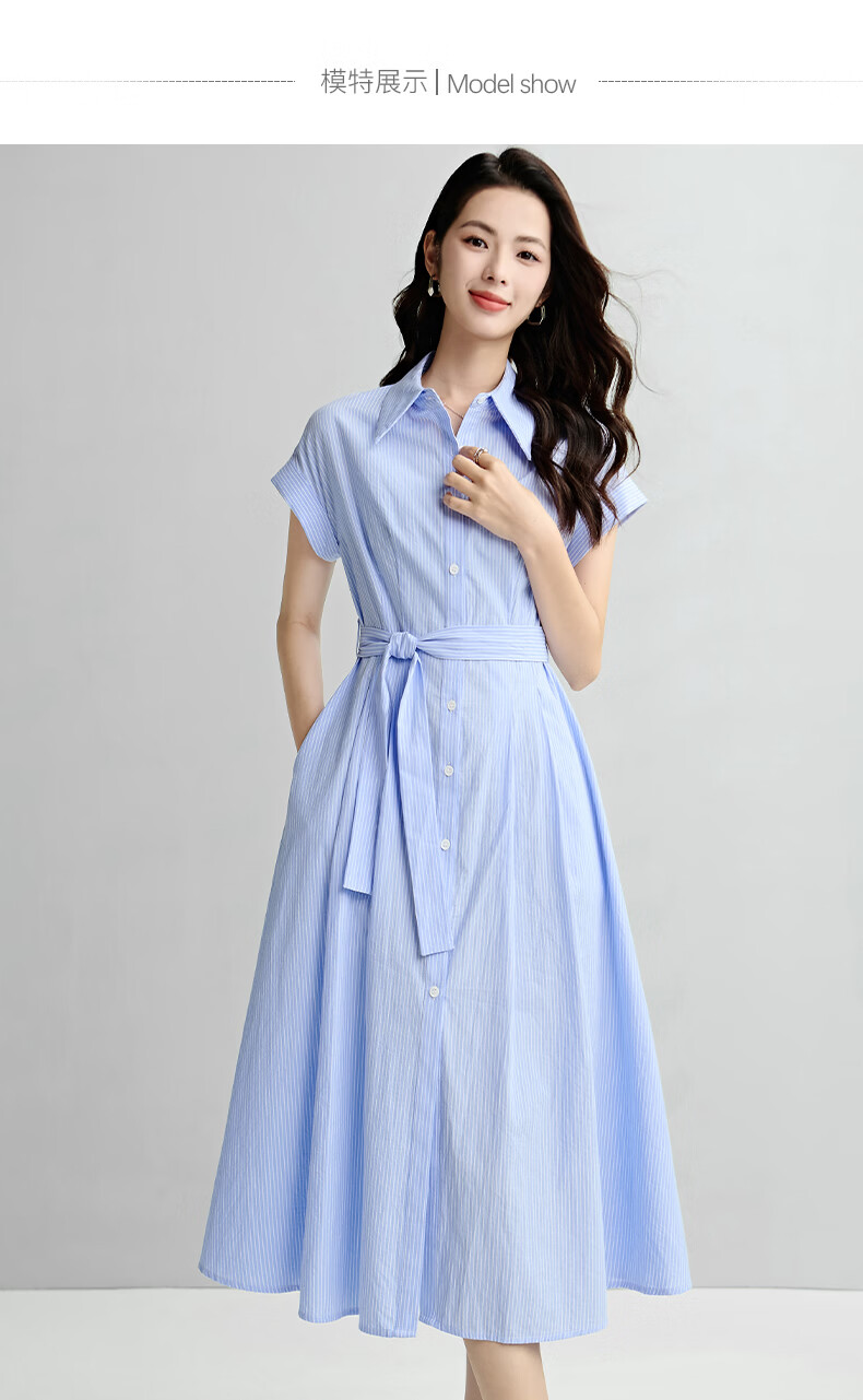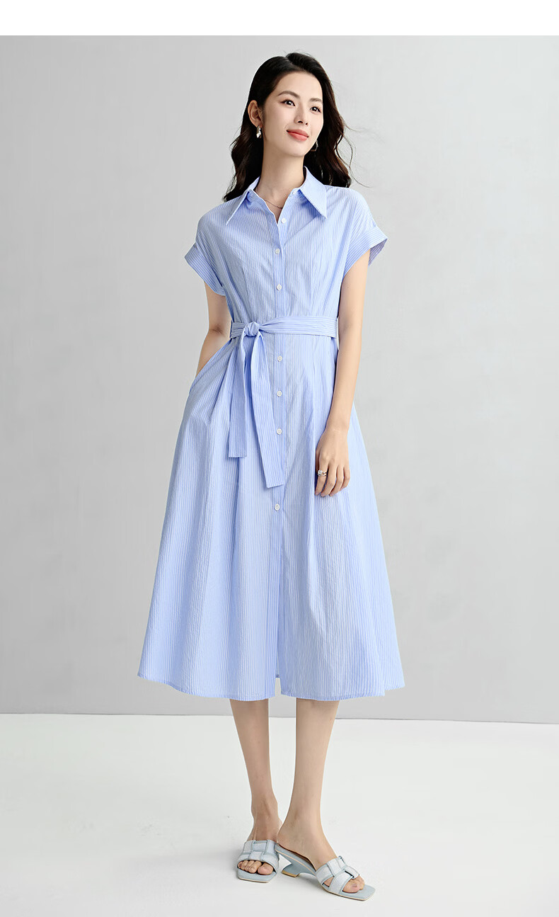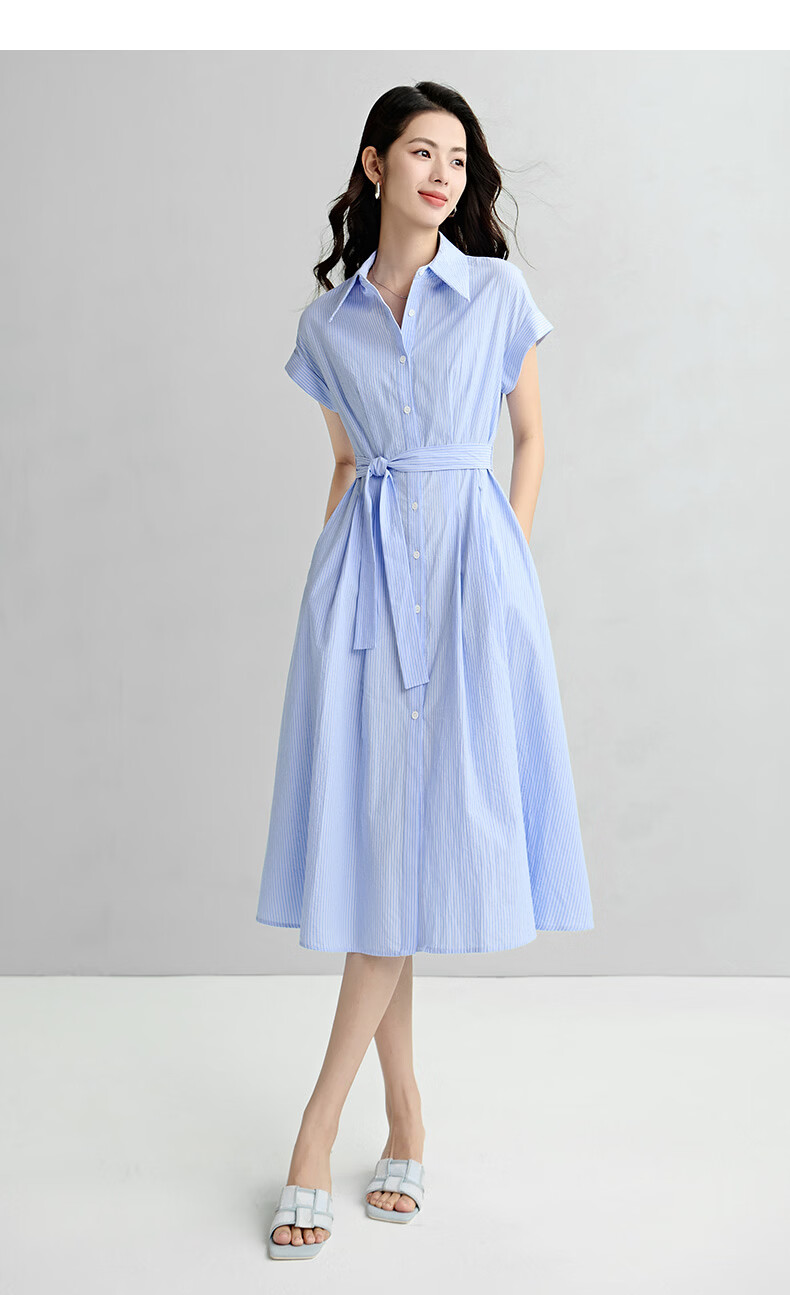 晚白【新品】2026年春款经典翻领全棉衬衫裙系带收腰休闲减龄连衣裙 条纹 XL