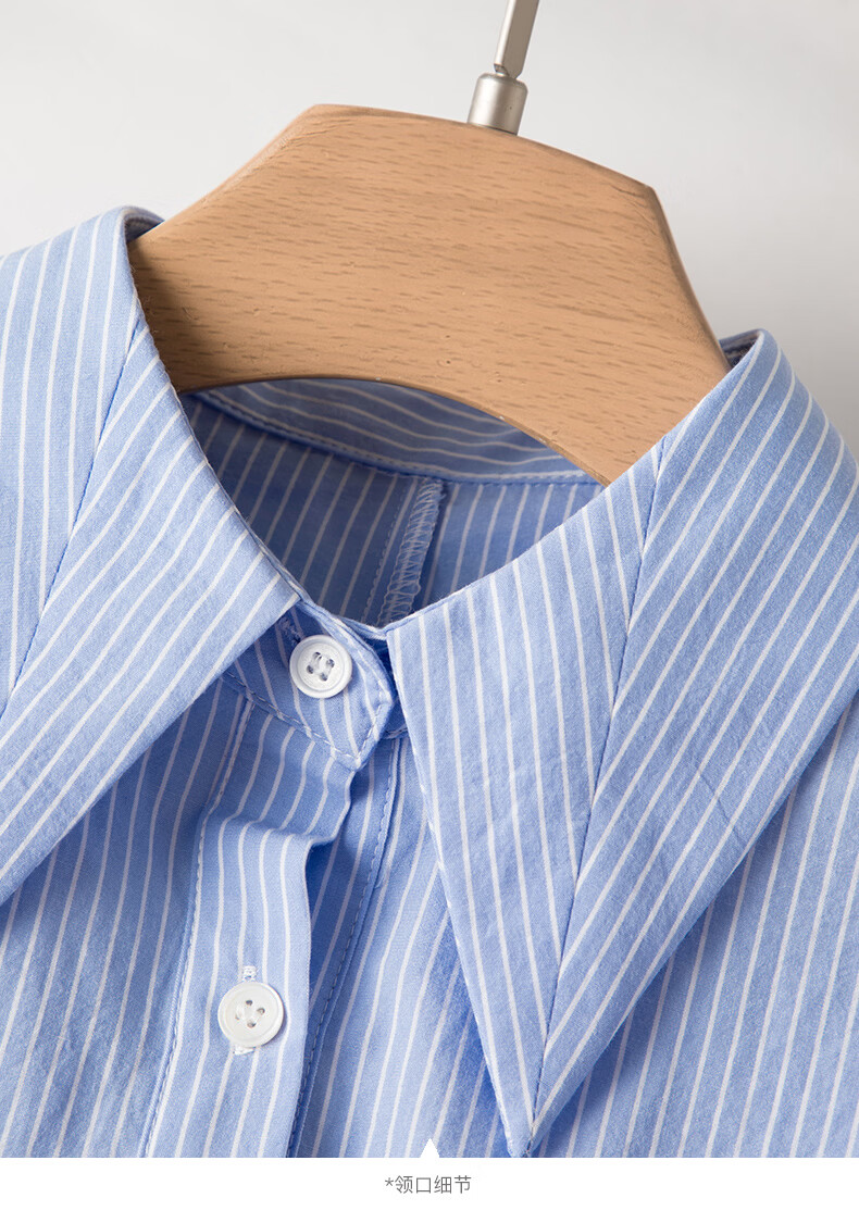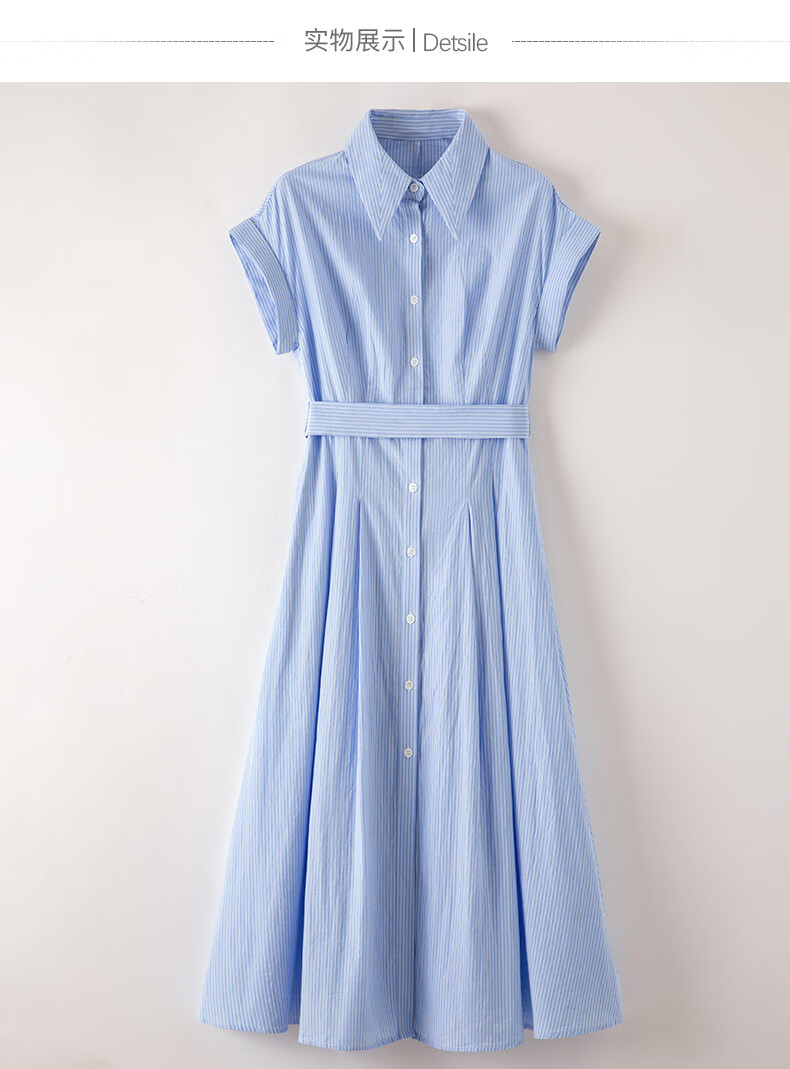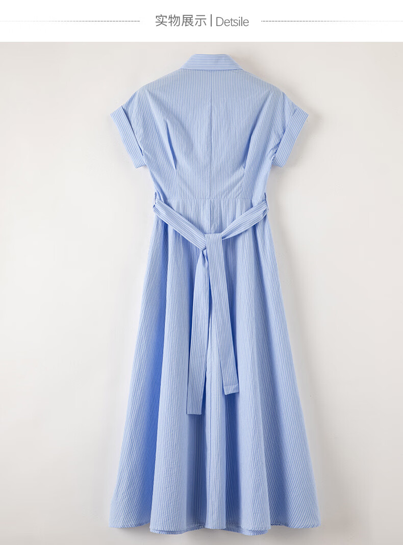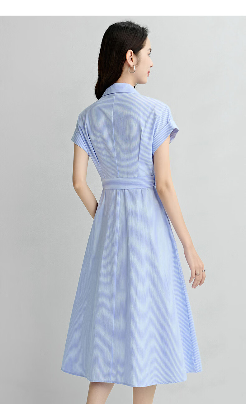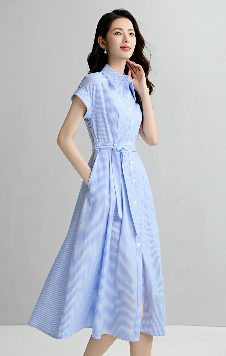 晚白【新品】2026年春款经典翻领全棉衬衫裙系带收腰休闲减龄连衣裙 条纹 XL