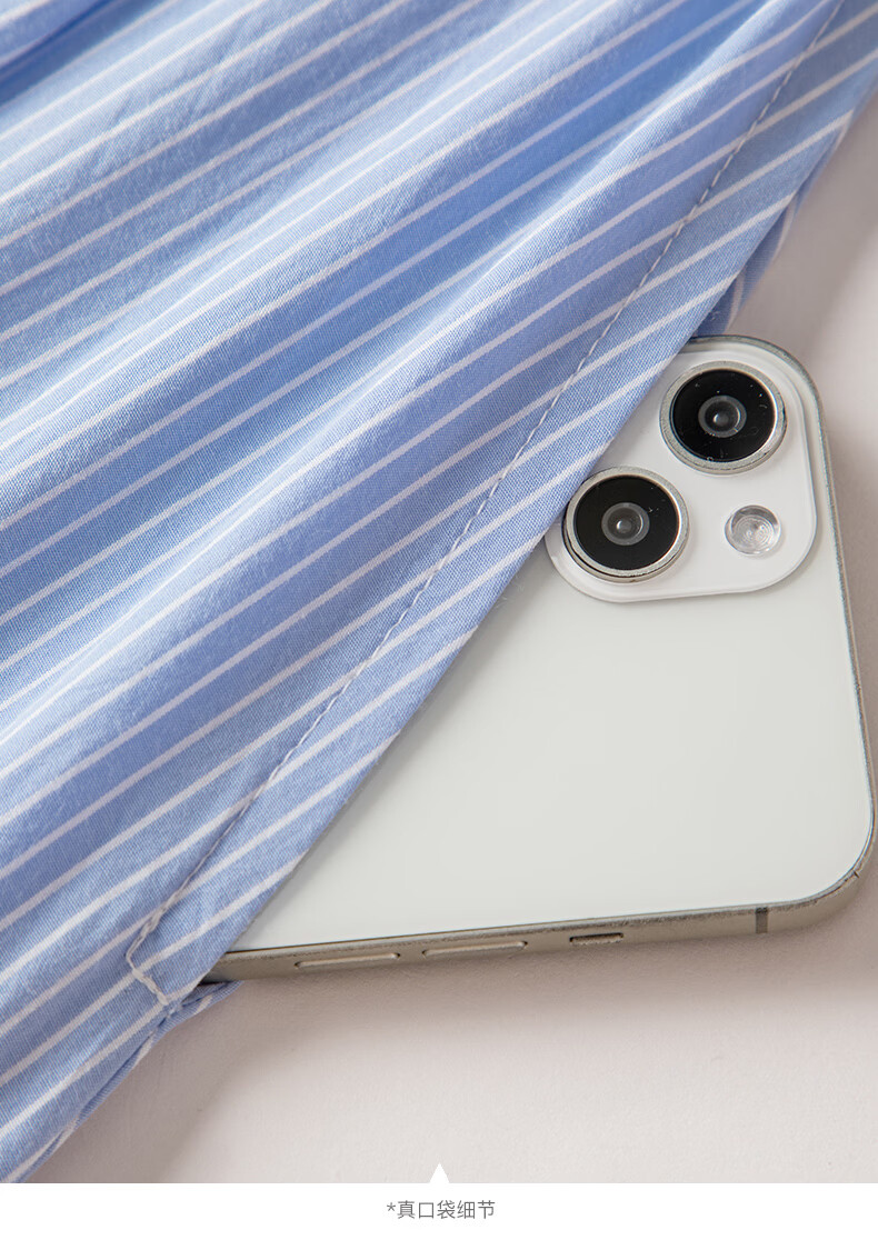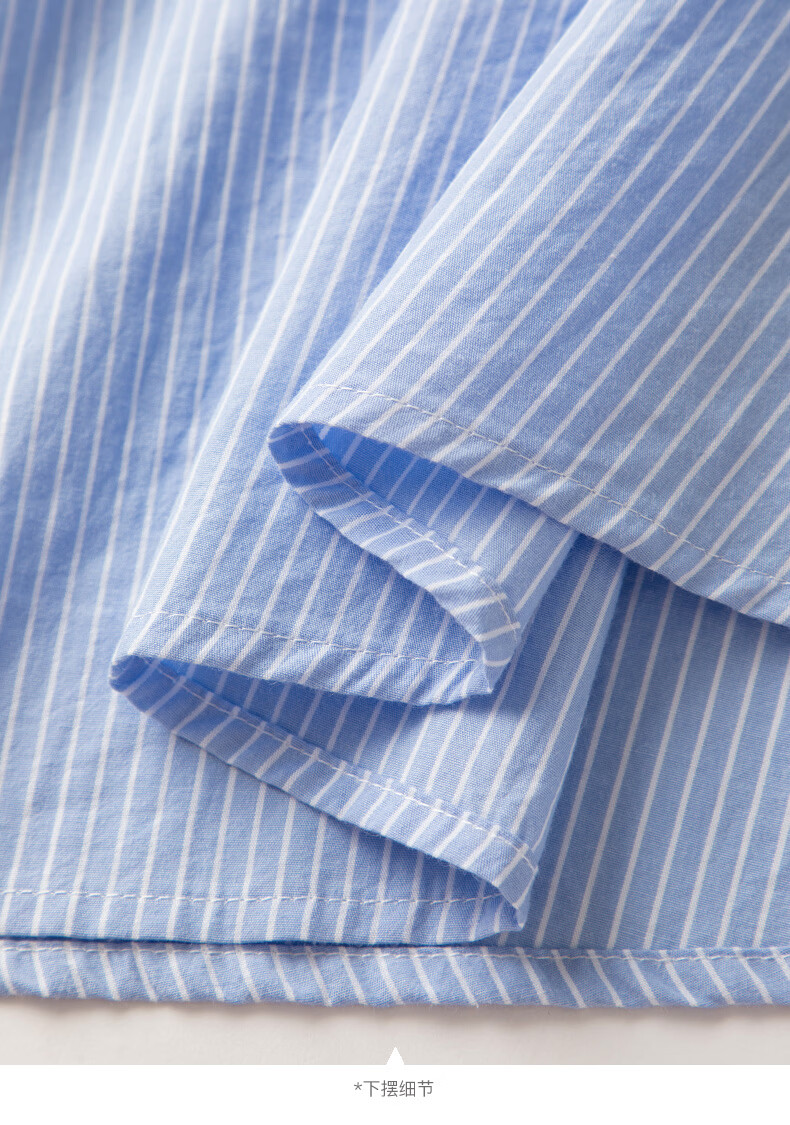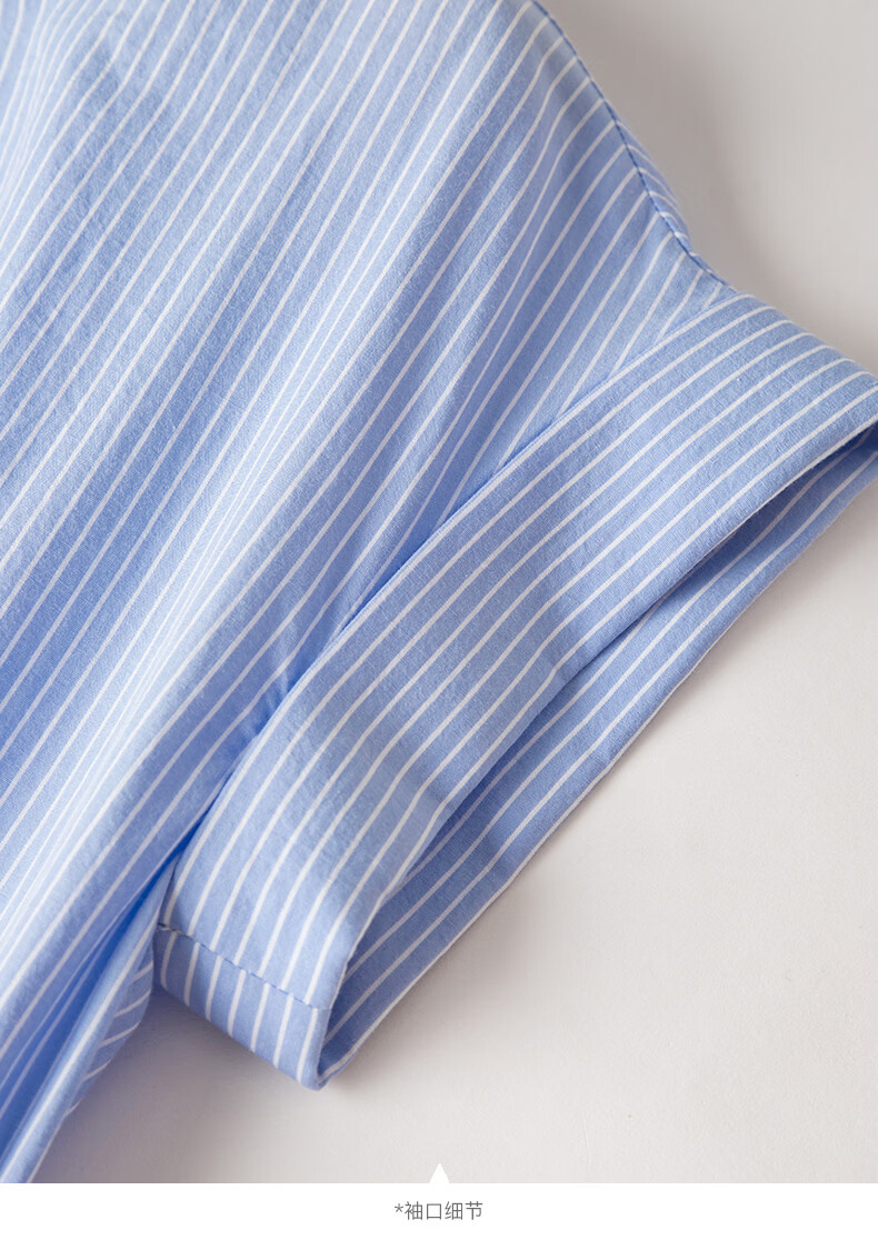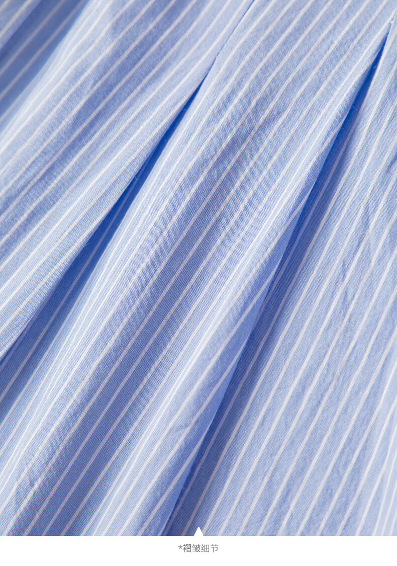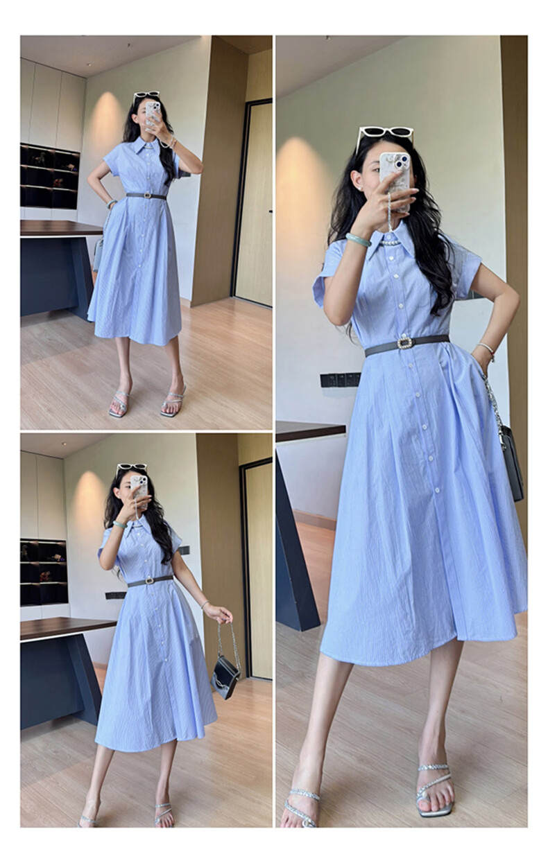 晚白【新品】2026年春款经典翻领全棉衬衫裙系带收腰休闲减龄连衣裙 条纹 XL