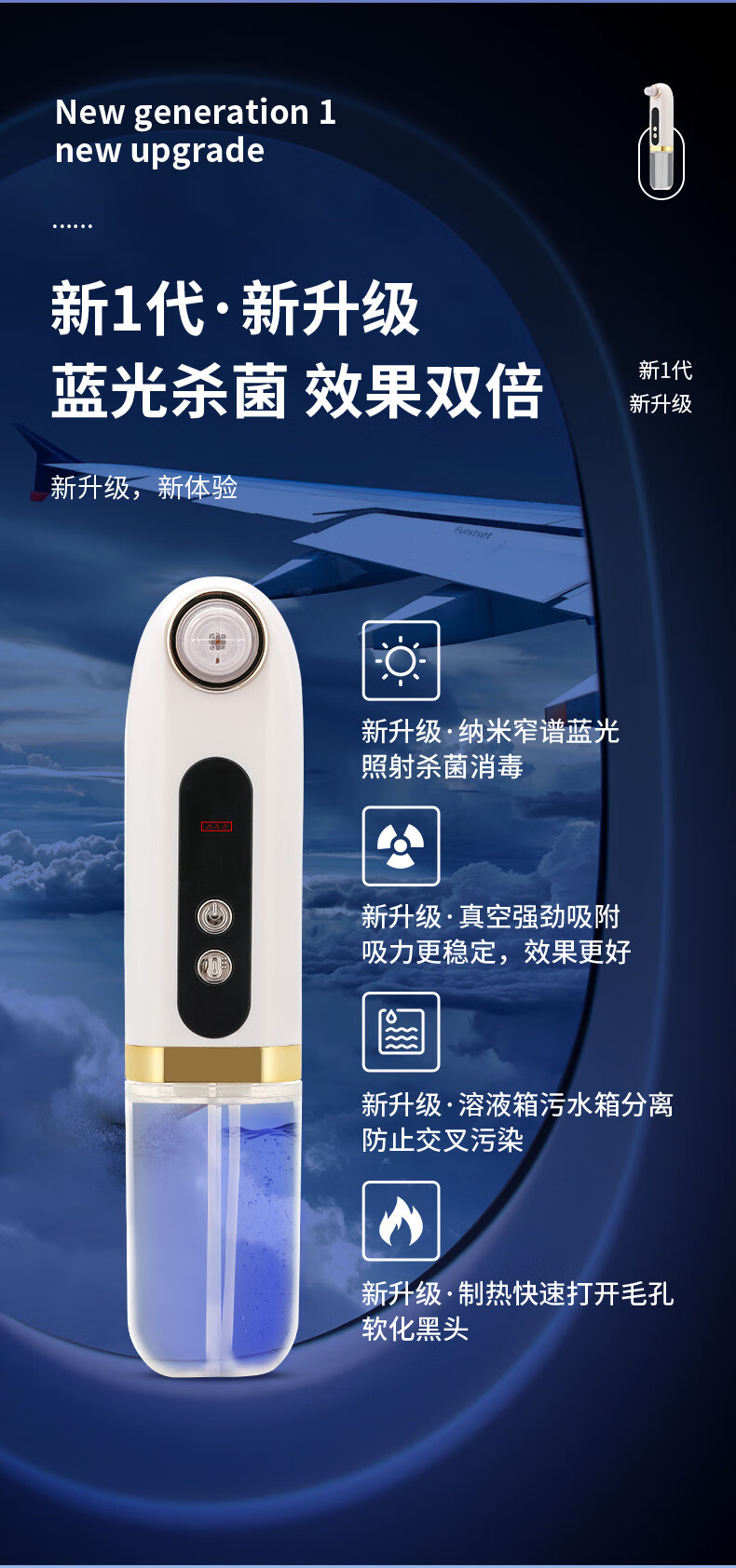 米波迪(Meebordi)新款小气泡黑头仪吸黑头清理神器粉刺吸出器去黑头清洁仪清理毛孔美容仪新年情人节礼物【加热款】