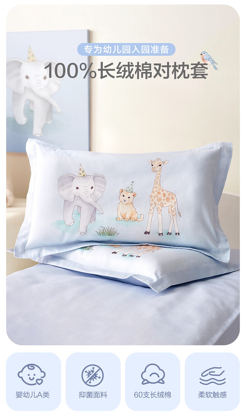 水星家纺幼儿园长绒棉抗菌印花对枕套·森林派对Pro 幼儿园长绒棉抗菌印花对枕套·森林派对Pro 一对 50cm*30cm