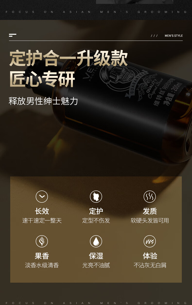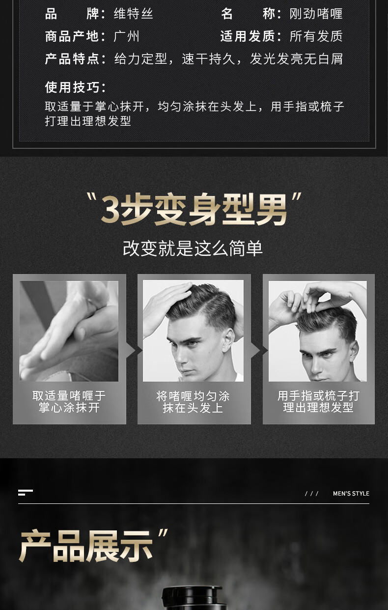 维特丝啫喱膏男一梳定型头发保湿油头膏发油晶刚啫喱水干胶喷雾发胶发蜡 骷髅头啫喱和黑发胶