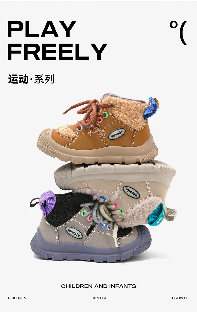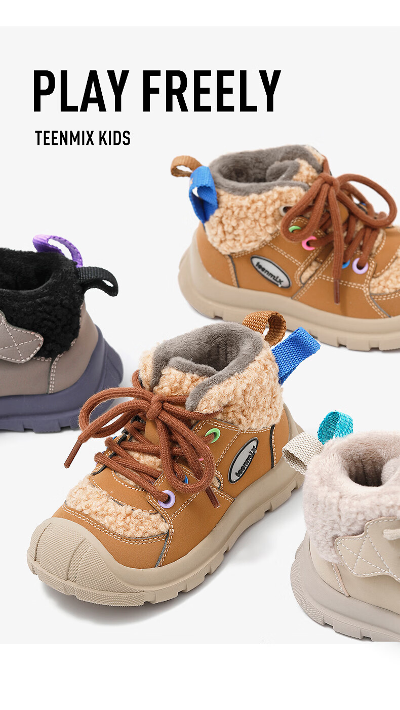 天美意(TEENMIX)天美意童鞋儿童运动鞋秋冬款男女童跑步鞋透气休闲鞋棉鞋 咖色 31