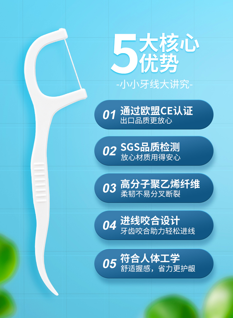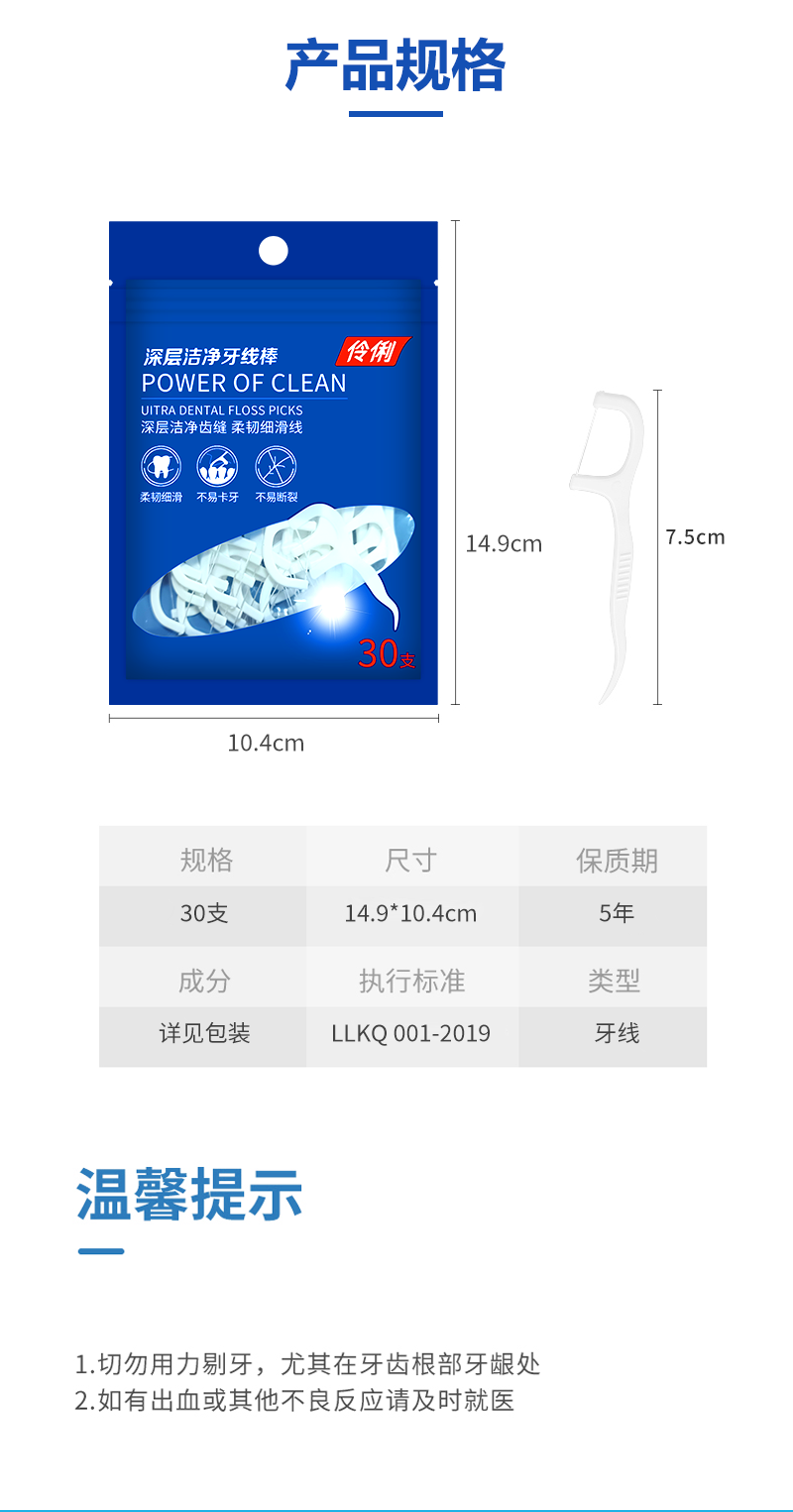 伶俐 细滑圆线高分子牙线棒 清洁齿缝牙签牙线成人剔牙神器超细便携 【囤货装】30支/袋*10